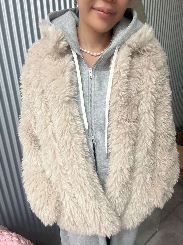 【FABRIC】 昨年大人気のシープファー ステンカラー ミドル丈コートが今年も再入荷! 柔らかくボリューム感のあるシープファー素材を使用し、羽織るだけで上品かつ暖かい印象に ミドル丈でどんなボトムスともバランスが取りやすく、オンオフ問わず着回せる万能アウターです 【STYLING】 柔らかなシープファーの質感を活かし、デニムやワイドパンツでカジュアルダウンしても、 スカートやワンピースと合わせれば女性らしいエレガントな印象に ミドル丈なのでロングボトムスとのバランスも良く、季節感を出した重ね着スタイルにもぴったりです サイズ フリーサイズ 身丈71cm バスト108cm 肩幅53cm 袖丈54cm 裾幅100cm 規格 ■素材・成分:表地 ポリエステル100% 裏地 ポリエステル100%