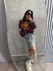コーディネートが完成。ダメージデニムやスウェットパンツを合わせたカジュアルな