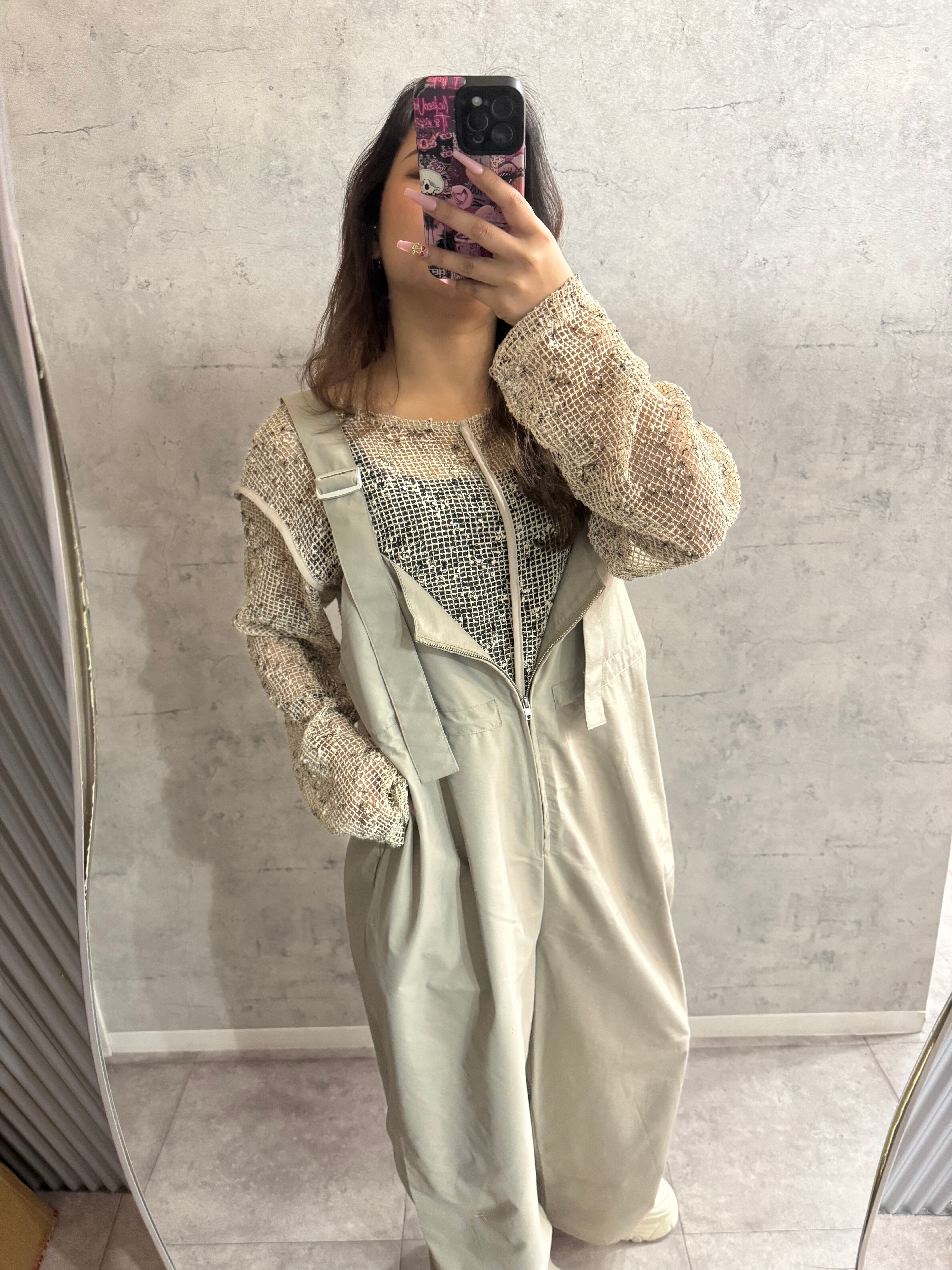 ナイロンウエストドロストサロペット
