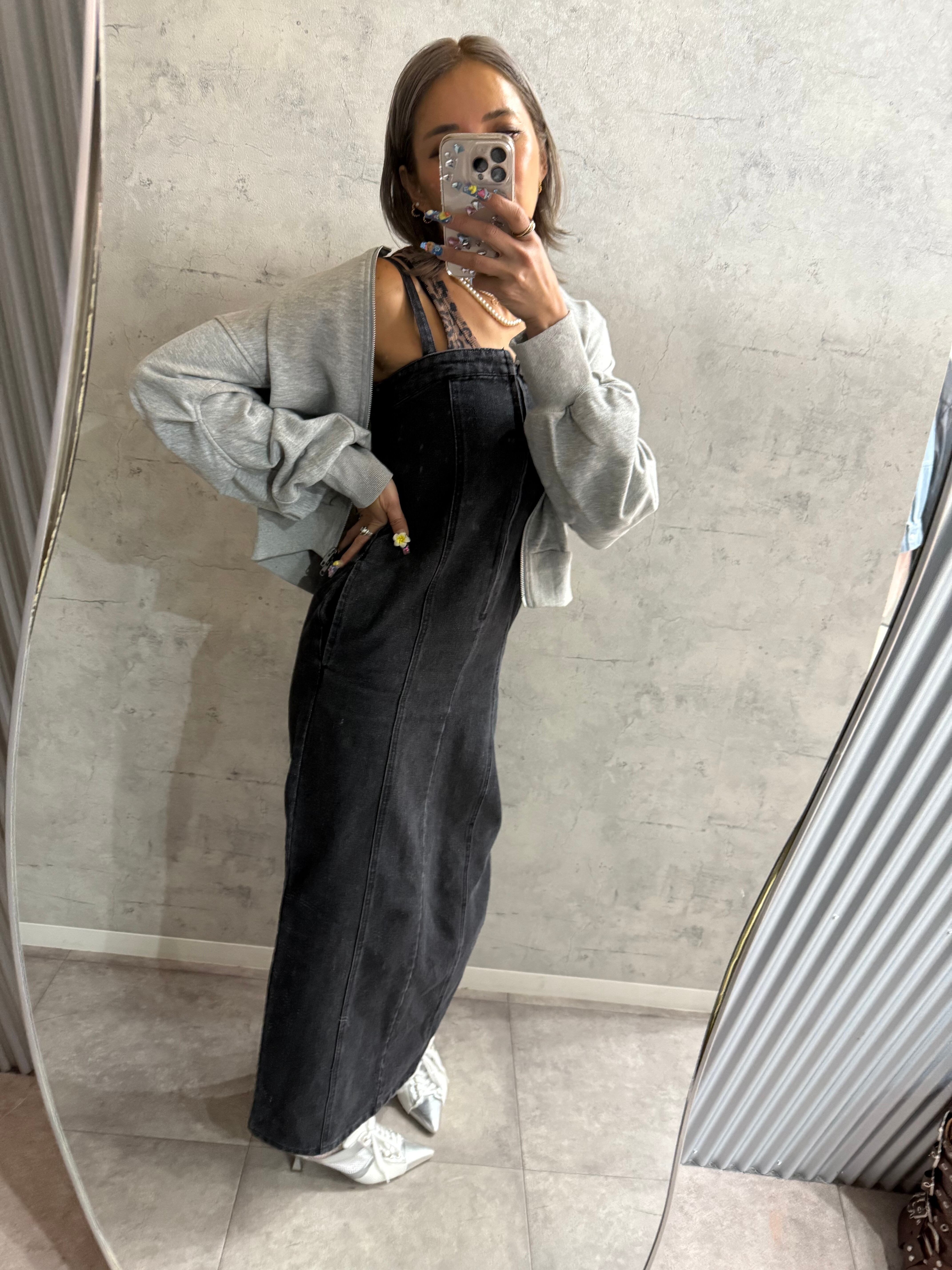 【design point】 ・肩紐はボタンで取り外し可能。ベアトップ型としても着用いただけます ・ヴィンテージライクな加工がポイント ・様々なスタイリングでオールシーズンお使いいただけます