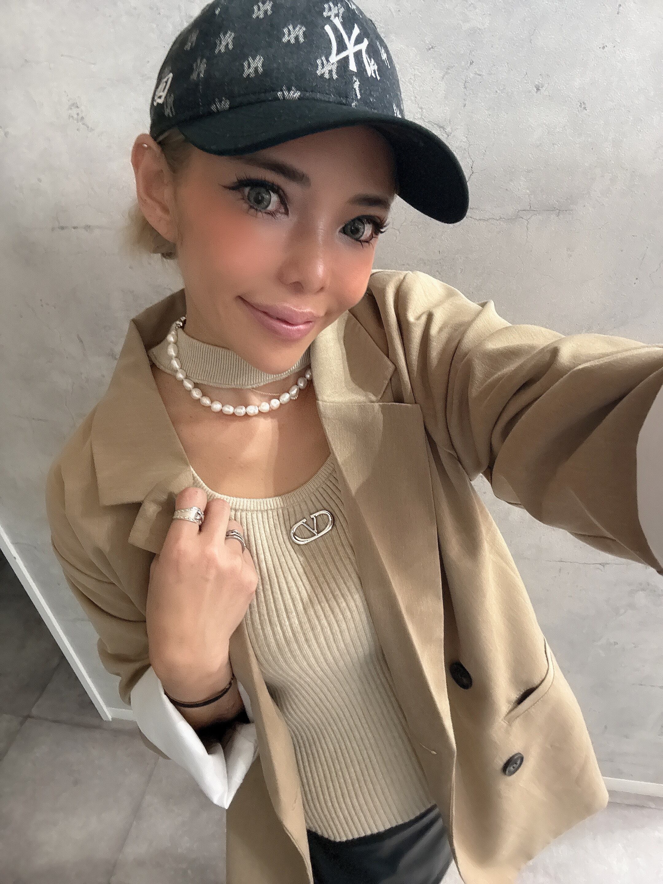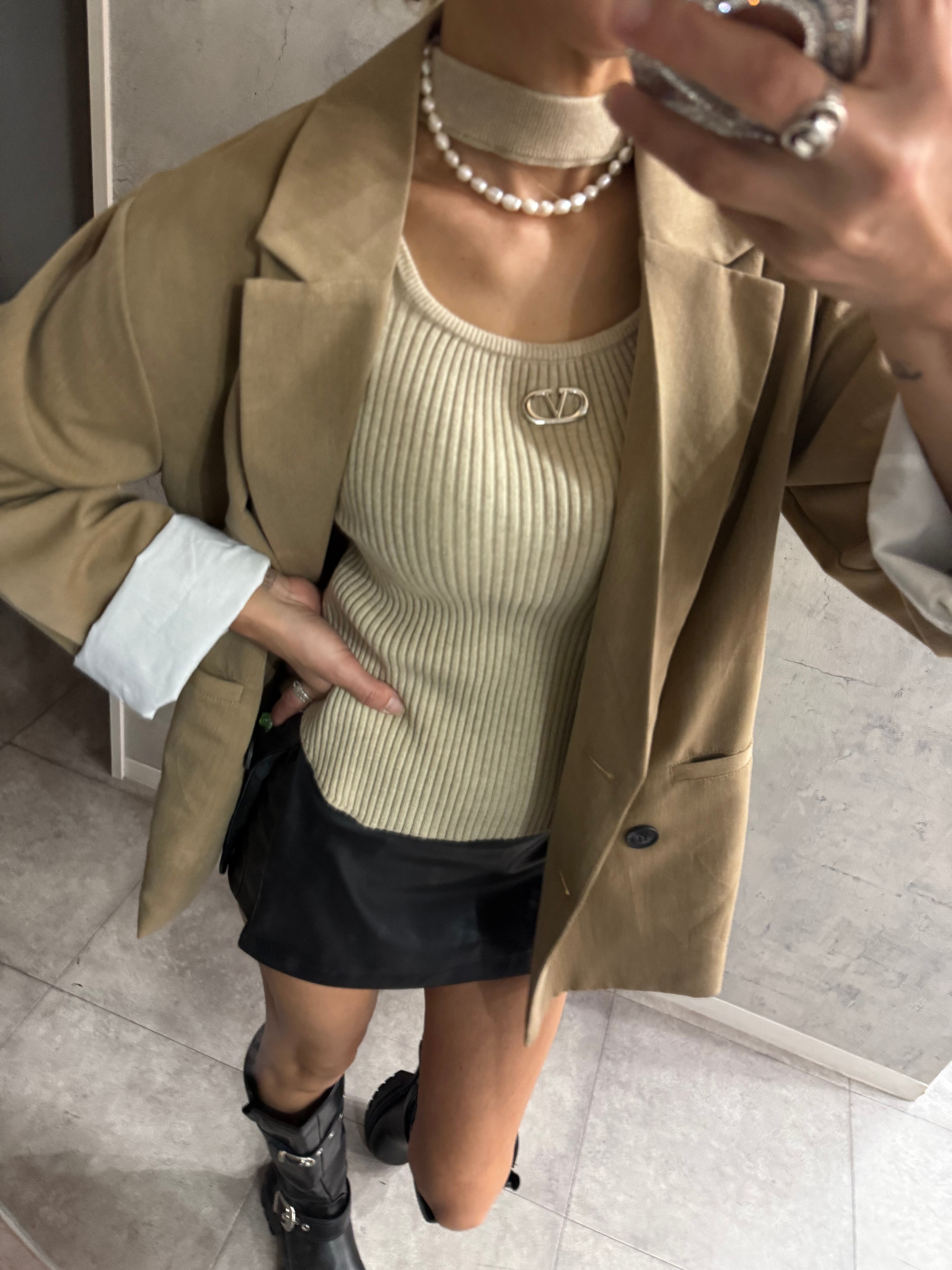 ベージュラスト1シルバーロゴチョーカーリブニット