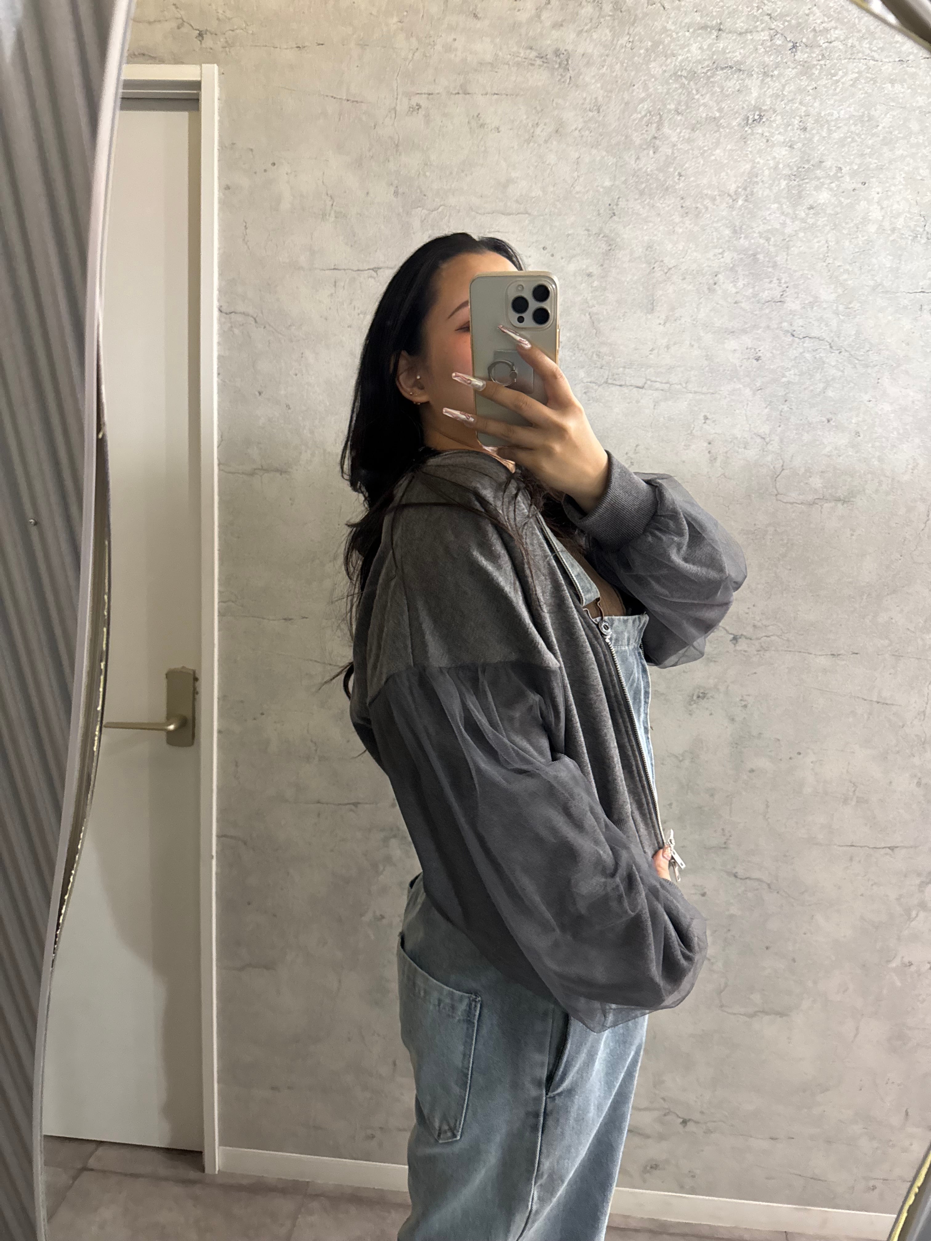 ¥4500→¥2026裏毛×チュールジップカーディガン