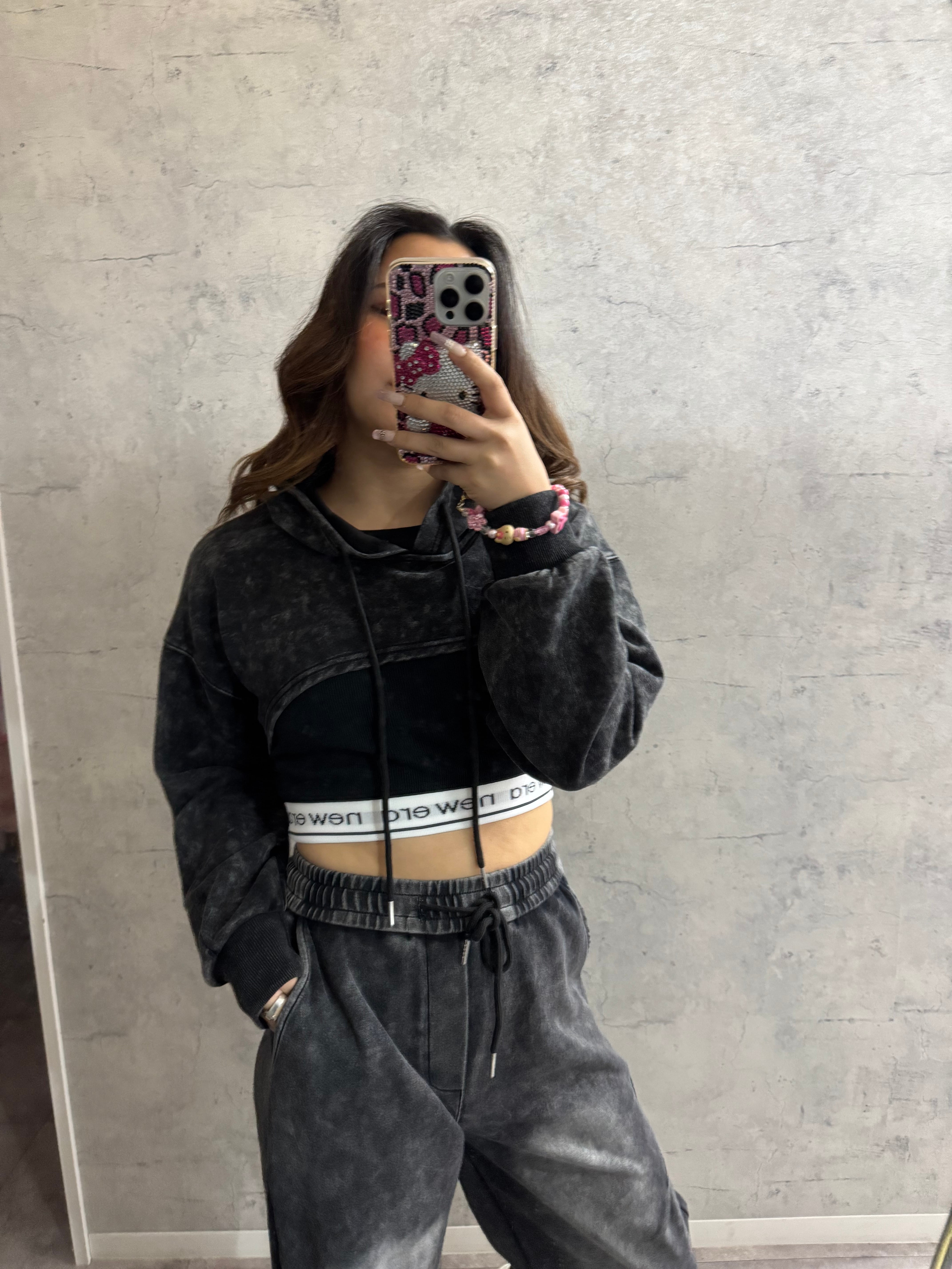 インナー付きパーカーショートトップス。