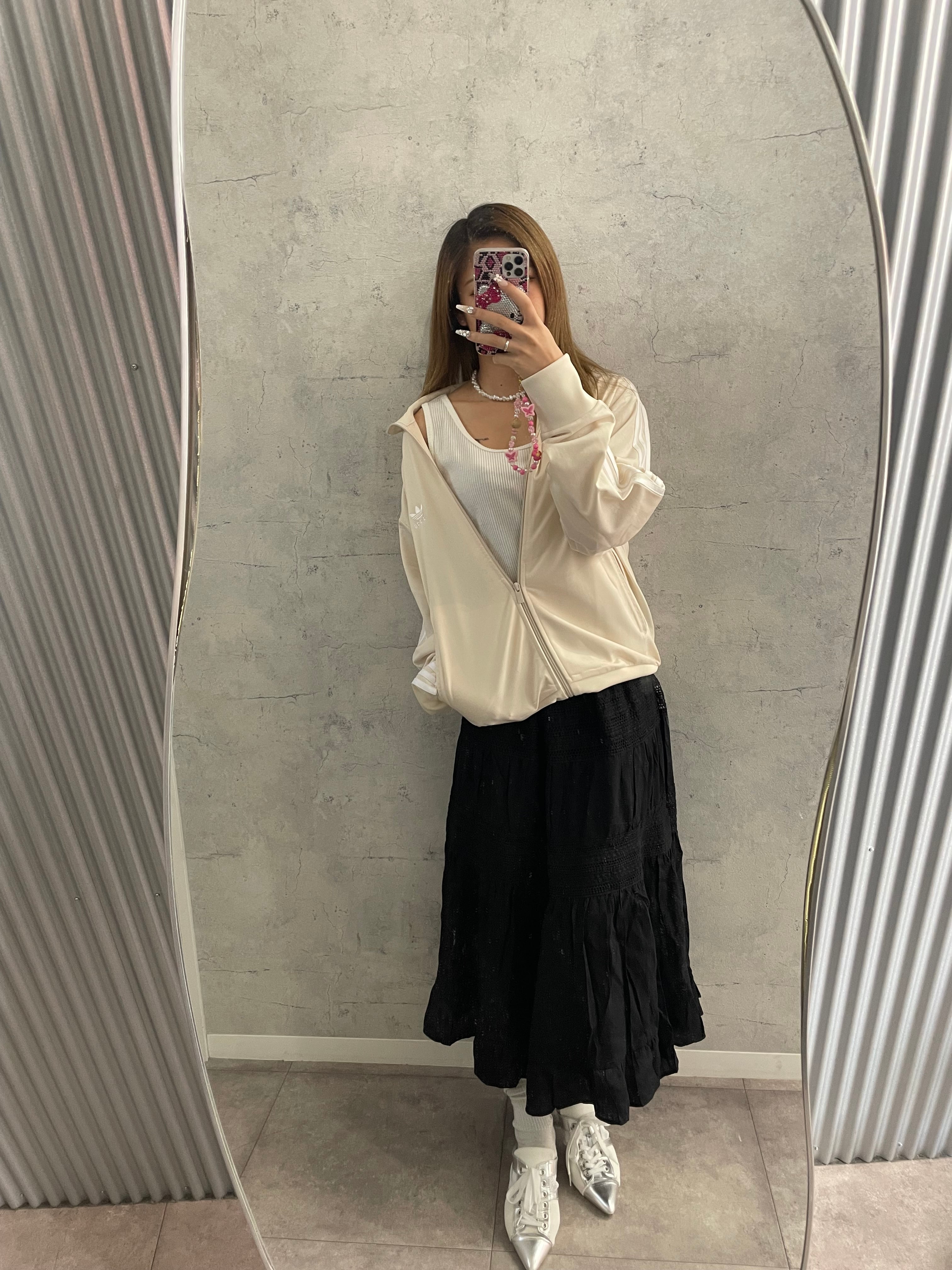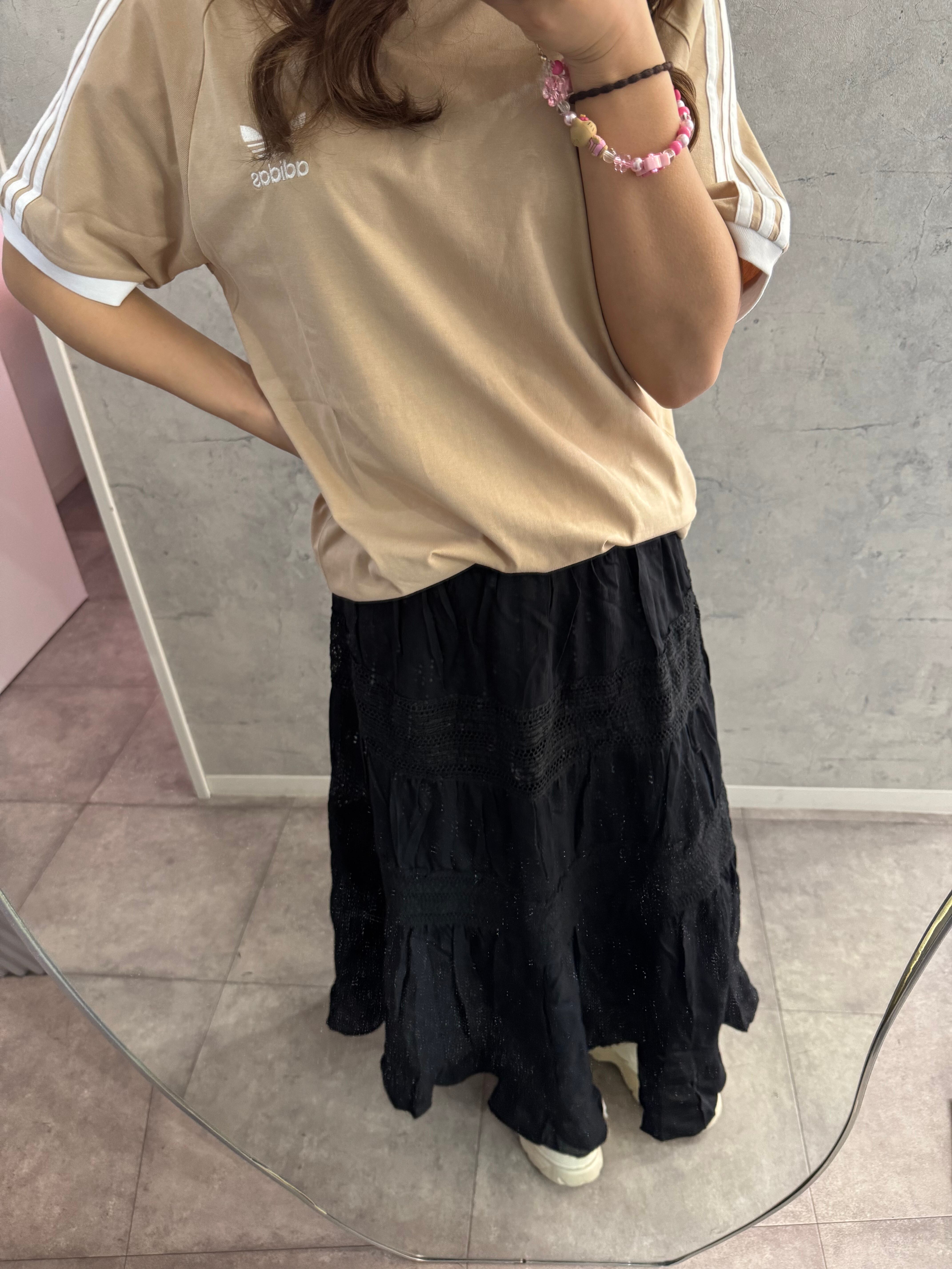 着丈86cm、ウエスト64cm(ゴム仕様)、ヒップ130cm、すそ周り264cm