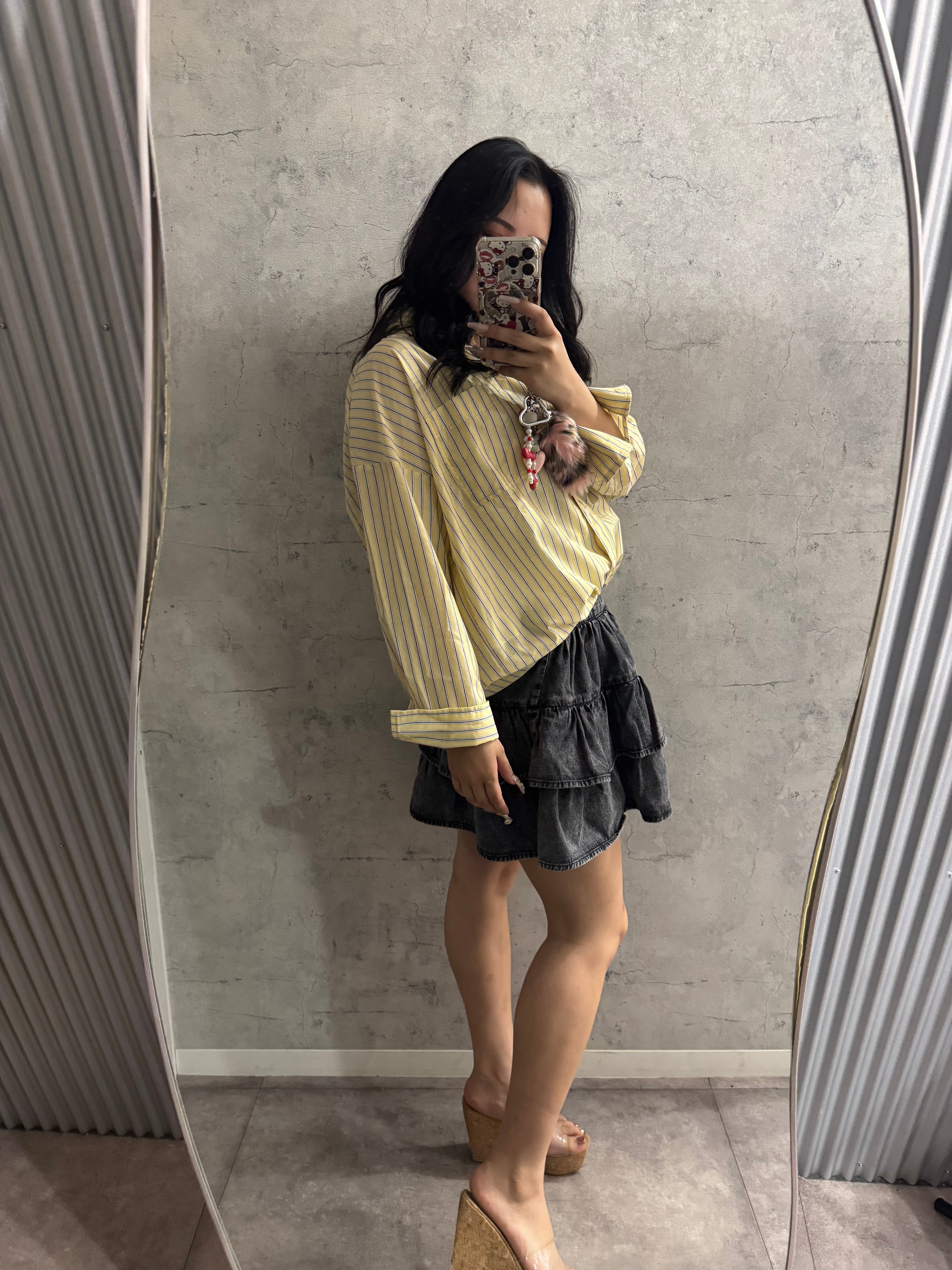 ガーリーな揺れ感が可愛い♪ ティアードデザインのデニムミニスカパン