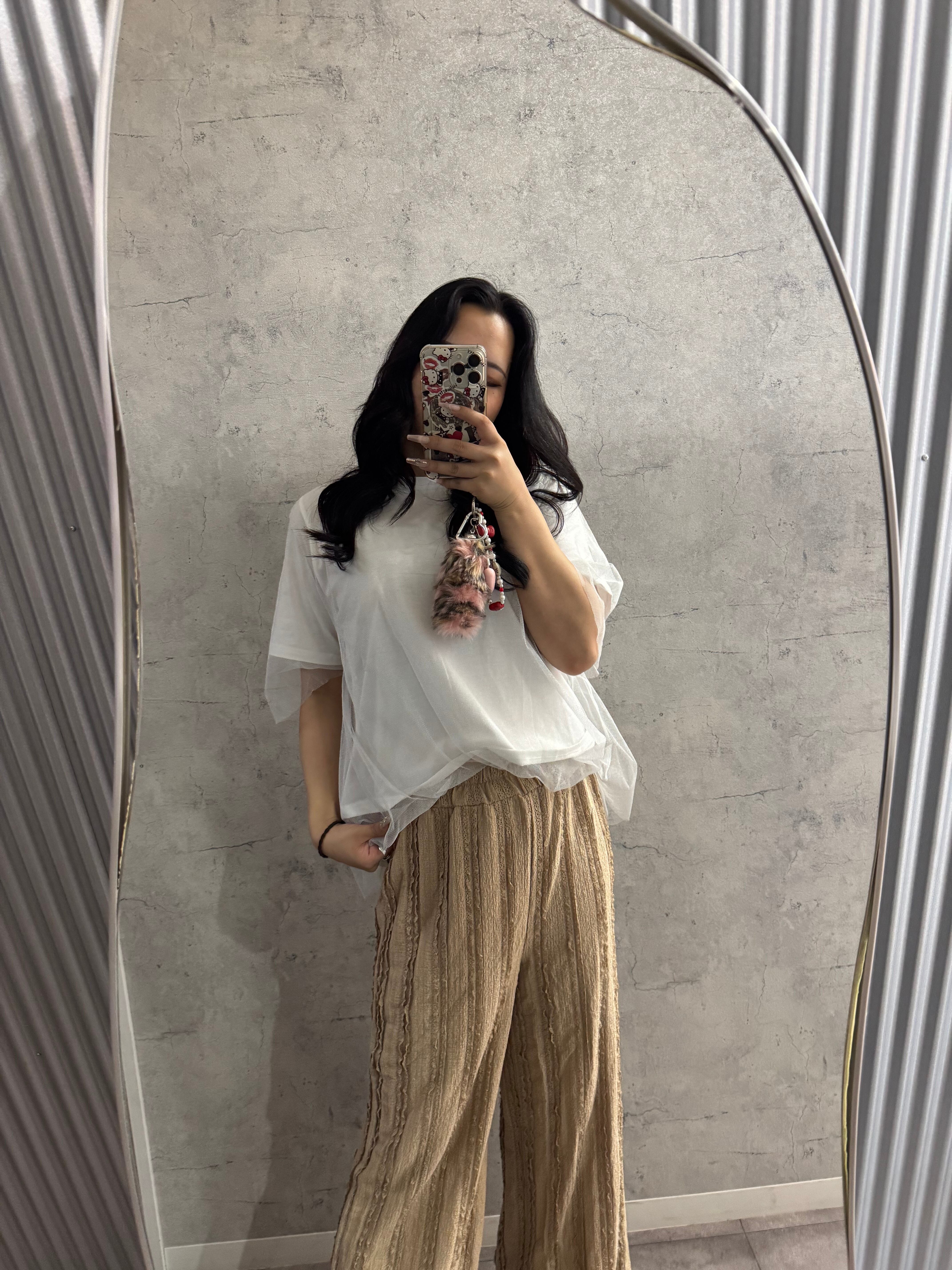 繊細なグリッター感が煌めく、チュール素材のシアーTシャツ。