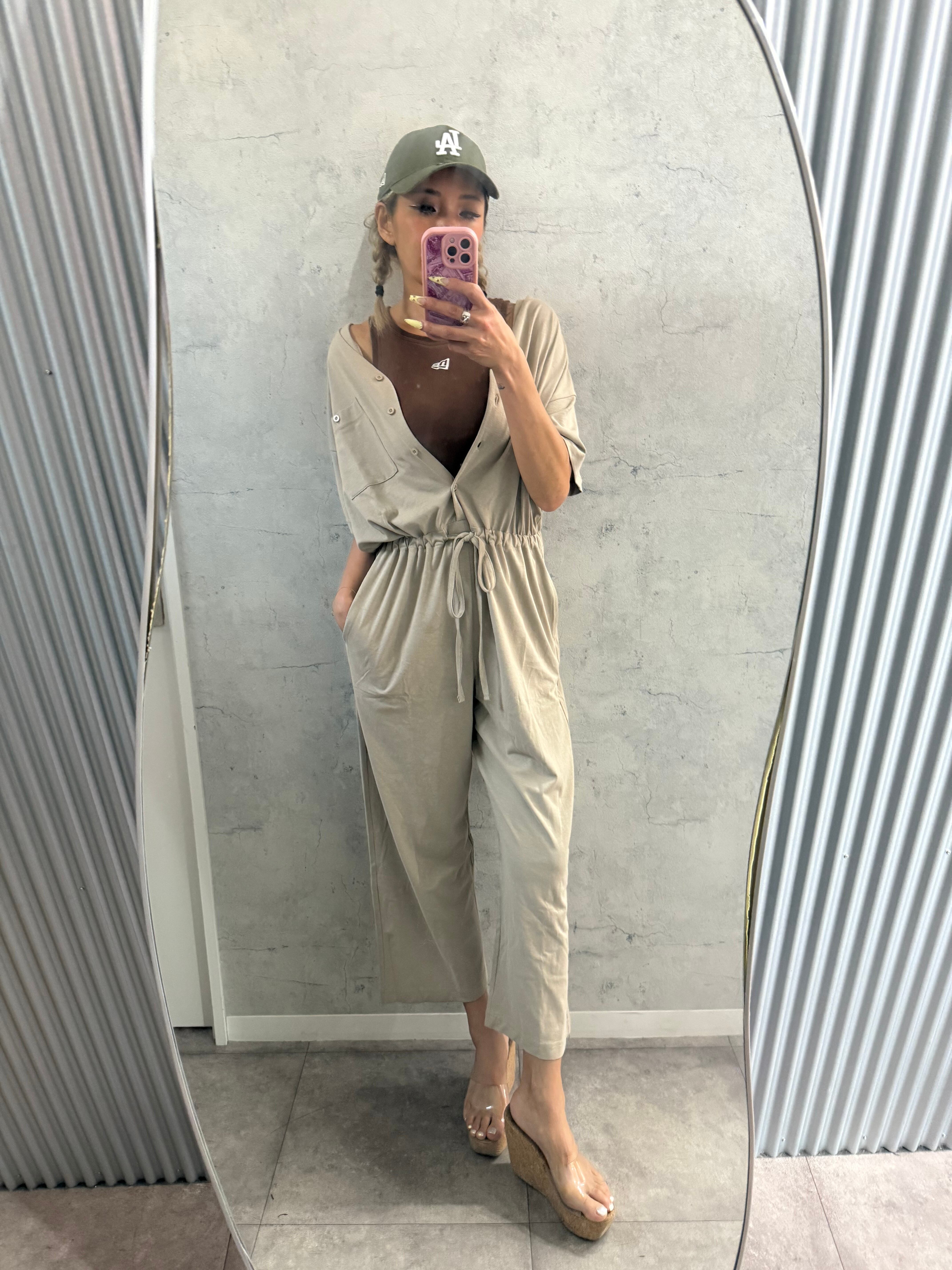 大人可愛いVネックオールインワン