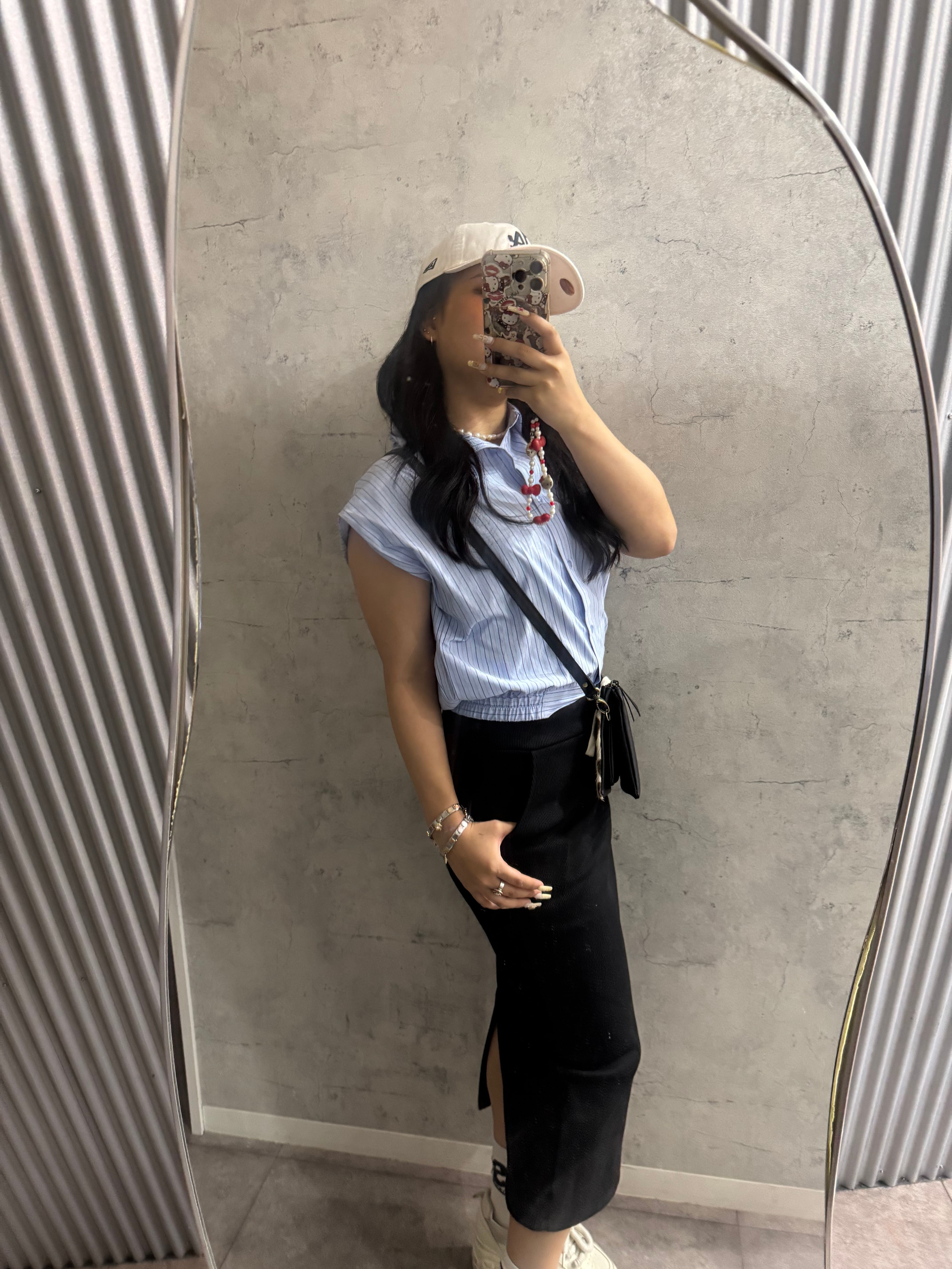 ストライプタックノースリーブシャツ