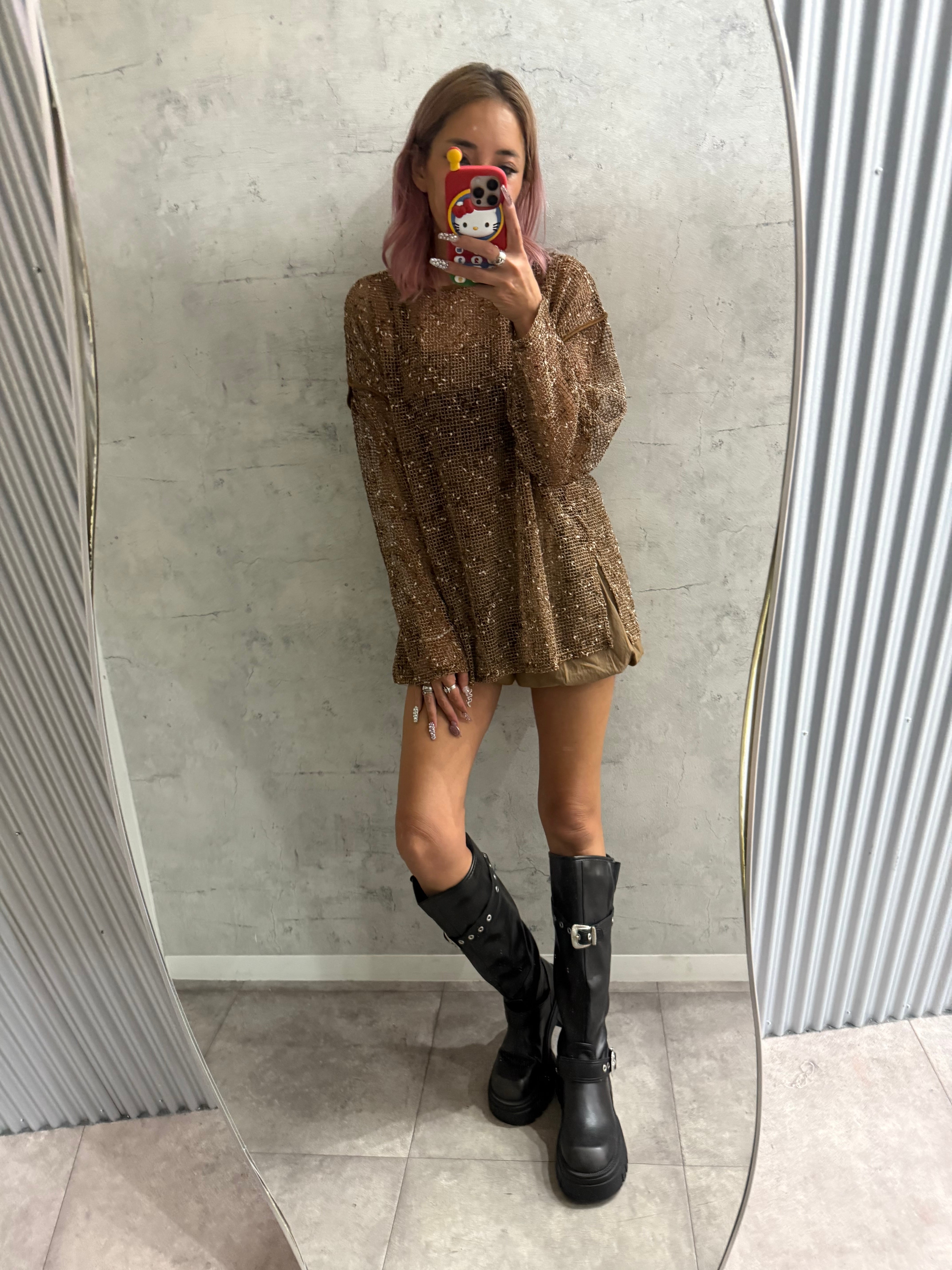ざっくりとした編み目とニュアンス柄が特徴で、軽やかな抜け感を演出しますルーズな丈感なので、腰回りをさりげなくカバーしつつ、スタイリッシュなシルエットに◎同素材のスカートとセットアップで着こなすのもおすすめ
