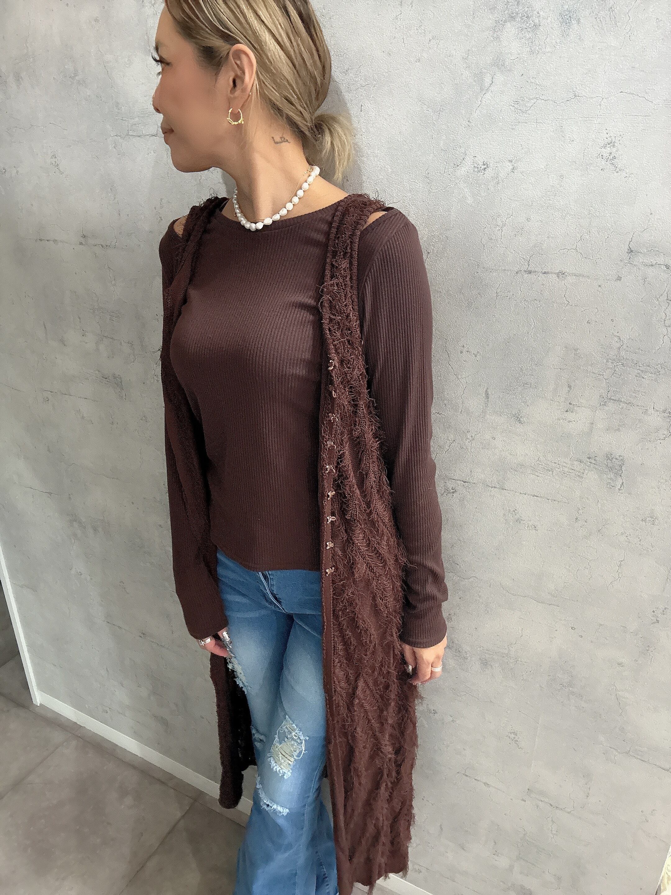 軽やかな素材感ながら フリンジのデザインがコーデをビシッと決めてくれ高見え効果も期待できます◎・デザイン性もありながらシンプルなカラーリングでレイヤードしやすいアイテムです