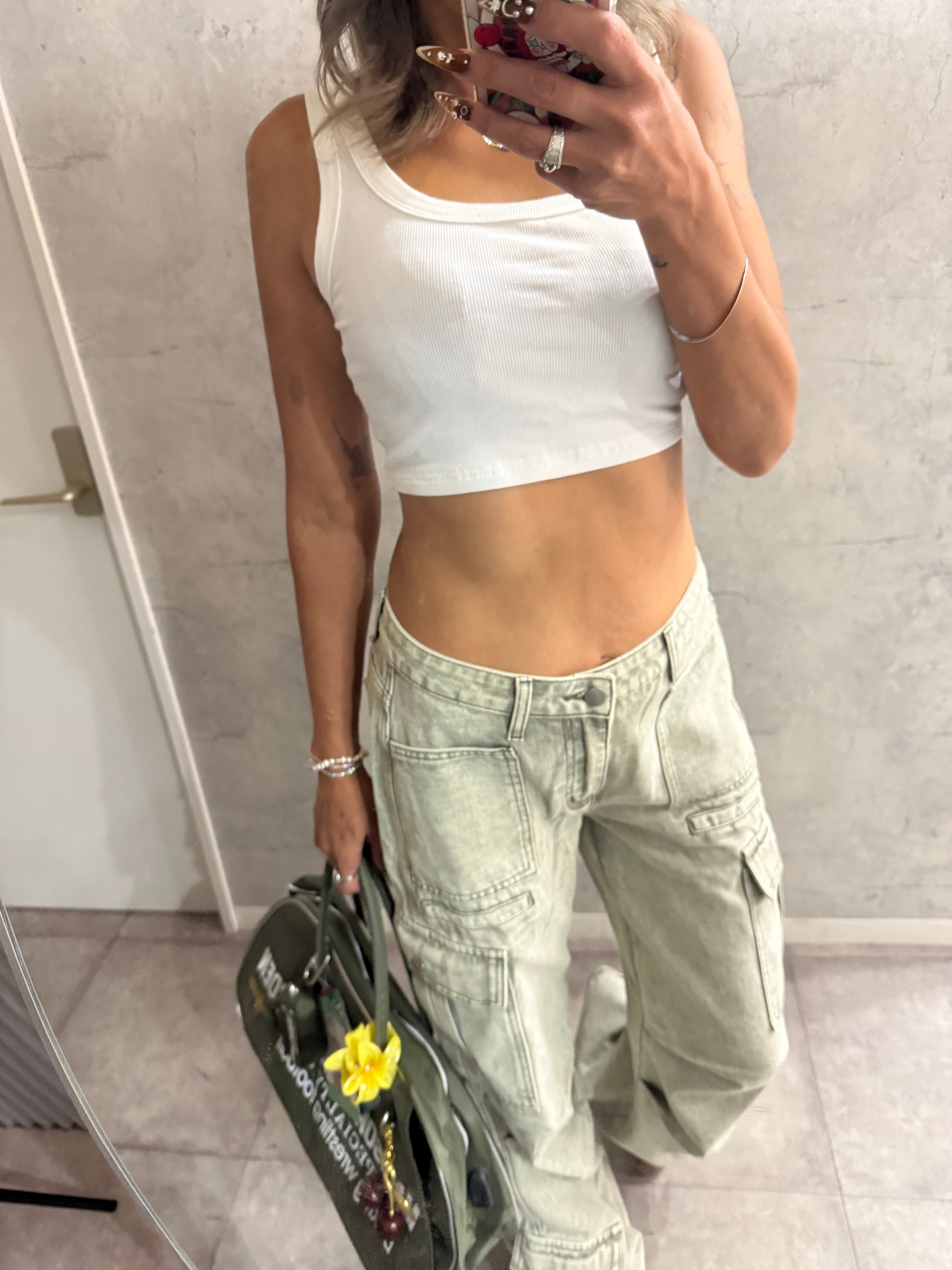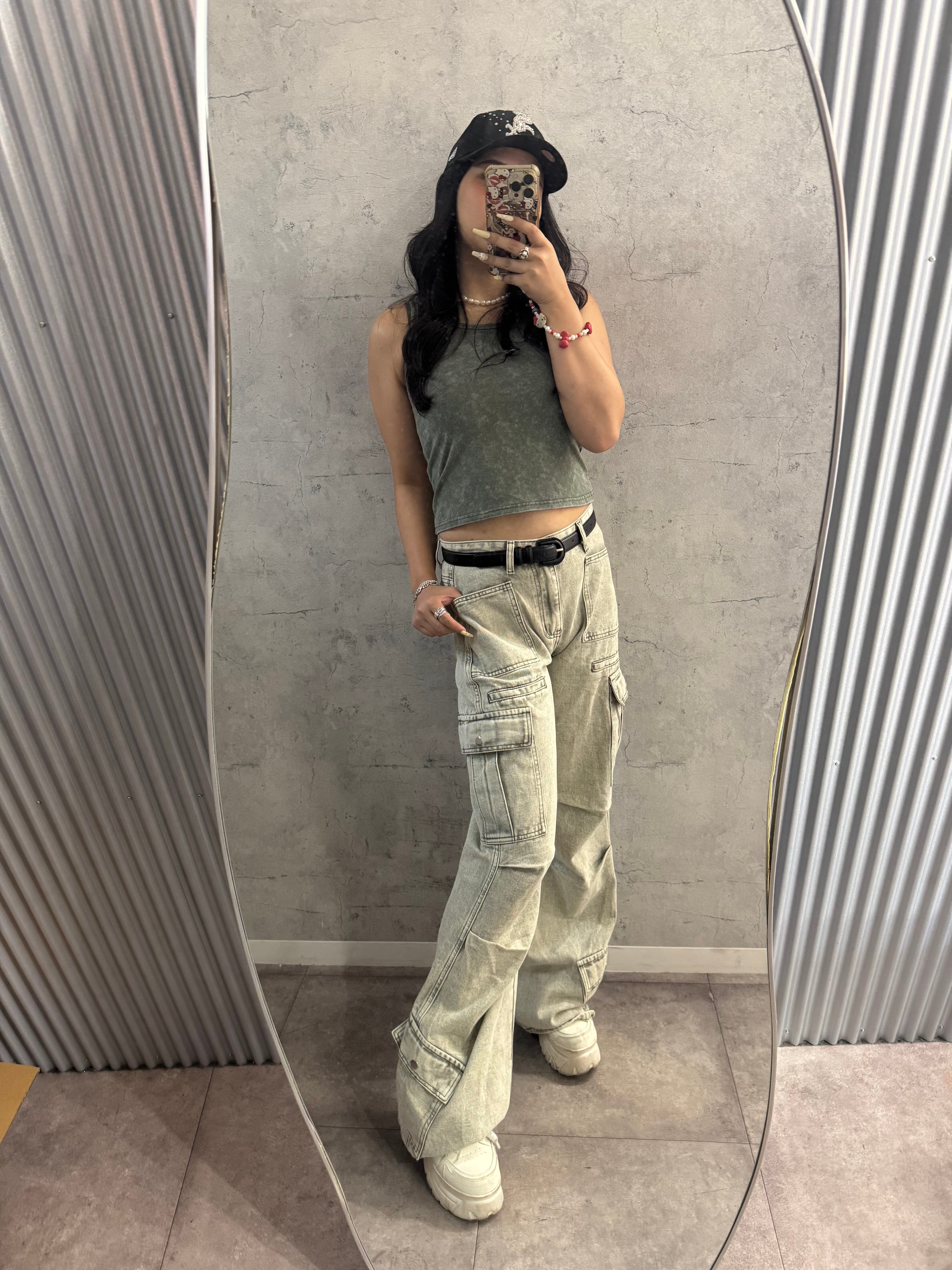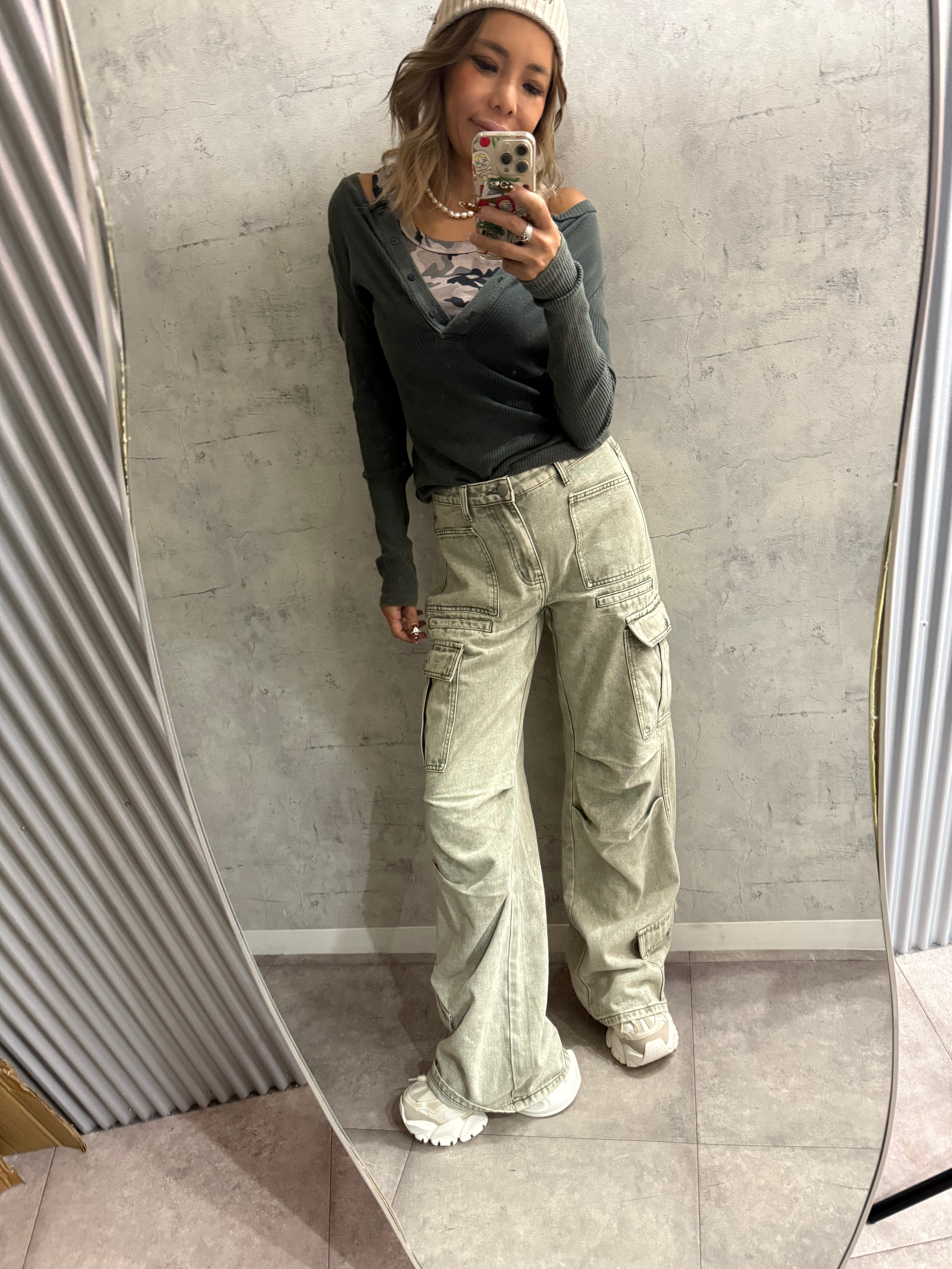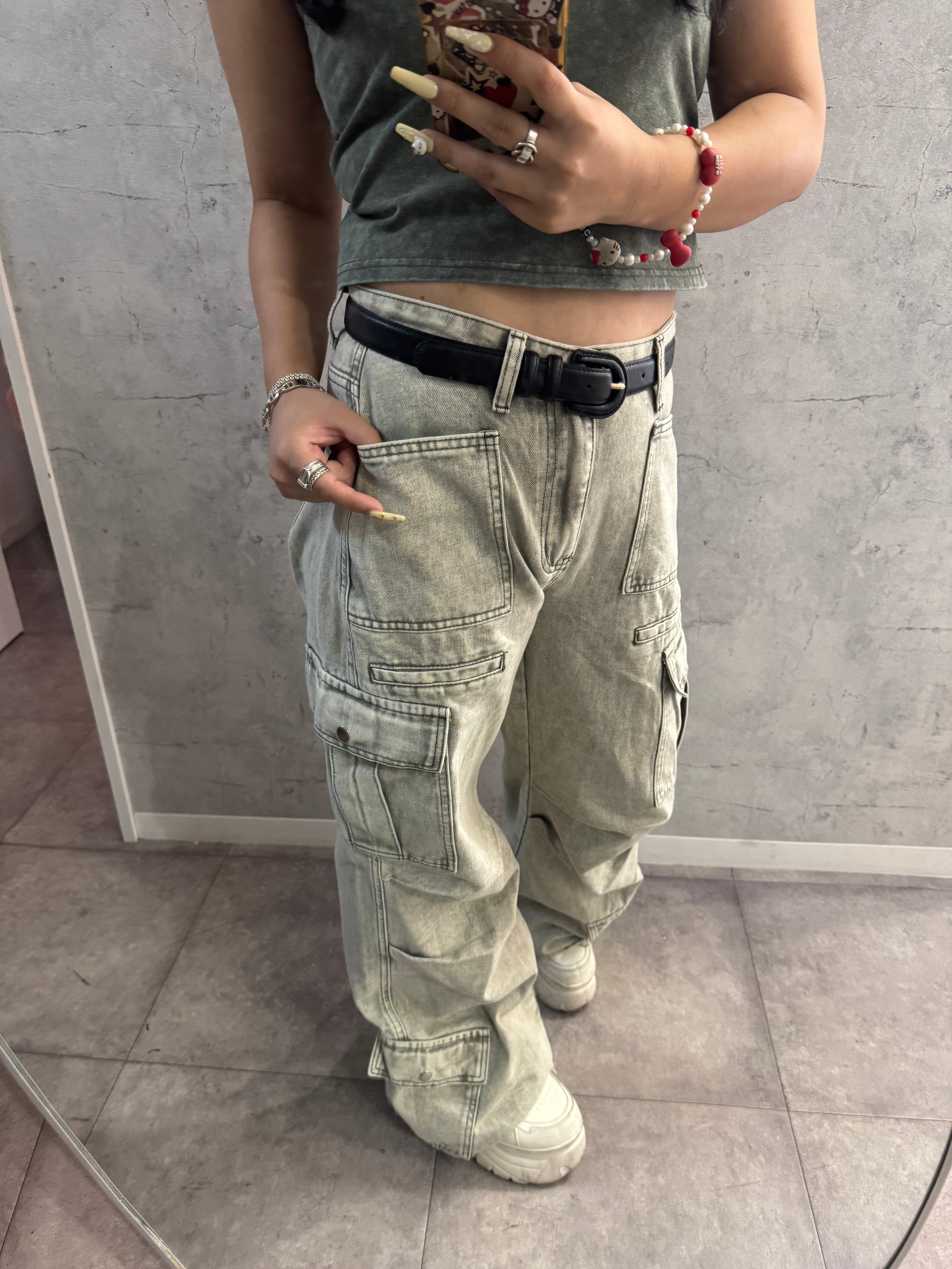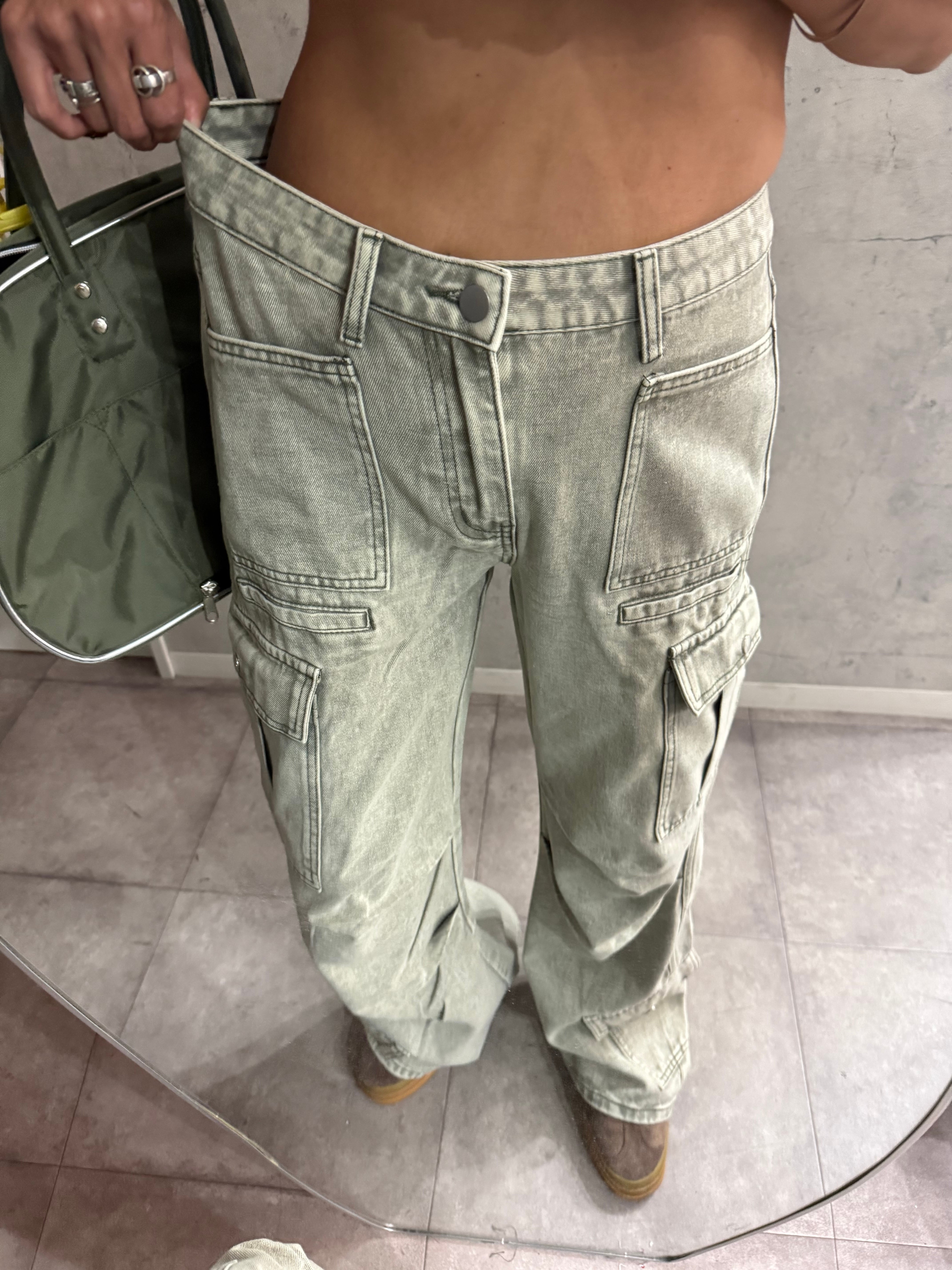 オリジナルヴィンテージ風のカーゴワイドデニムパンツが登場しました。リラックスした印象を与えるワイドシルエットで、カジュアルコーデに最適です。