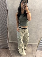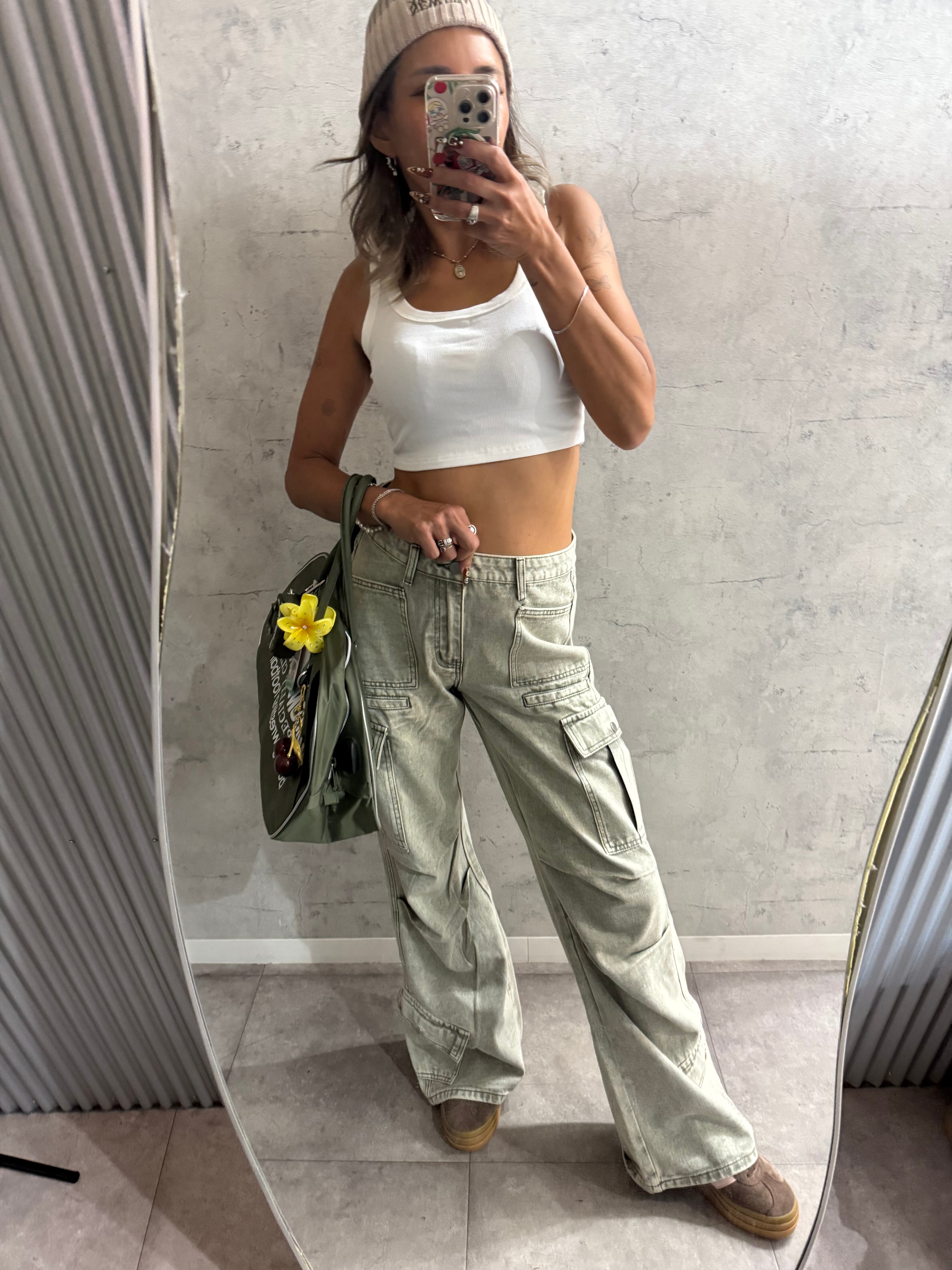 カーゴパンツならではの大きなポケットで、スマートフォンや財布など小物の持ち運びも安心。実用性とファッション性を兼ね備えています。