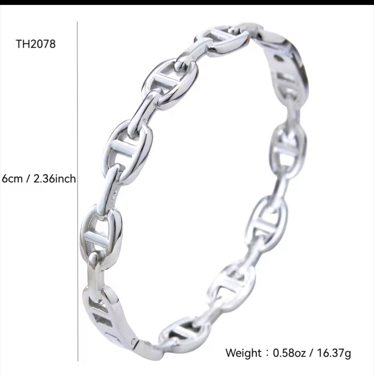 手首を彩る美しいチェーンデザインで、カジュアルからフォーマルまで幅広いシーンで活躍します。シンプルながらも存在感があり、コーディネートを一段と引き立てます。