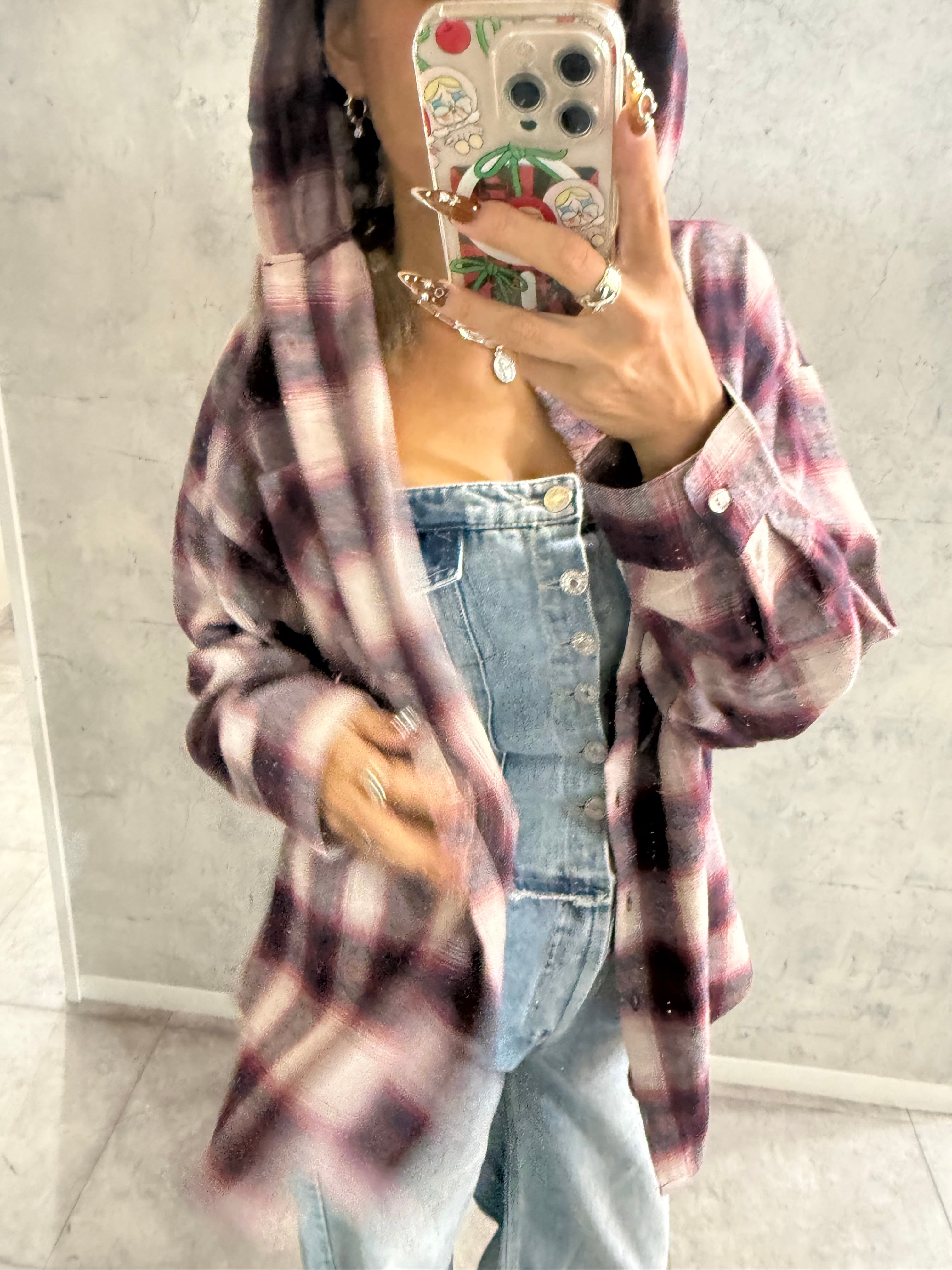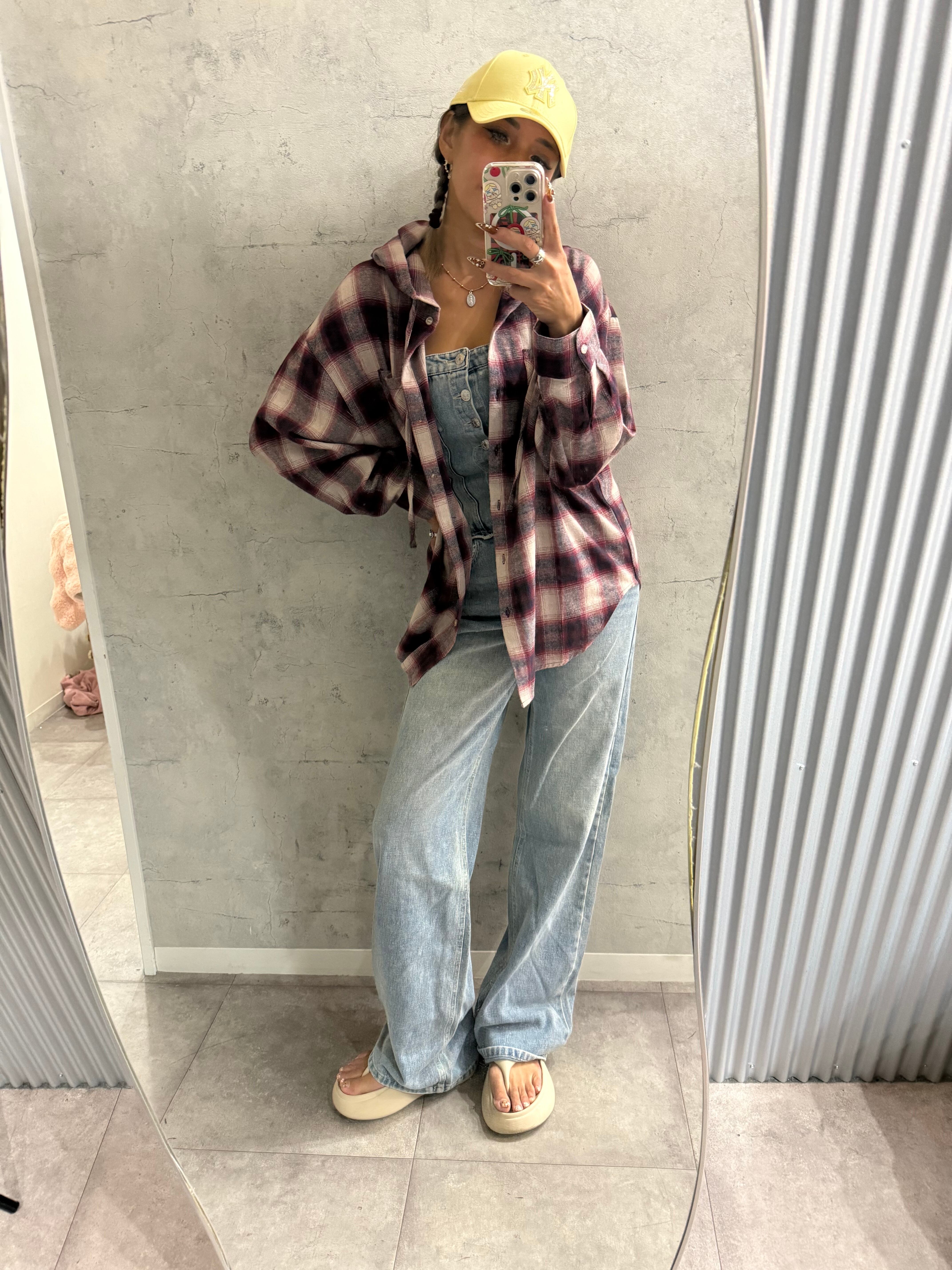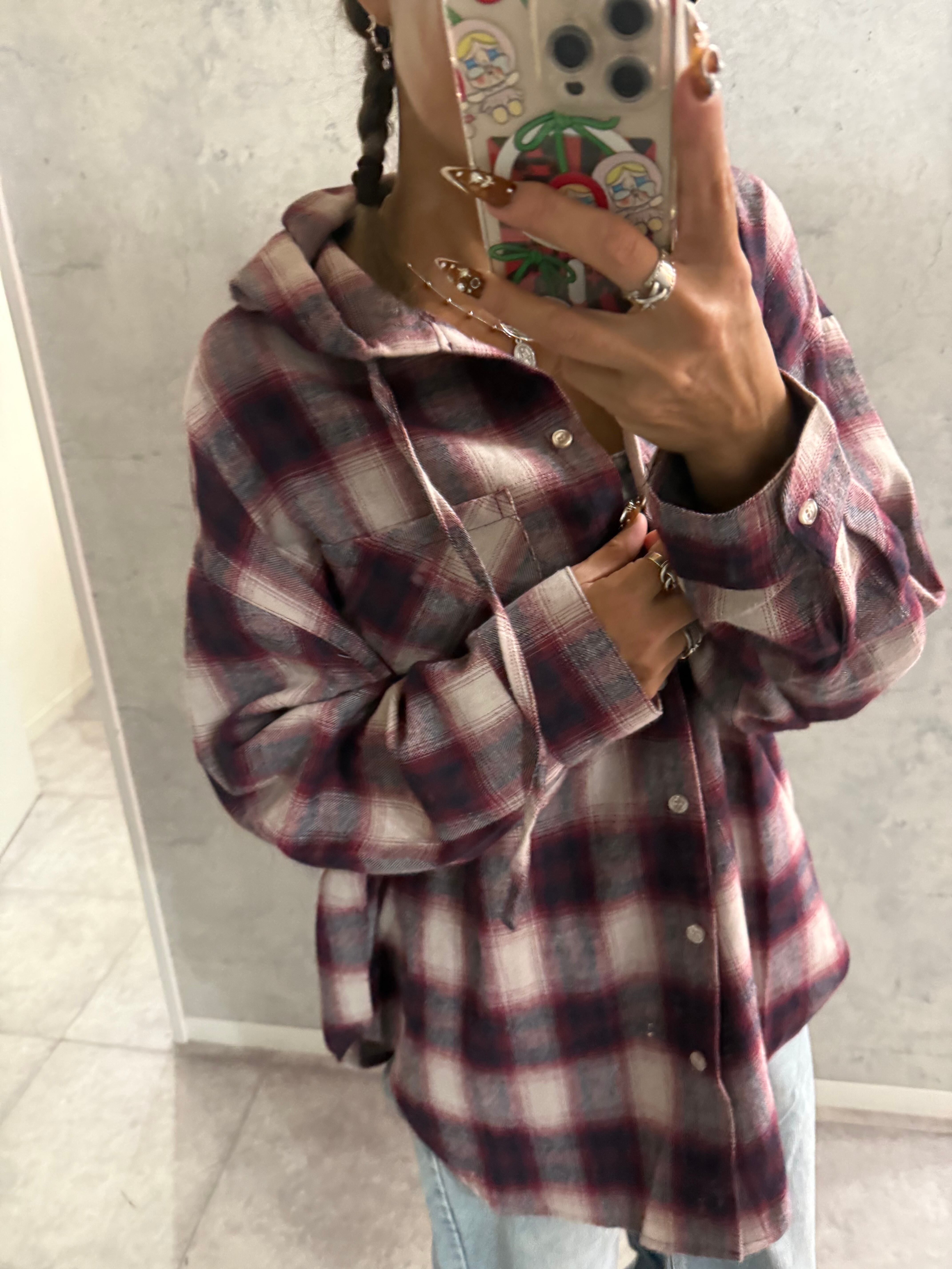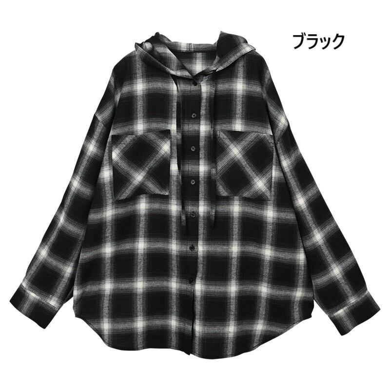 チェックフードビッグシャツ