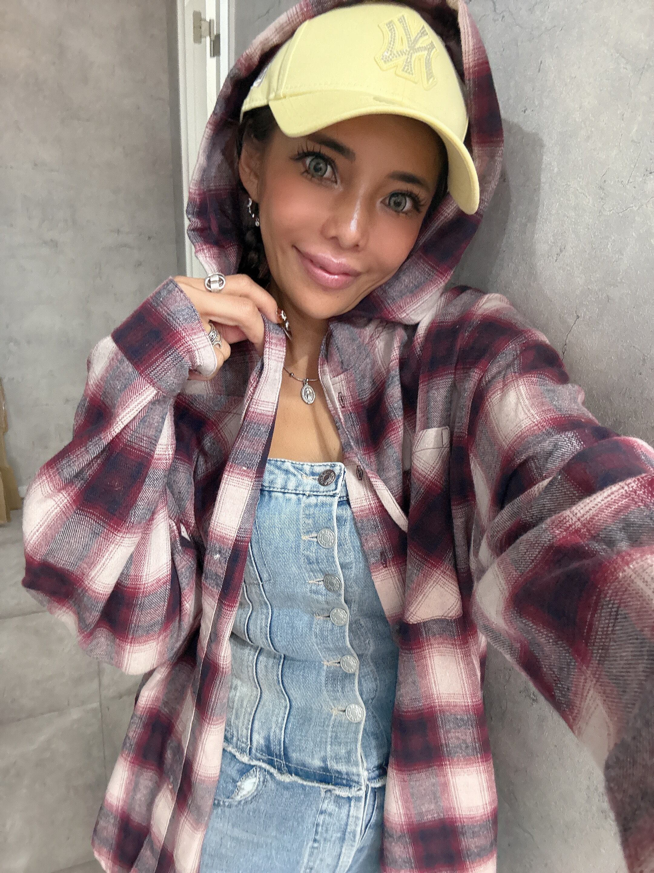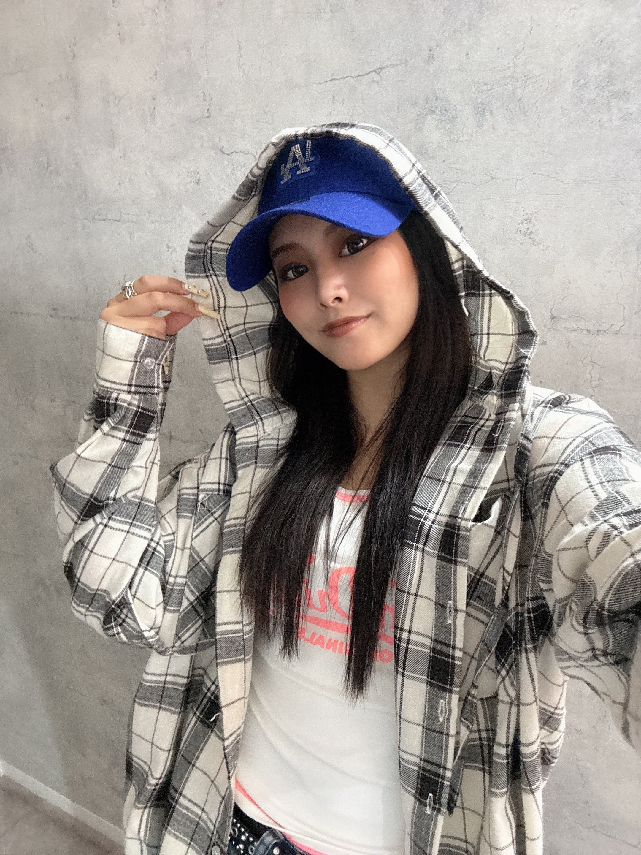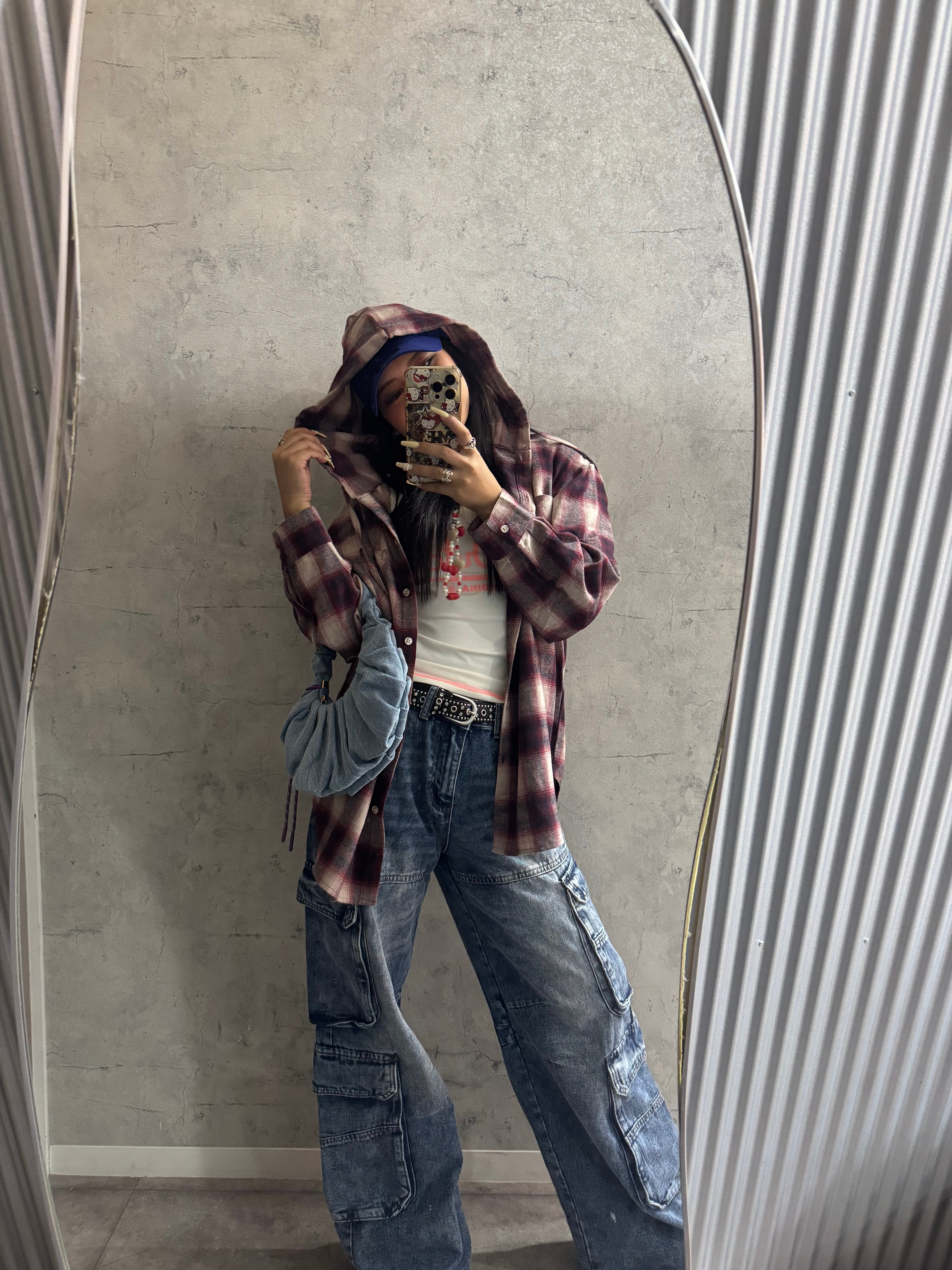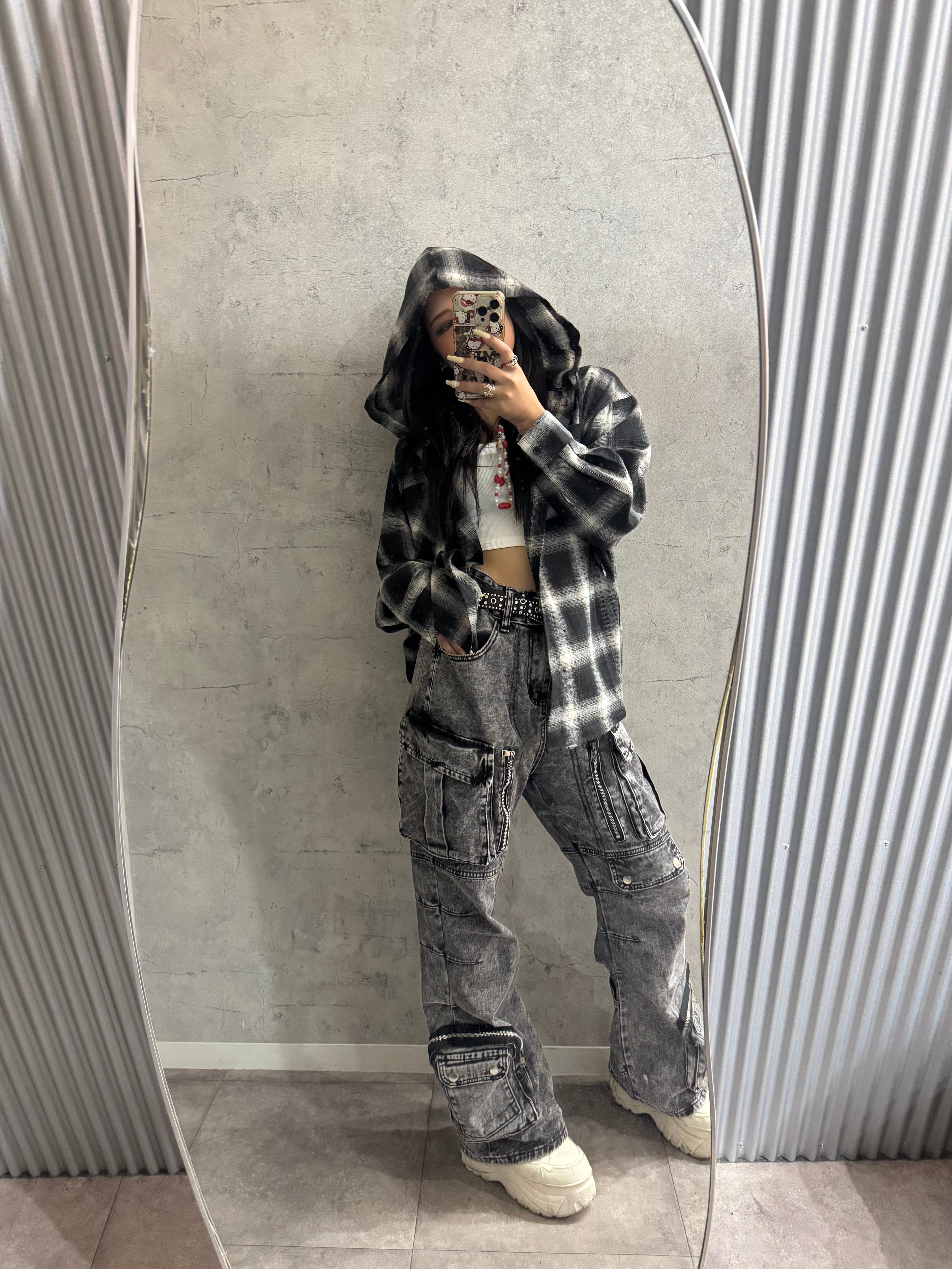 チェックフードビッグシャツ