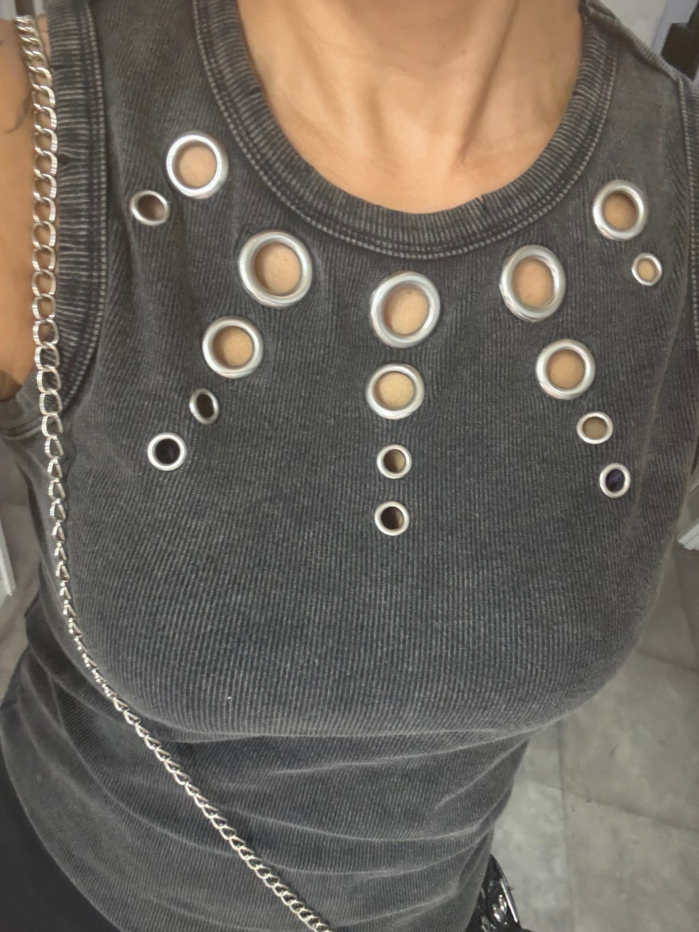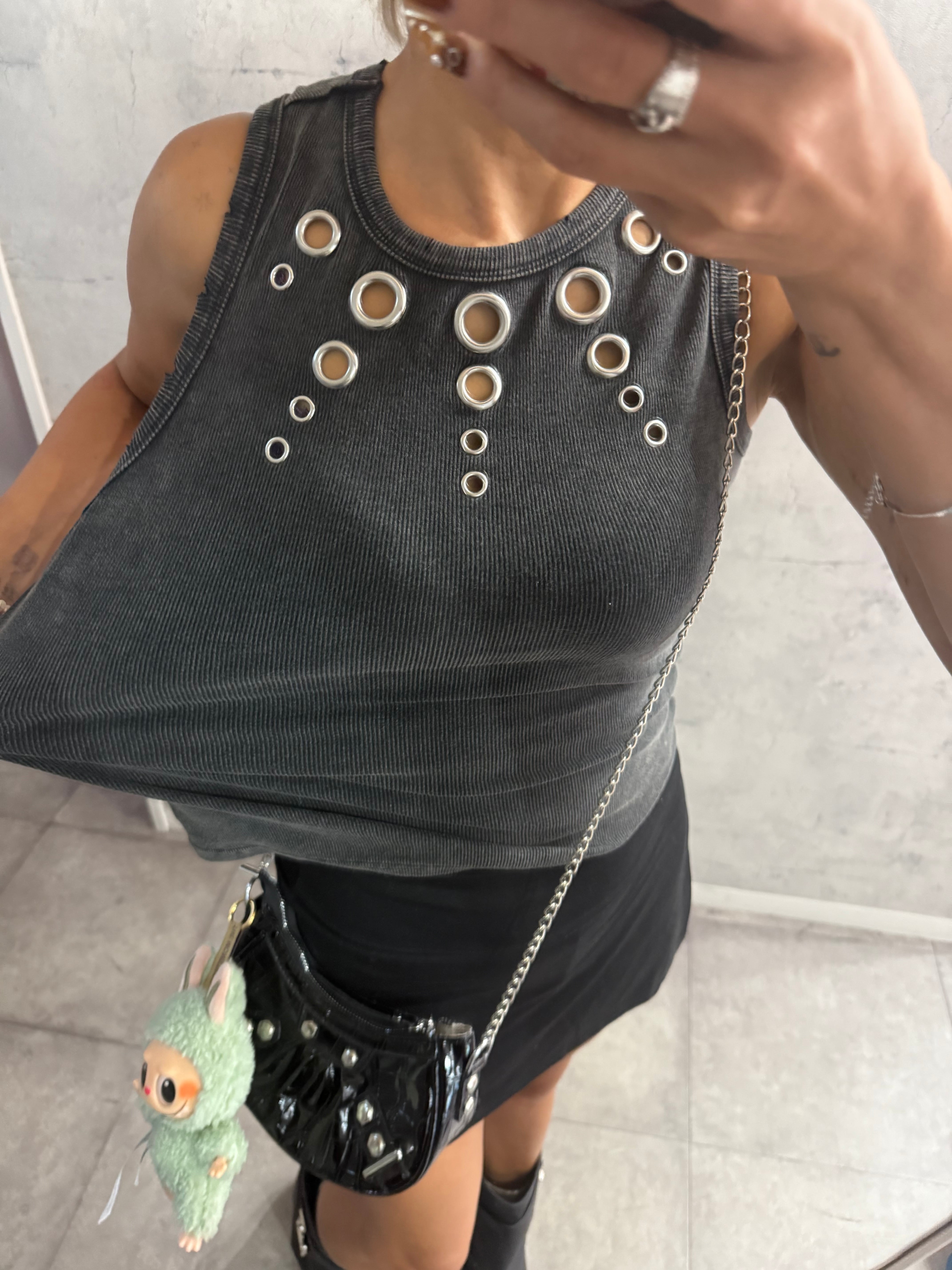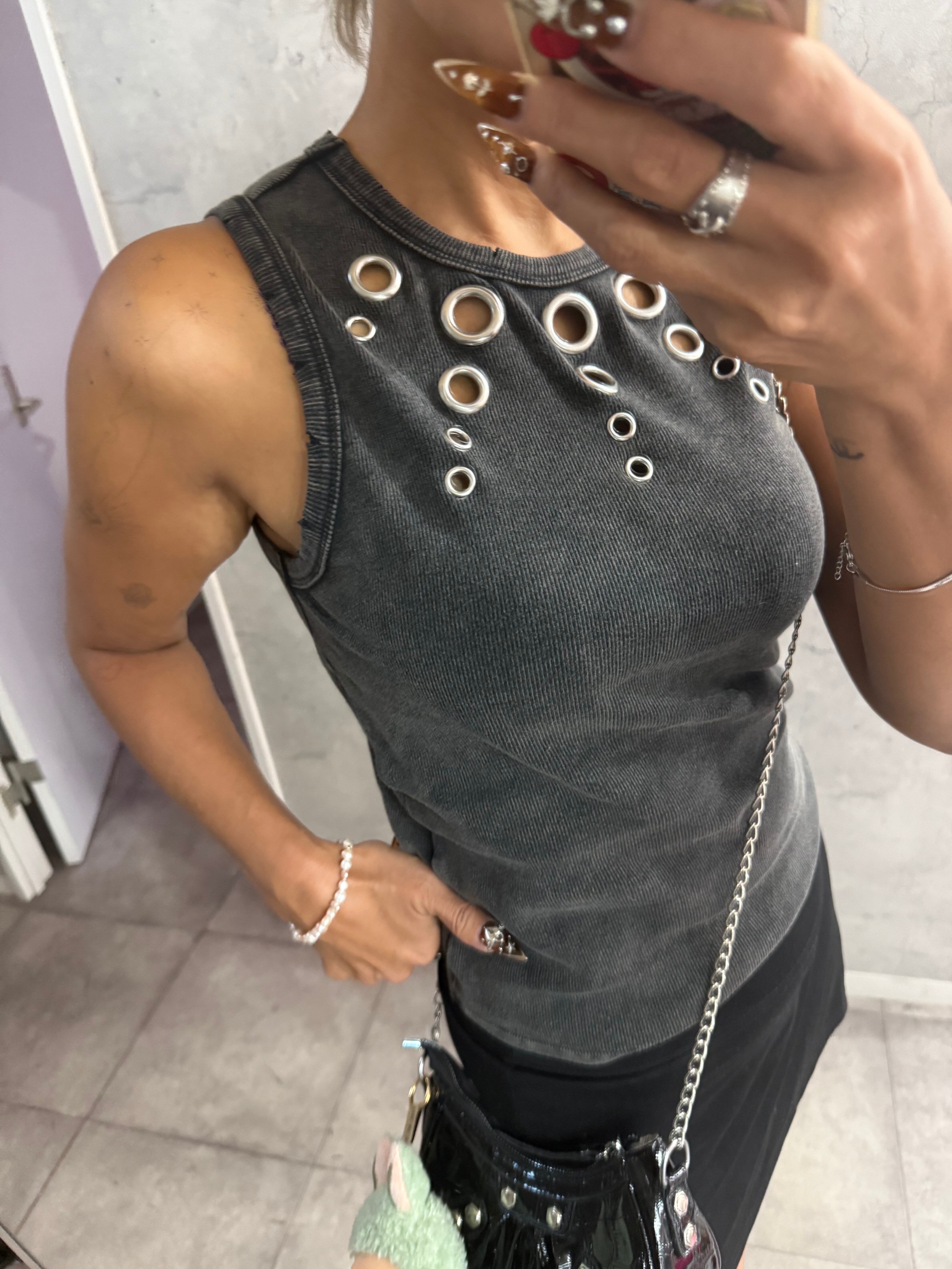 予約1〜2週間‼️スタッズダメージピグメントリブキャミ