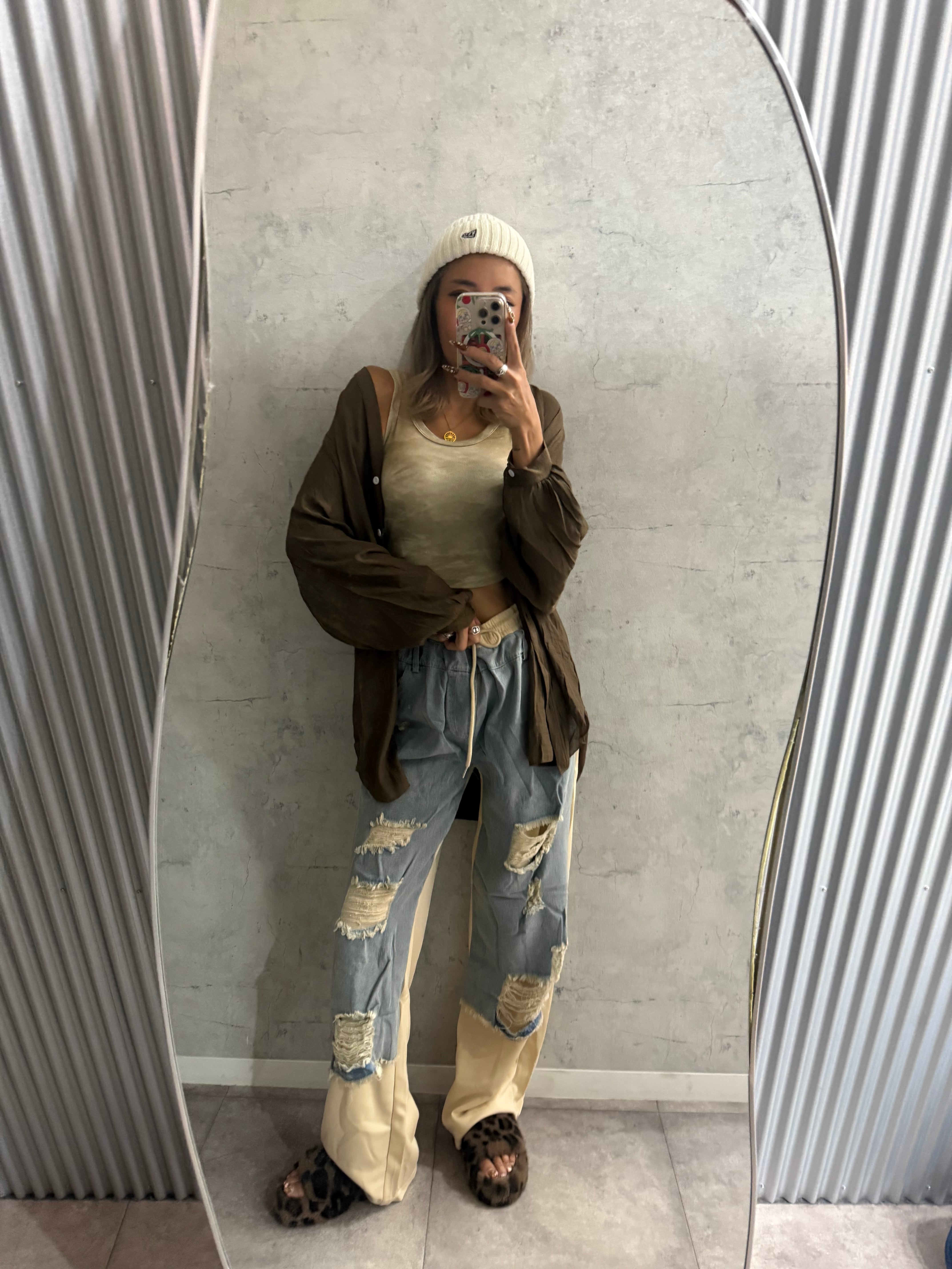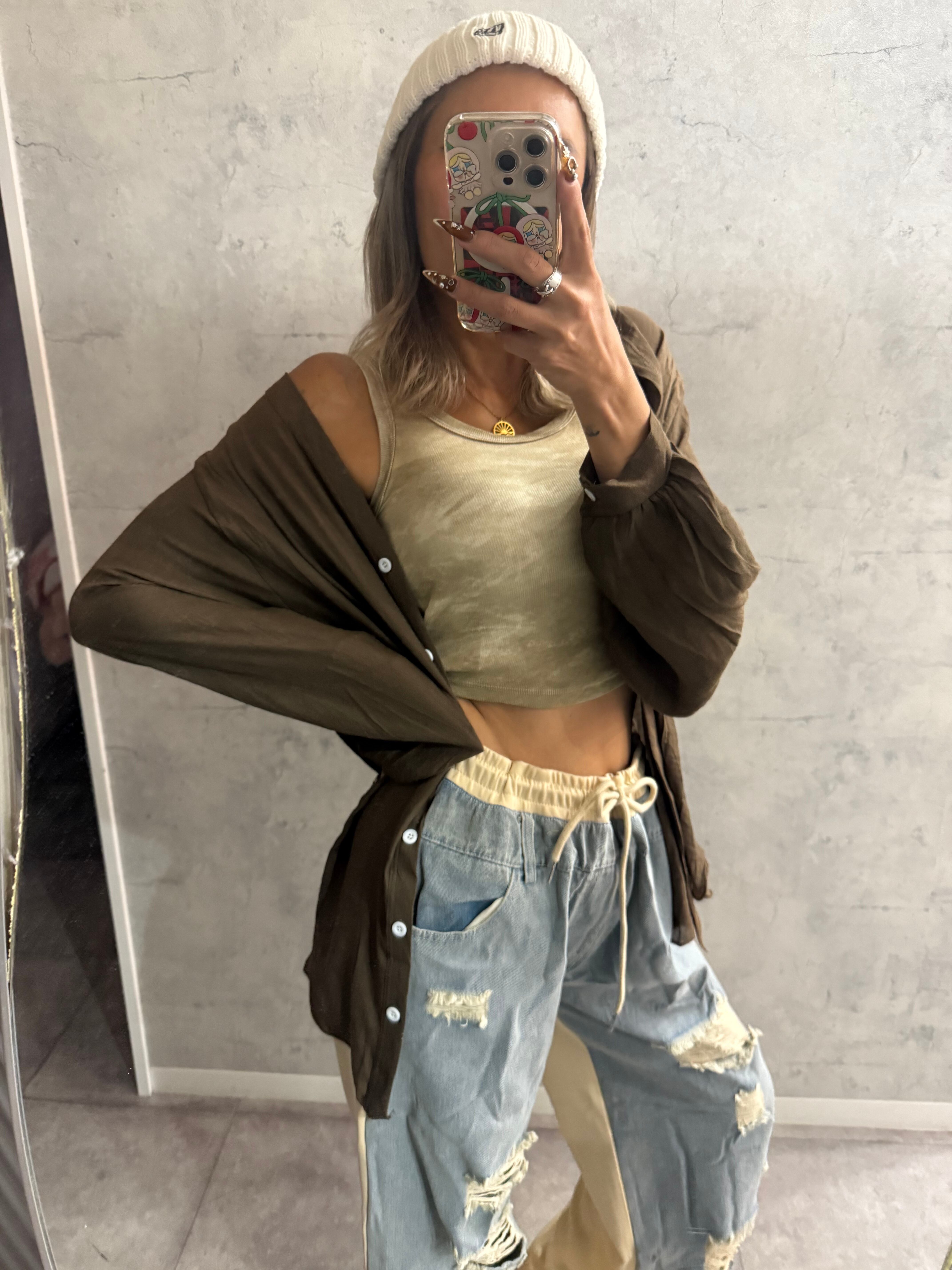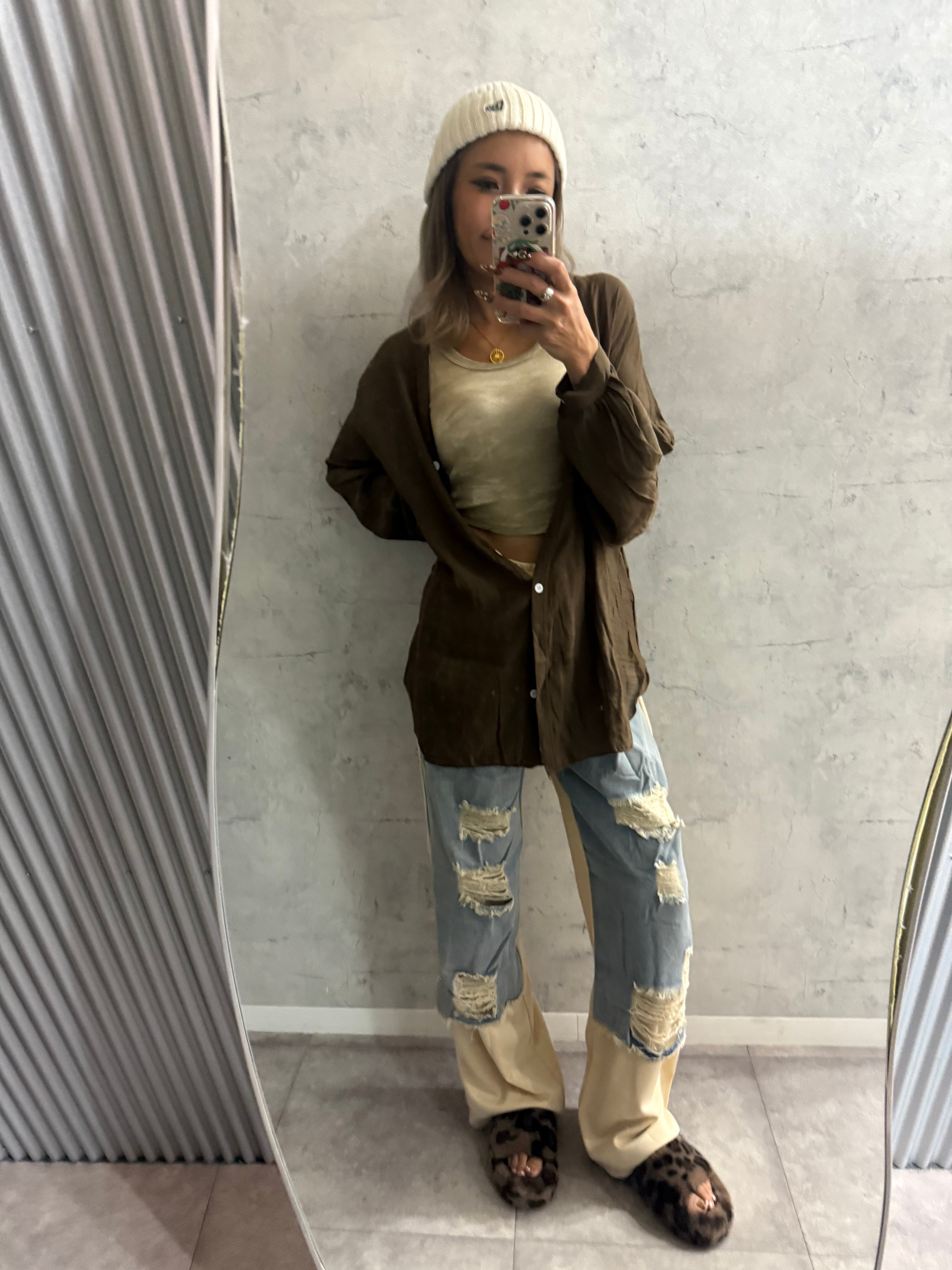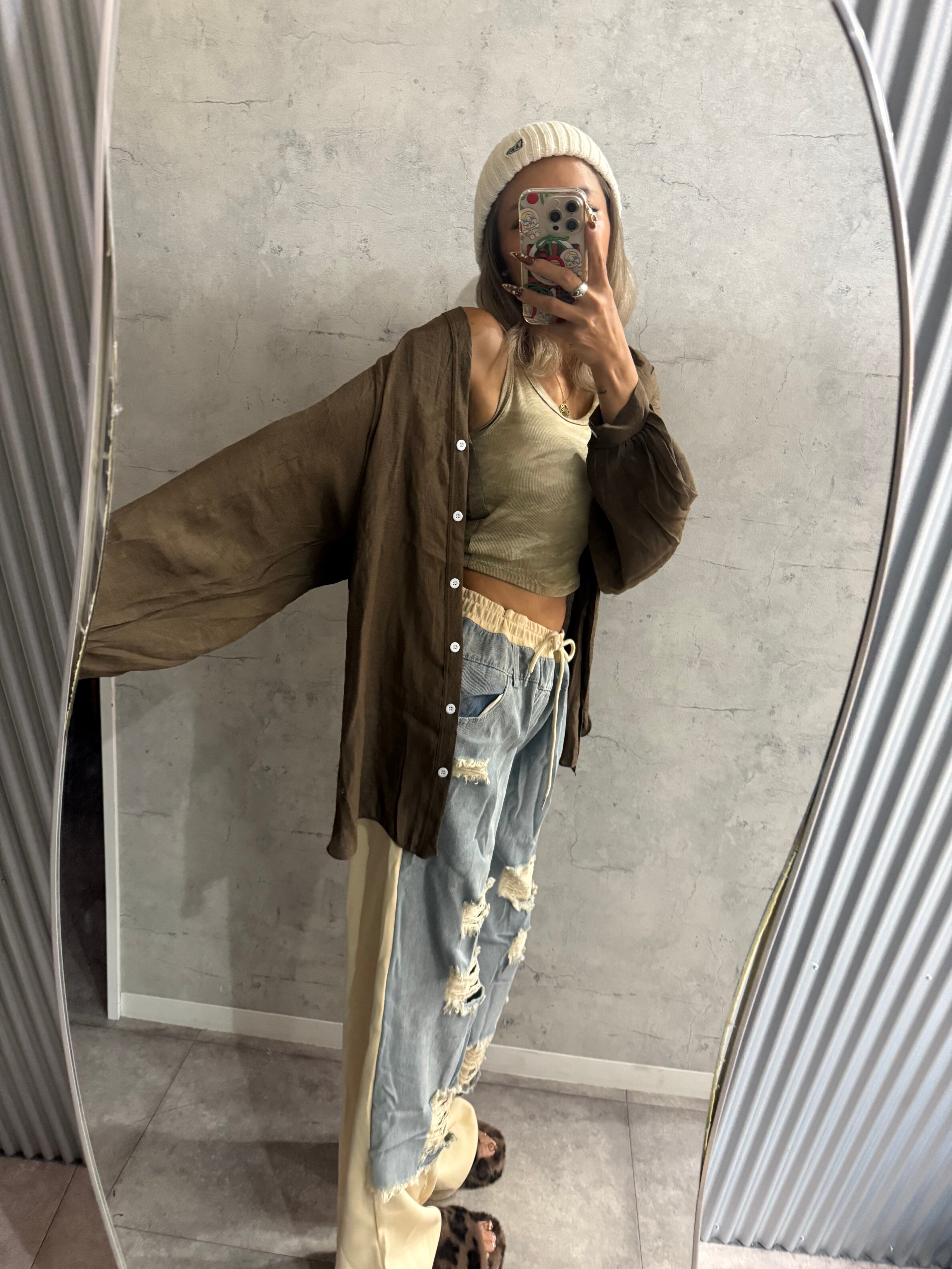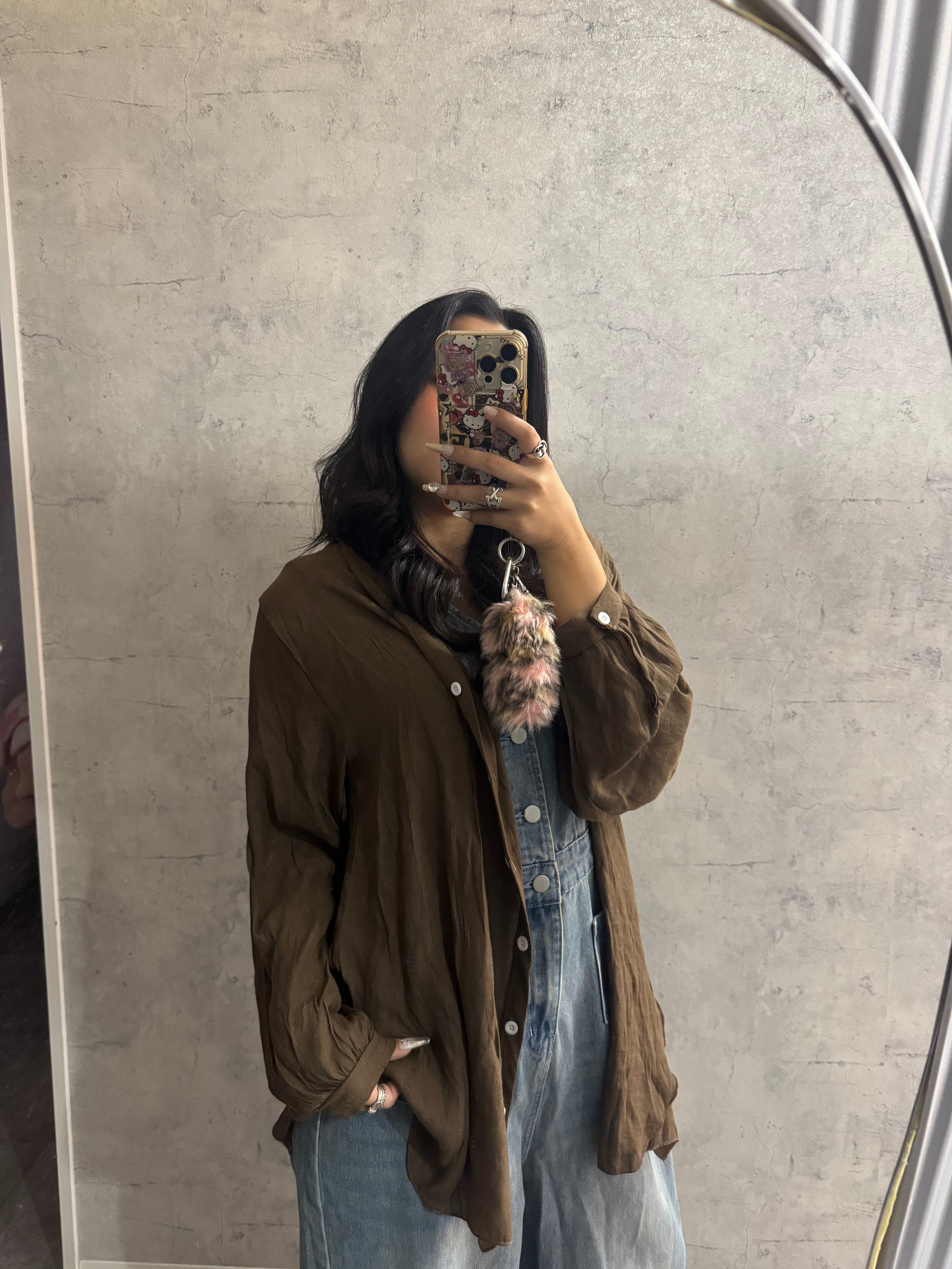 ブラウン即納‼️オーバーサイズシアーシャツ