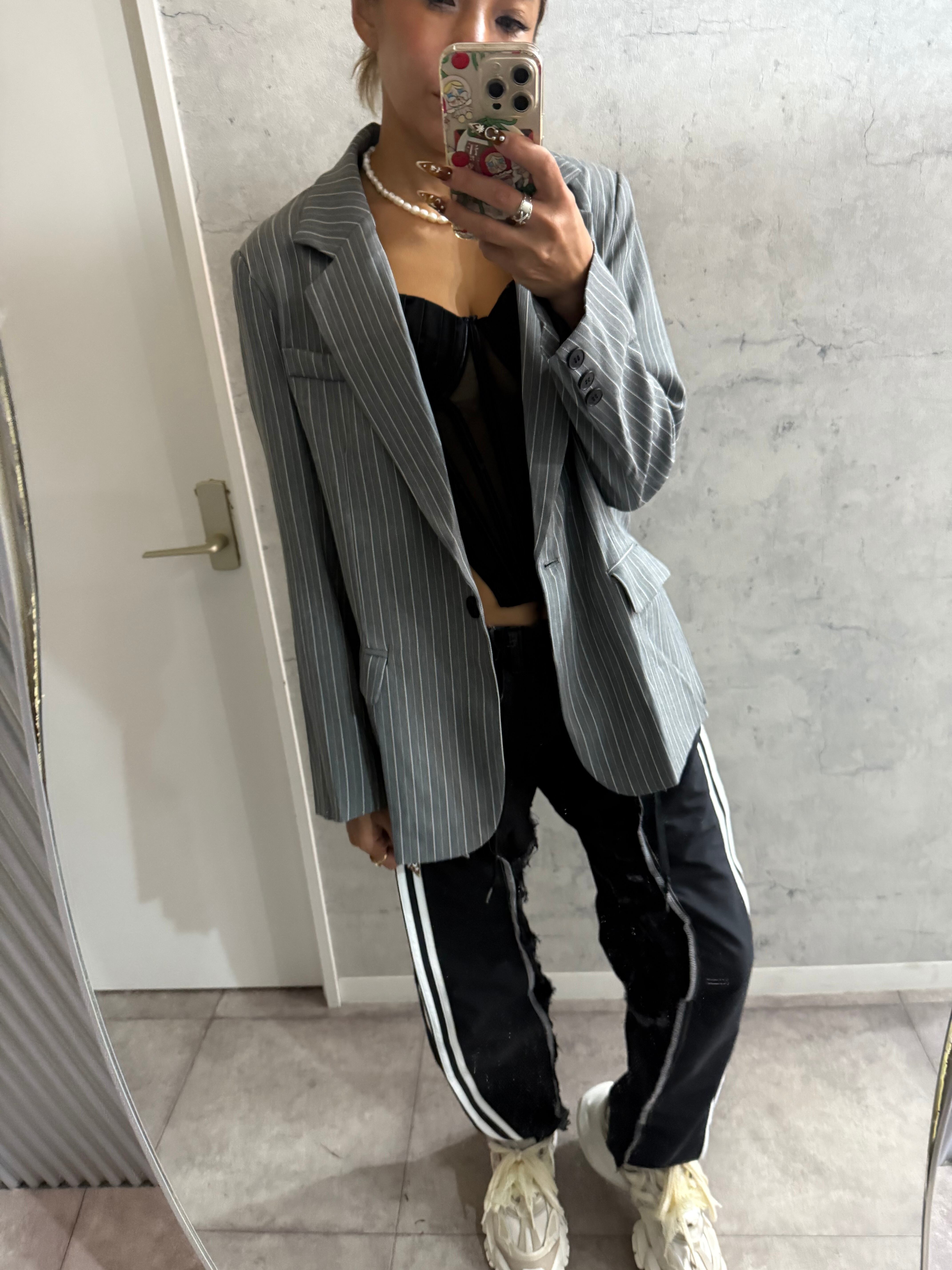 ラスト1ピンストライプヘリンボーンジャケット