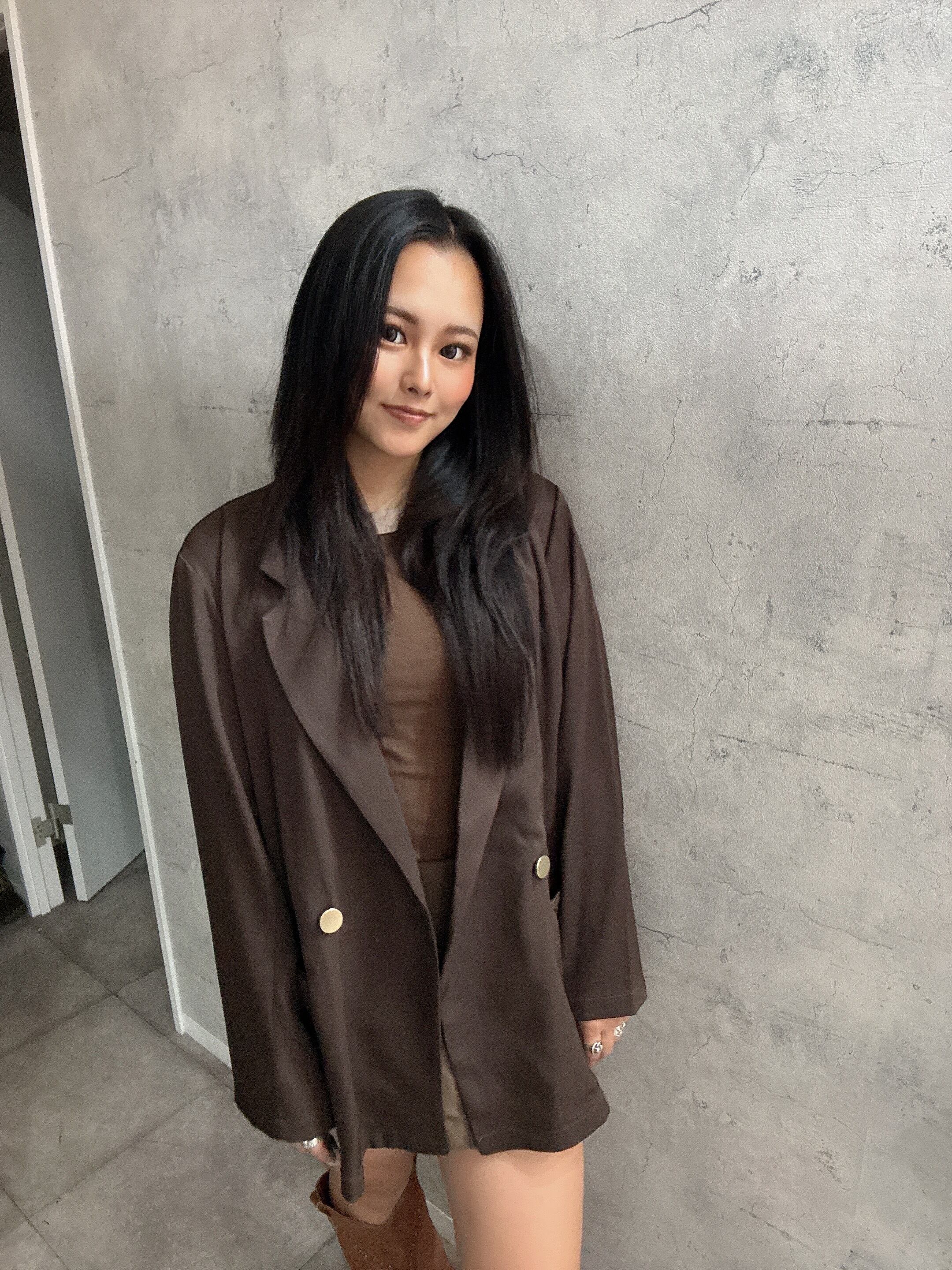 ・ゴールド釦がアクセントとなり、クラシカルでありながら洗練された印象を演出します・ゆとりのあるシルエットで着心地も良く、オン・オフ問わず活躍・カラーはブラウン・チャコール・ネイビー・ブラックの4色展開・同素材のツータックコクーンパンツと合わせれば、トレンド感のあるセットアップスタイルも楽しめます