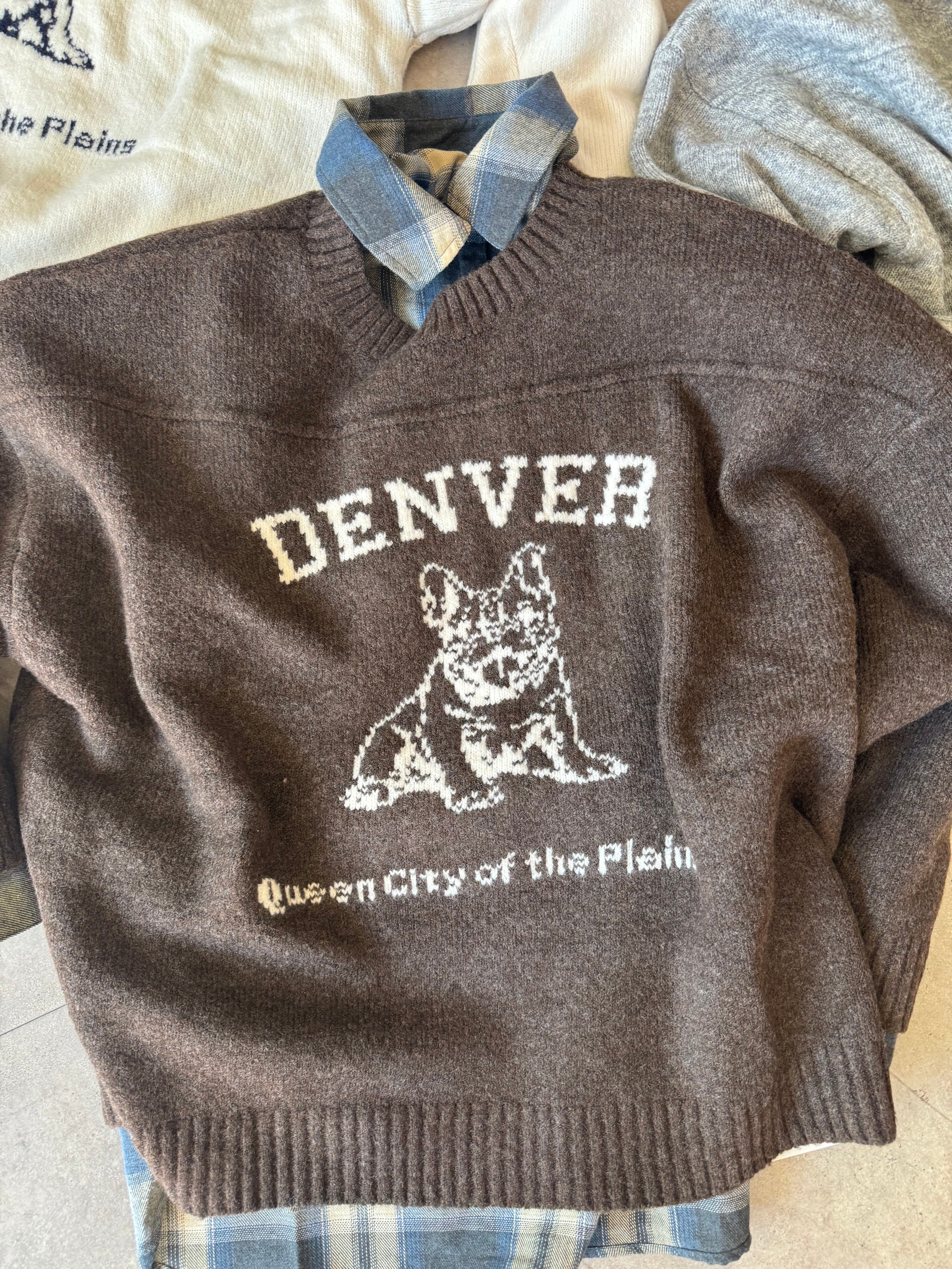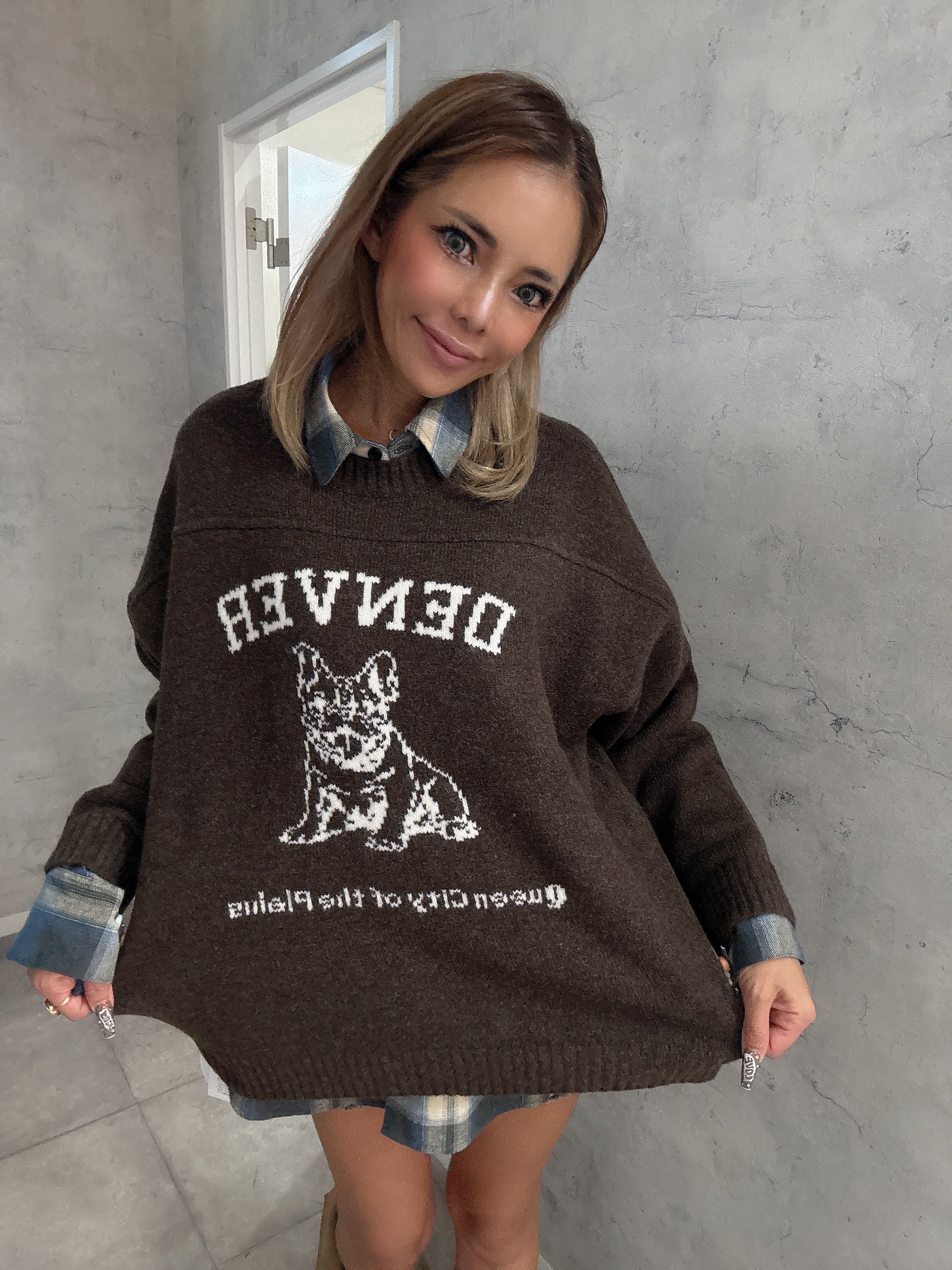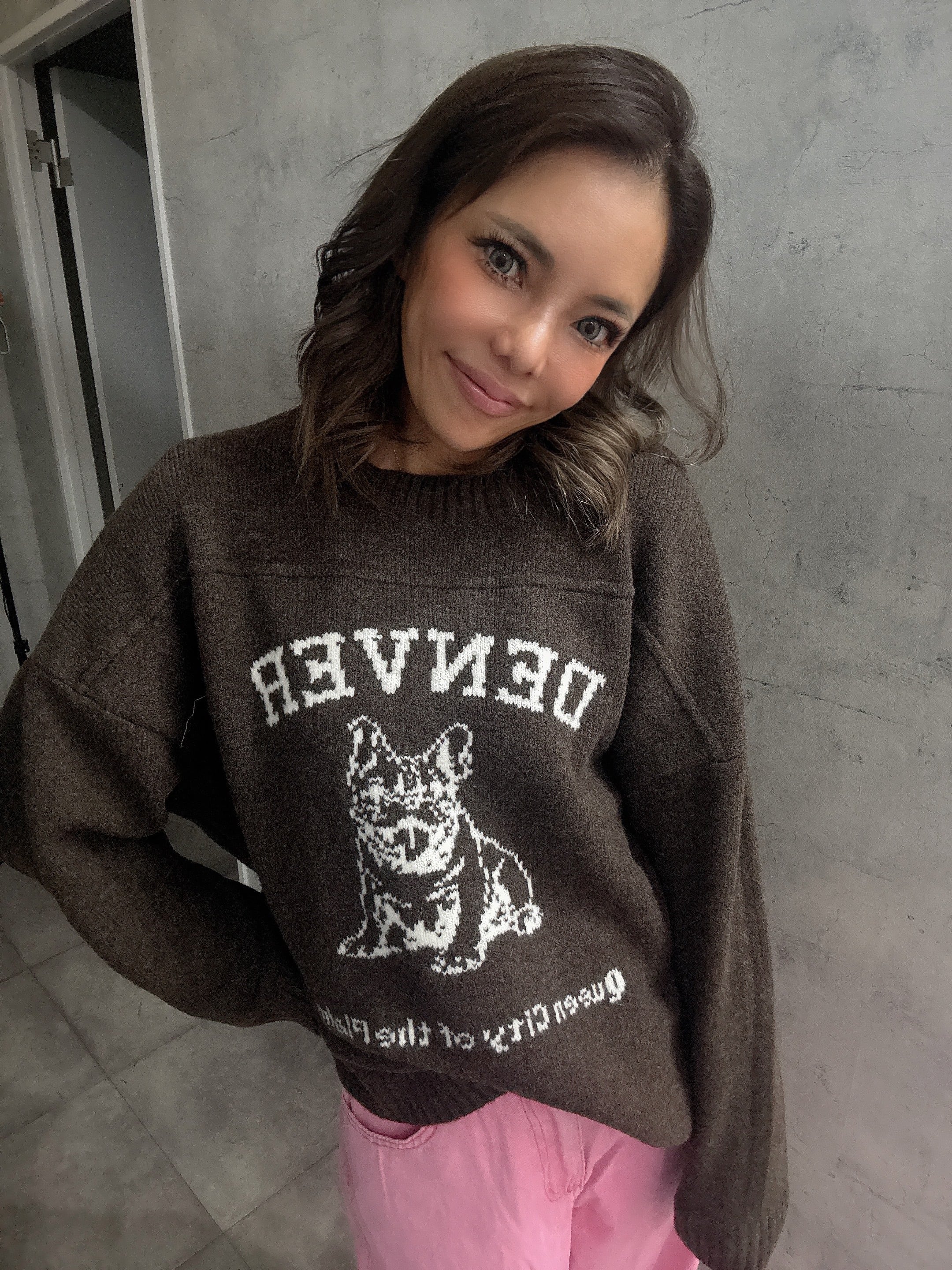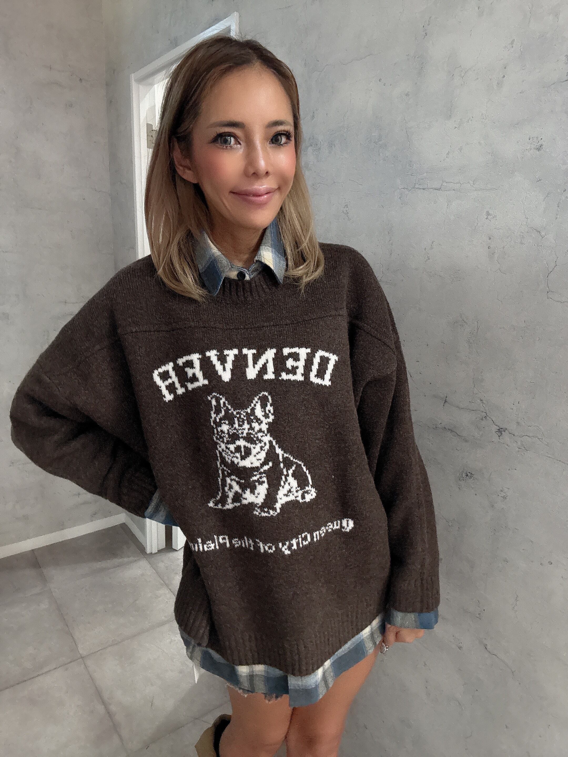 キャッチーで目を惹くフレンチブルドックのロゴが入った大人ニット。