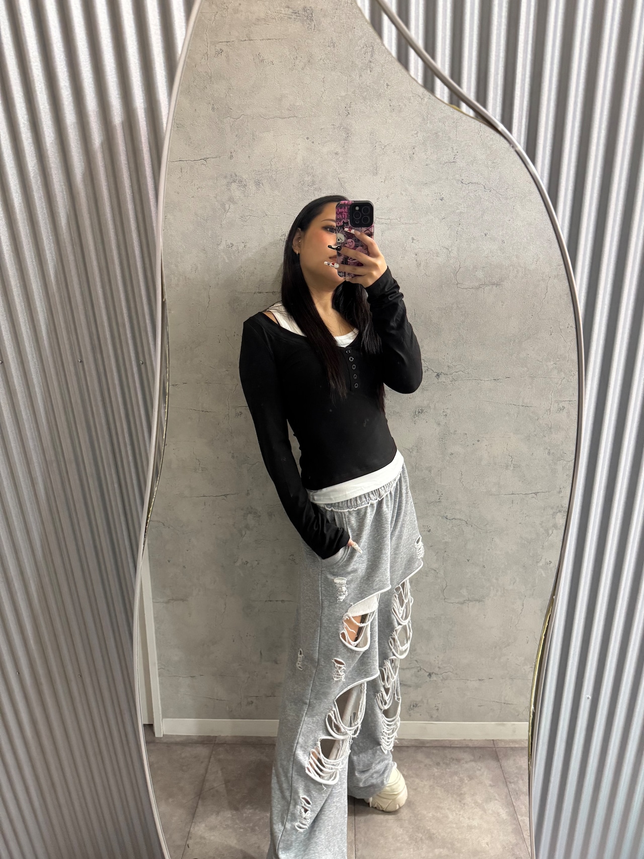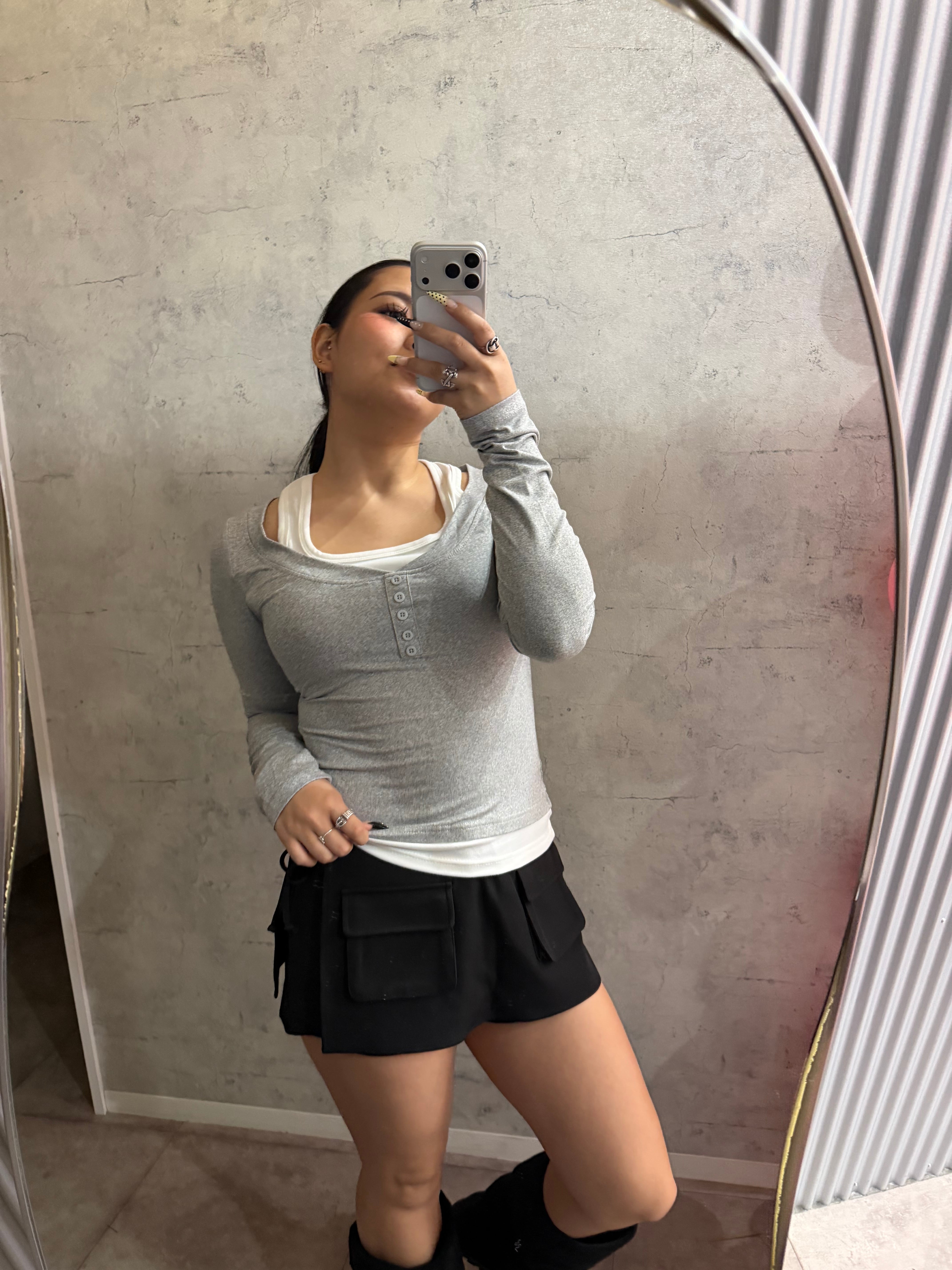 ラスト1着痩せ効果抜群激のび!レイヤード風カットソー
