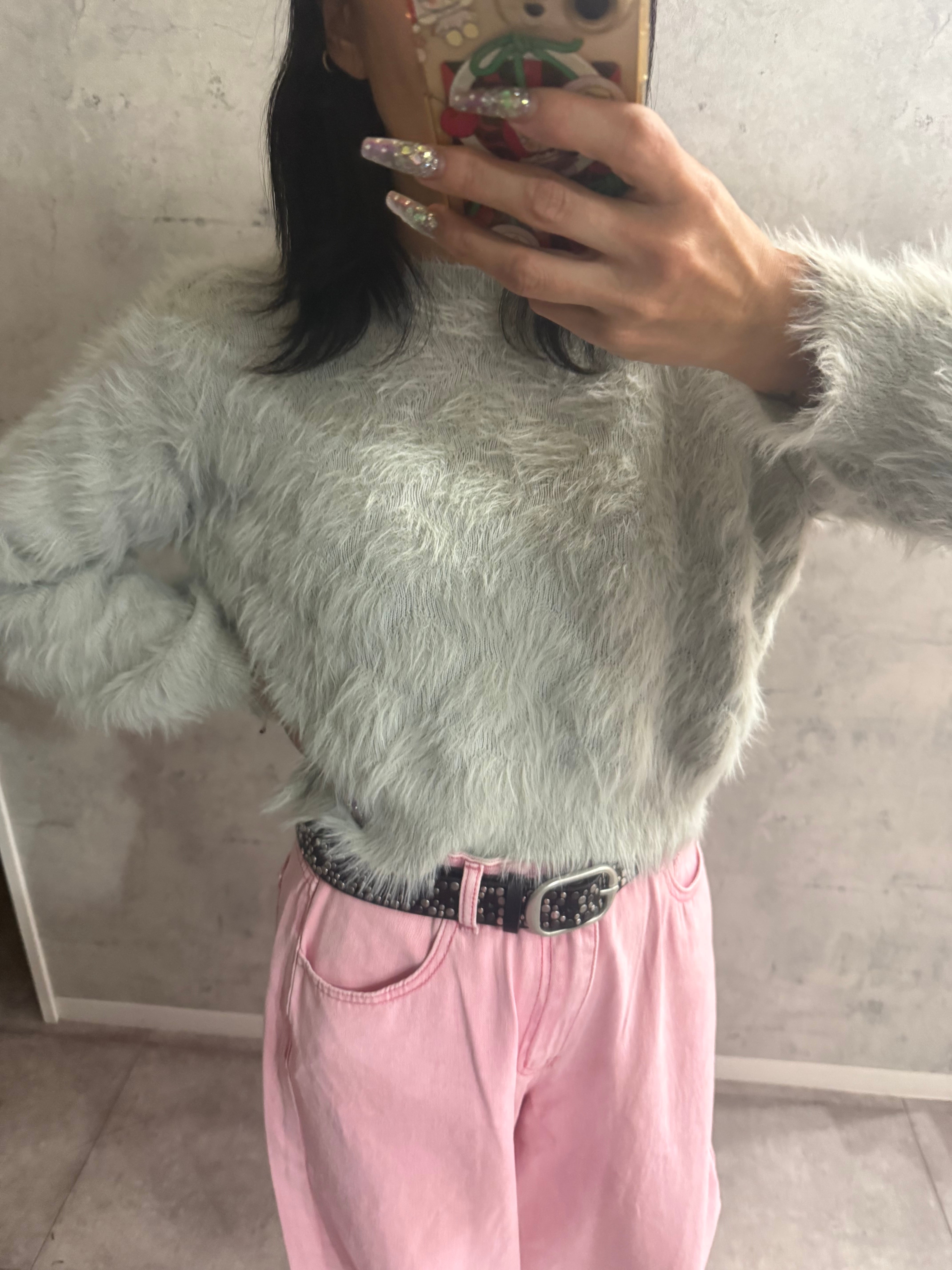 グレーラスト1キルティングフェザーニット