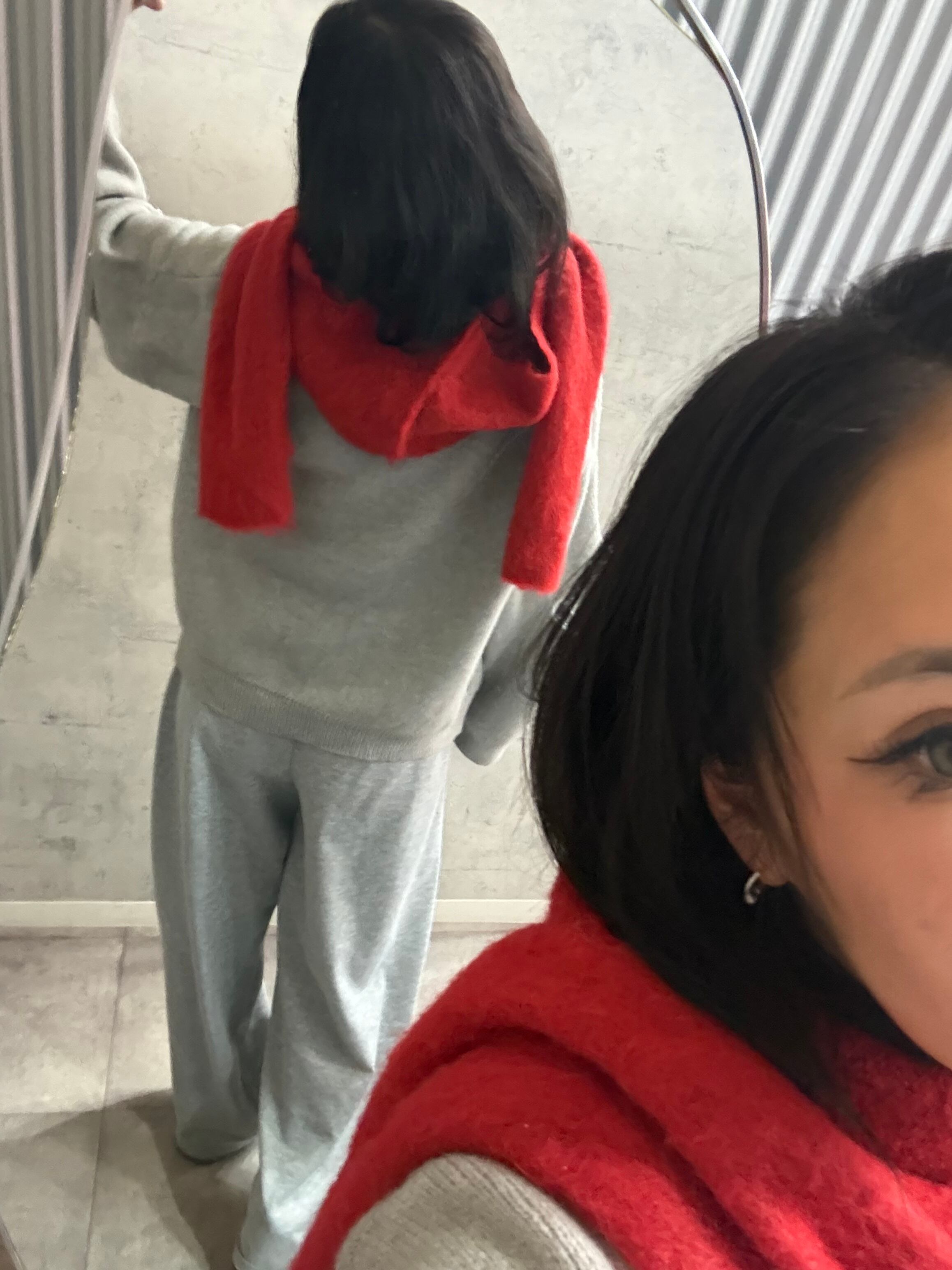 ※評判のモヘアタッチニットの風合いも魅力、程良いボリューム感のシルエット!フード付きマフラーがシンプルなトップスと合わせるだけで主役級の存在感を発揮します。!!