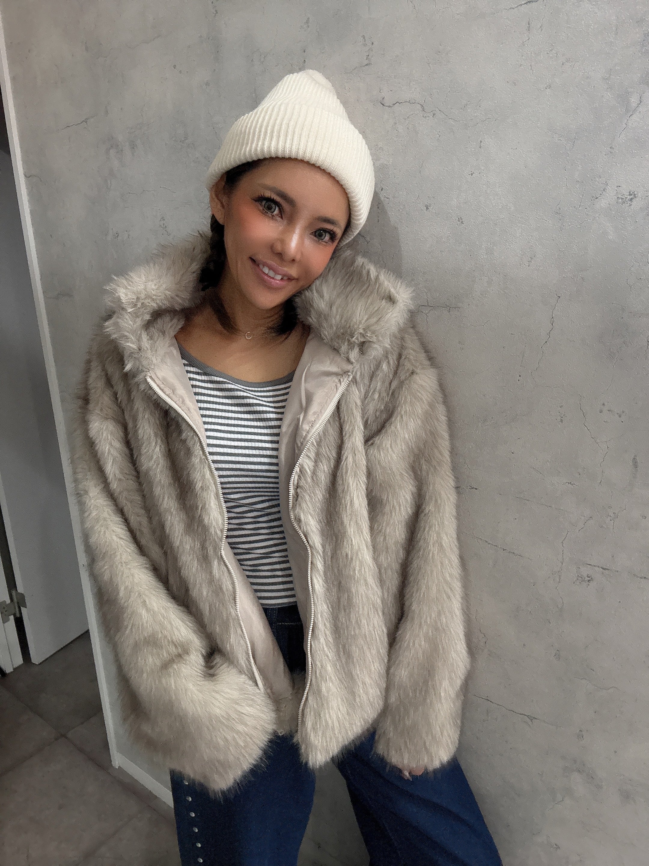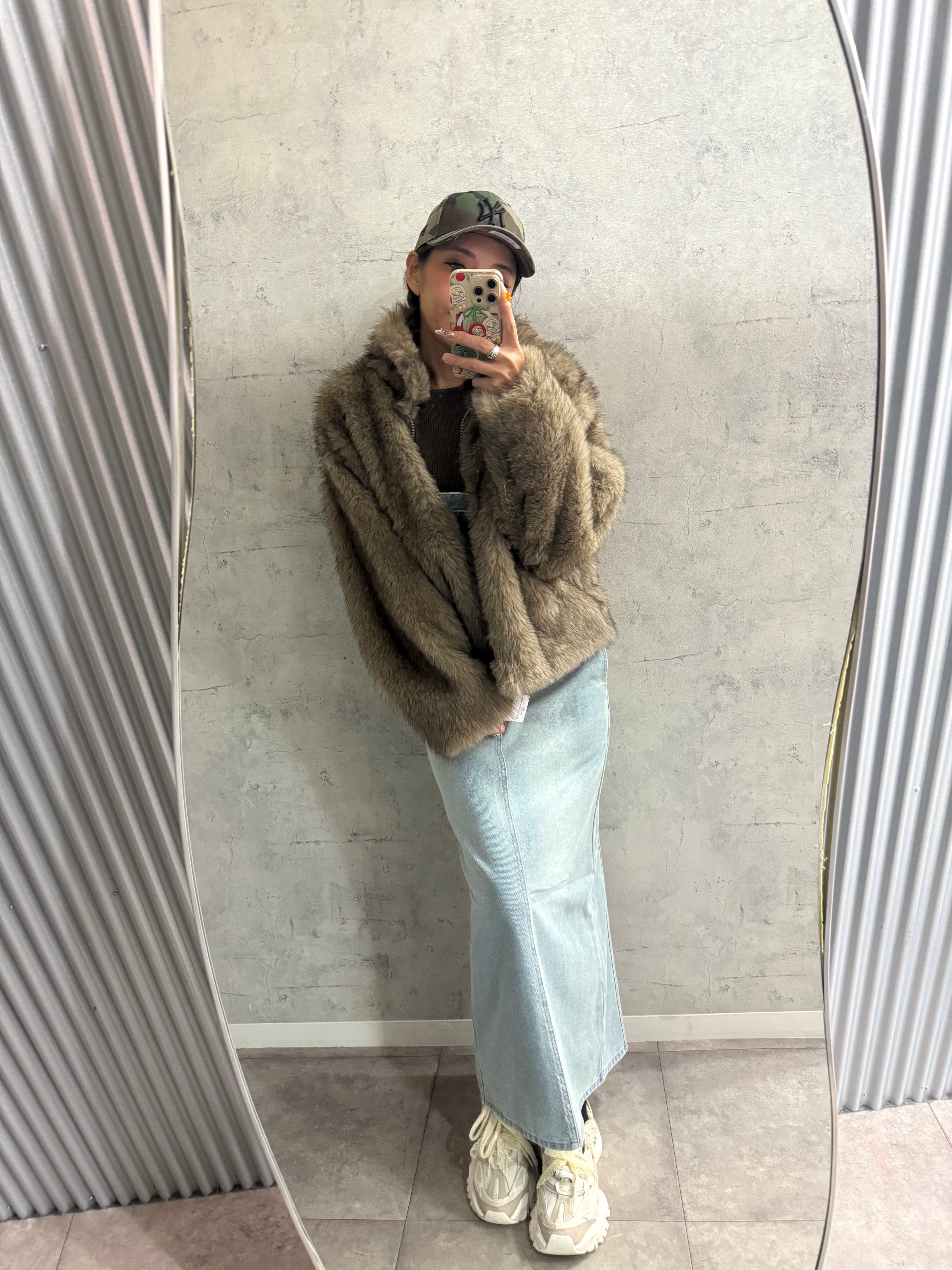 ふわふわシャギー素材でシーズンムードを高めるミドル丈コート