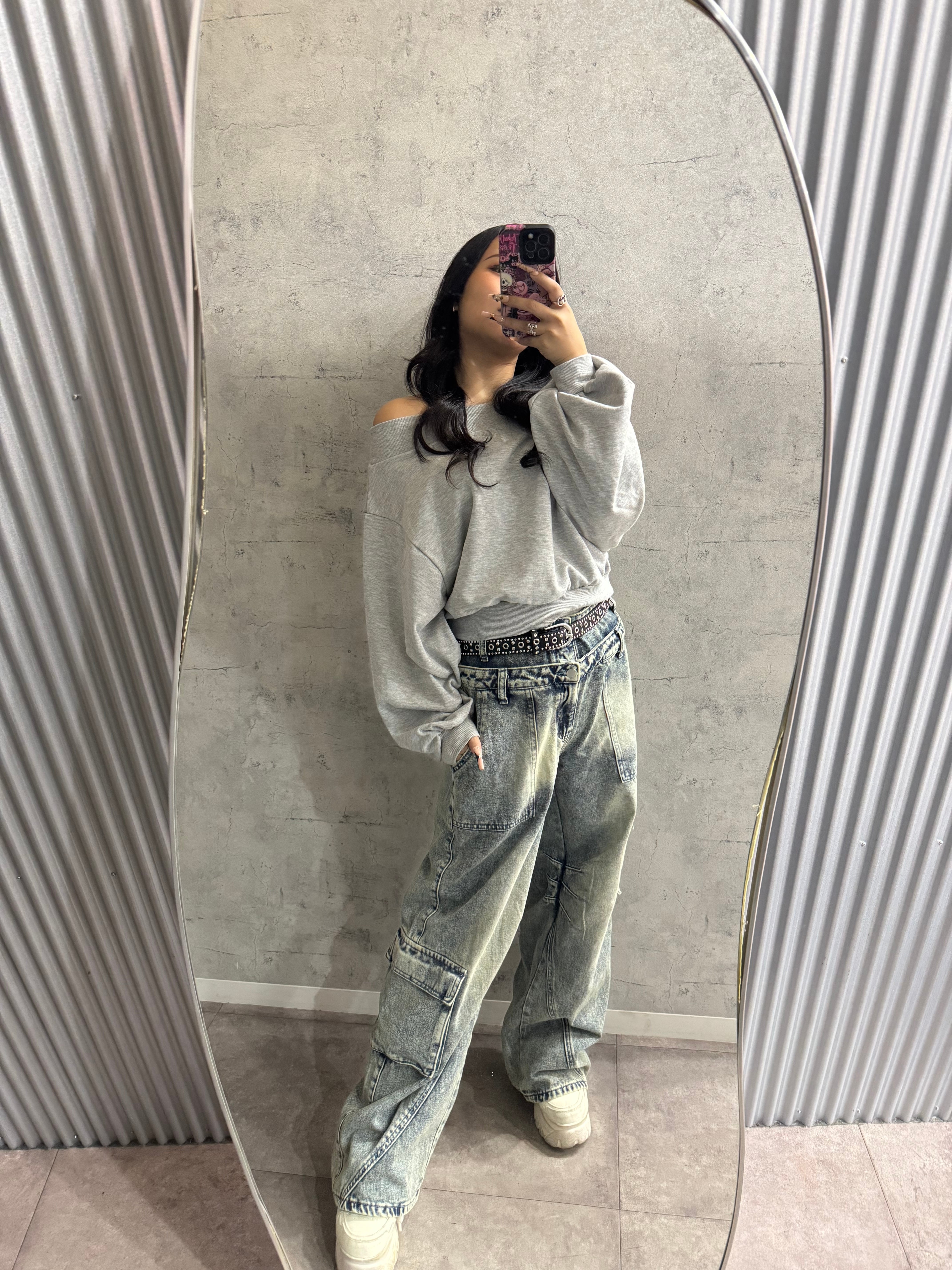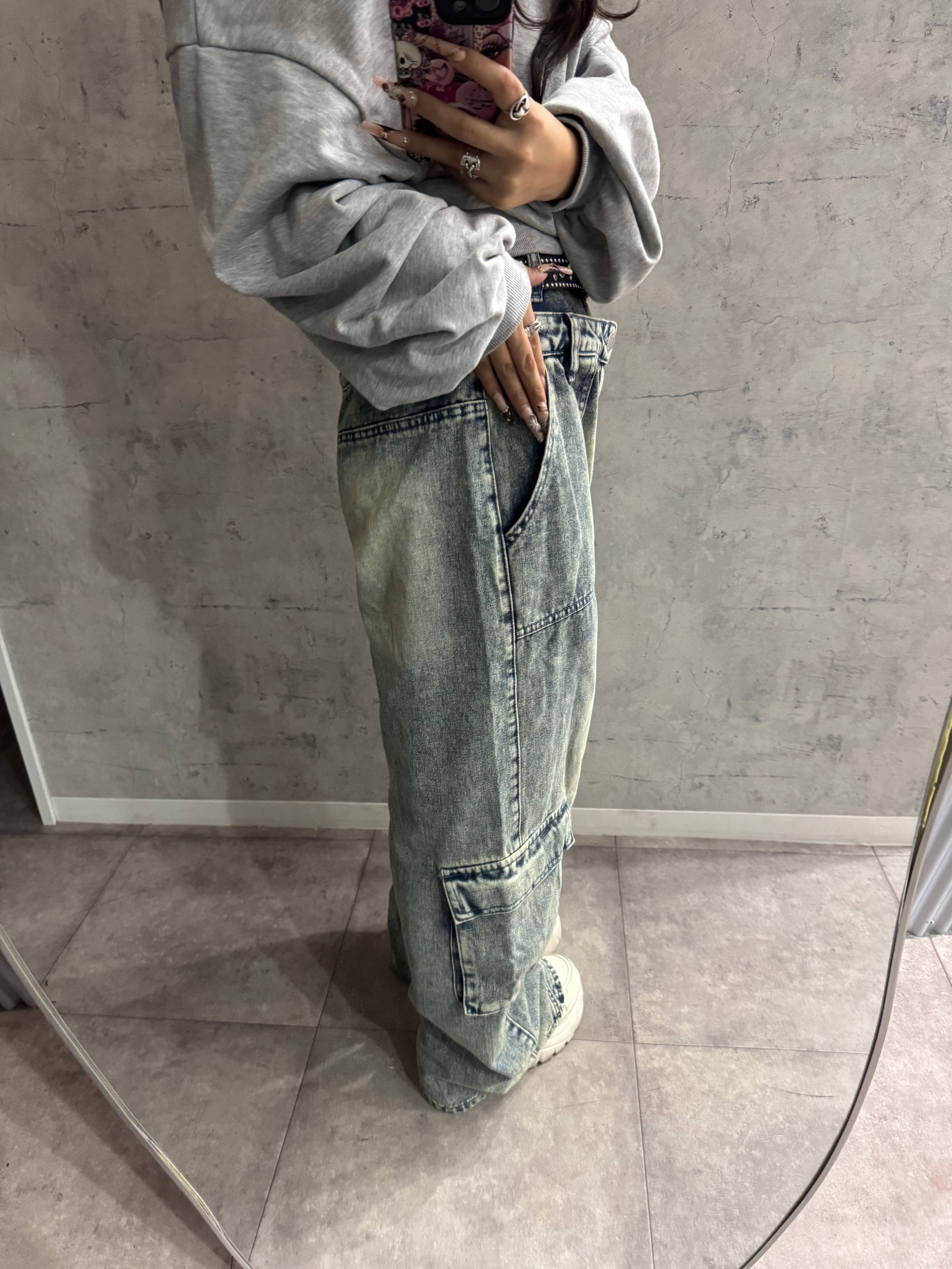 ダブルウエストカーゴワイドデニム