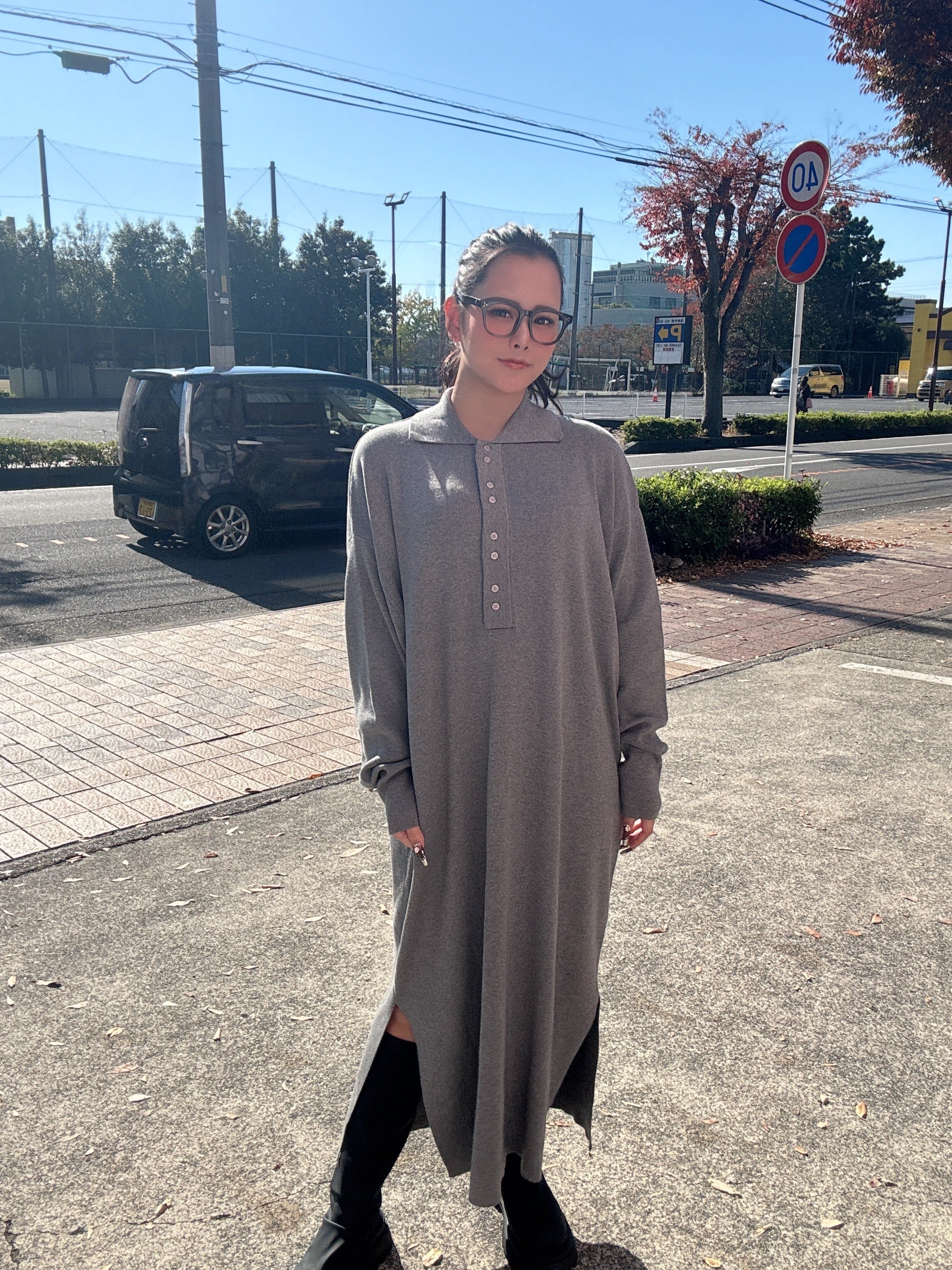 ニットワンピース / ポロワンピース / ロングワンピース / サイドスリット / 総針編み / カジュアルワンピース / 大人カジュアル / きれいめカジュアル / レイヤードワンピース / 秋冬ワンピース / ニットスタイル / シーズンアイテム