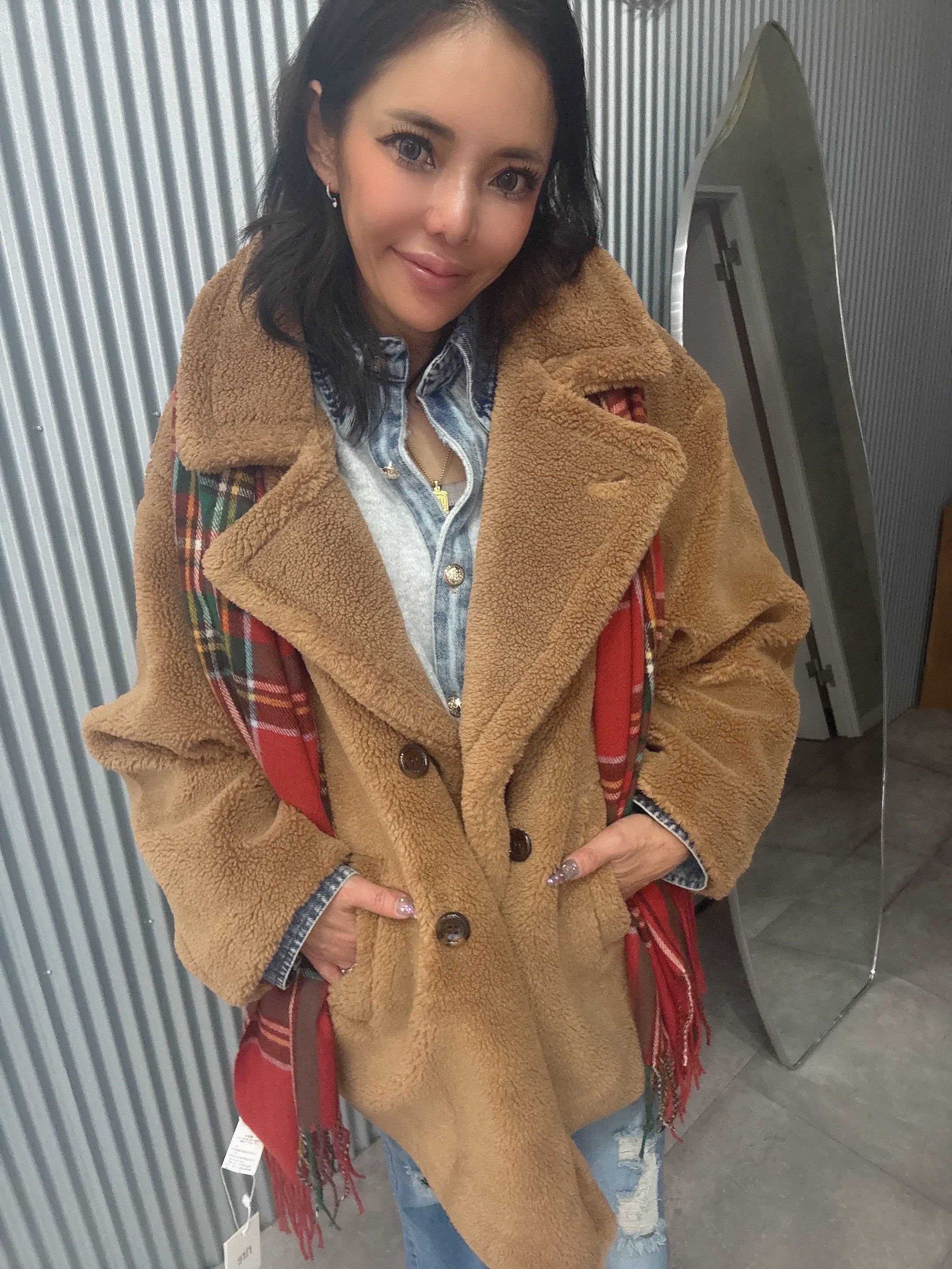 着丈58cm、身幅56cm、肩幅44cm、袖丈64cm、袖幅18.5cm、すそ周り96cm