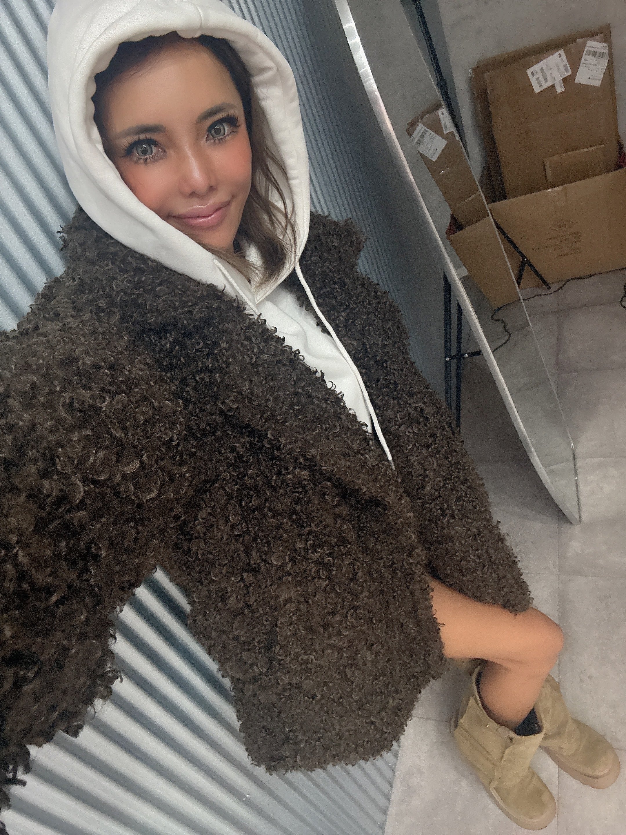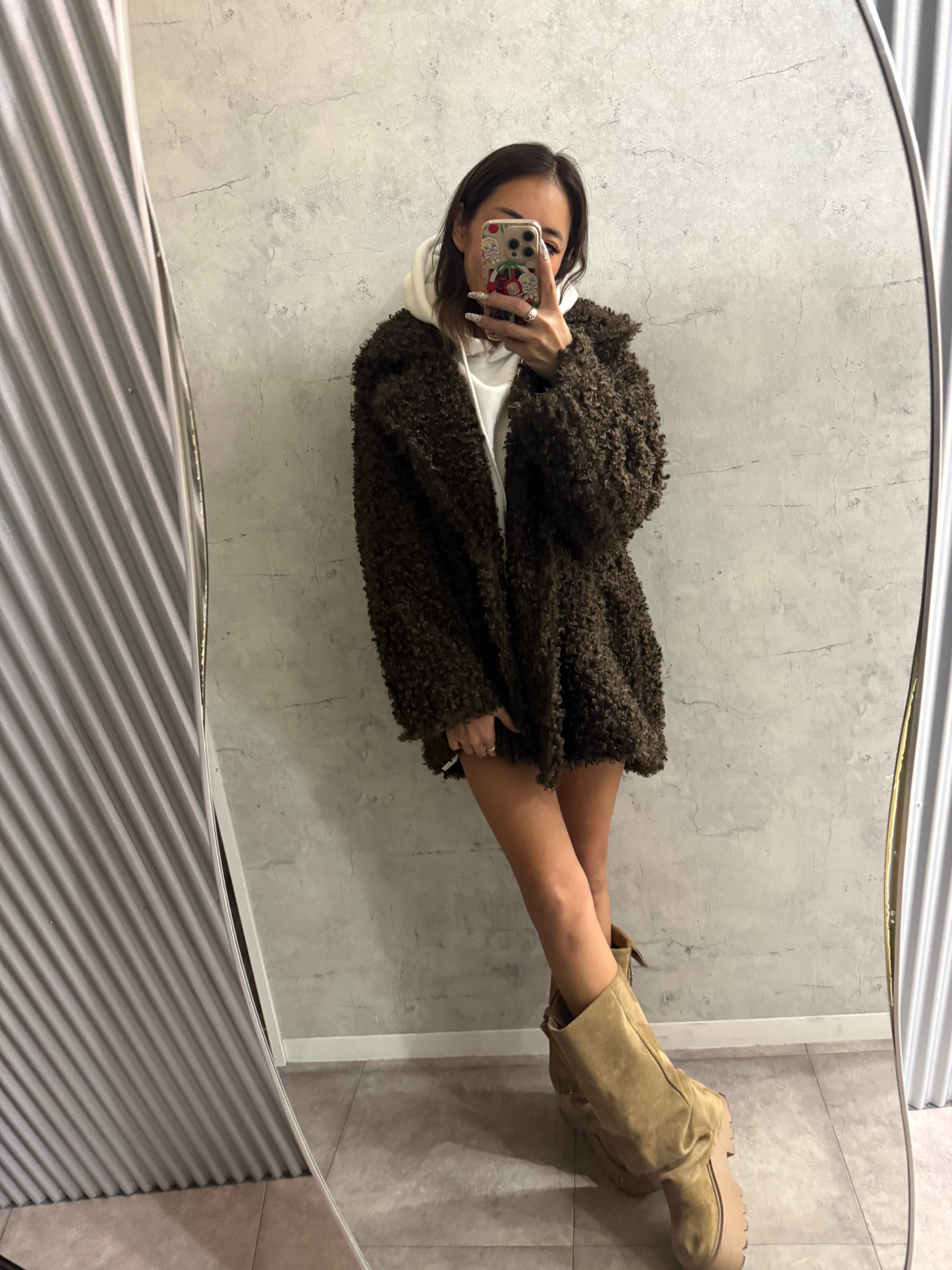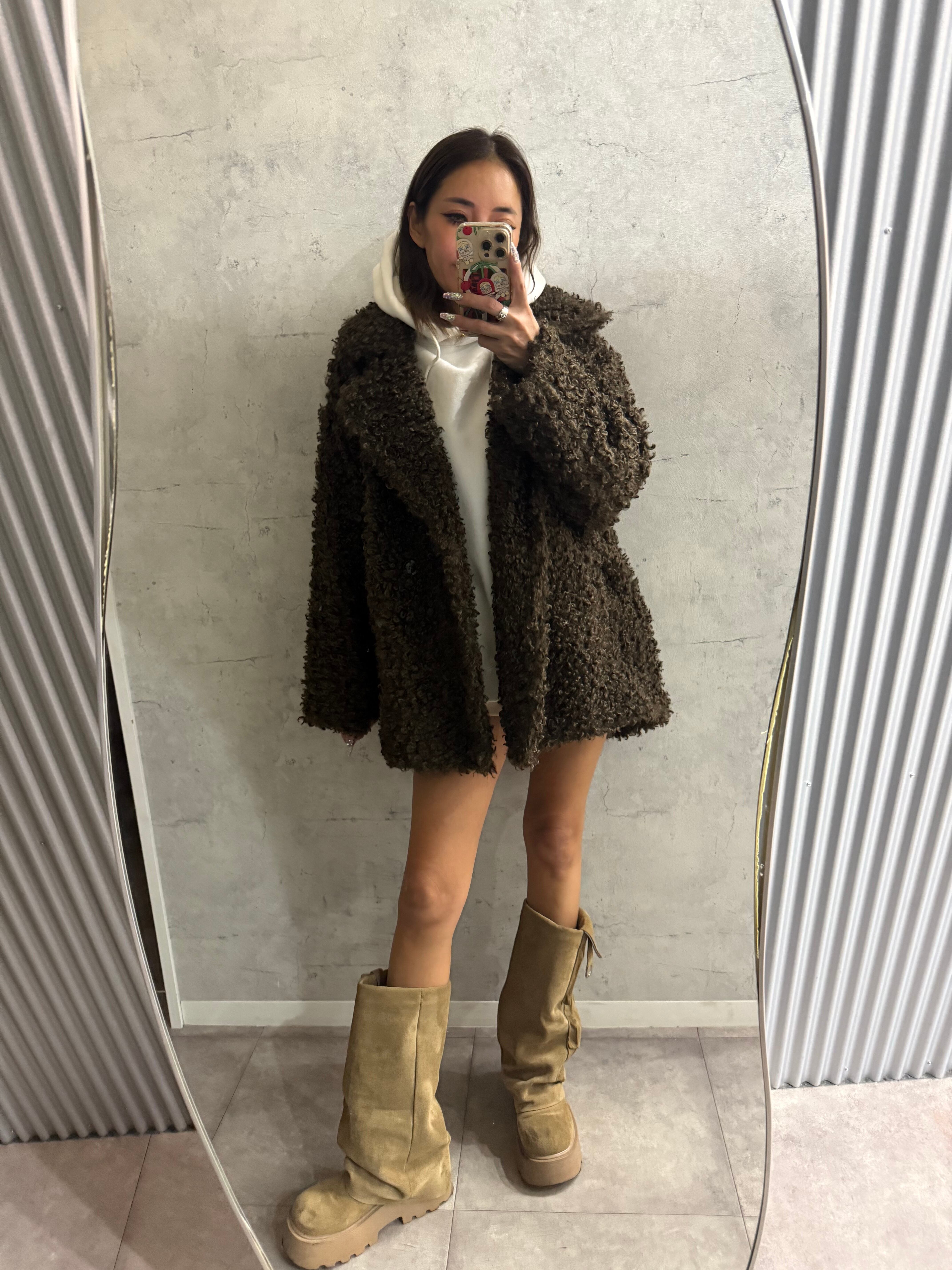 ふんわりとしたプードルファー素材が魅力のダブルコート