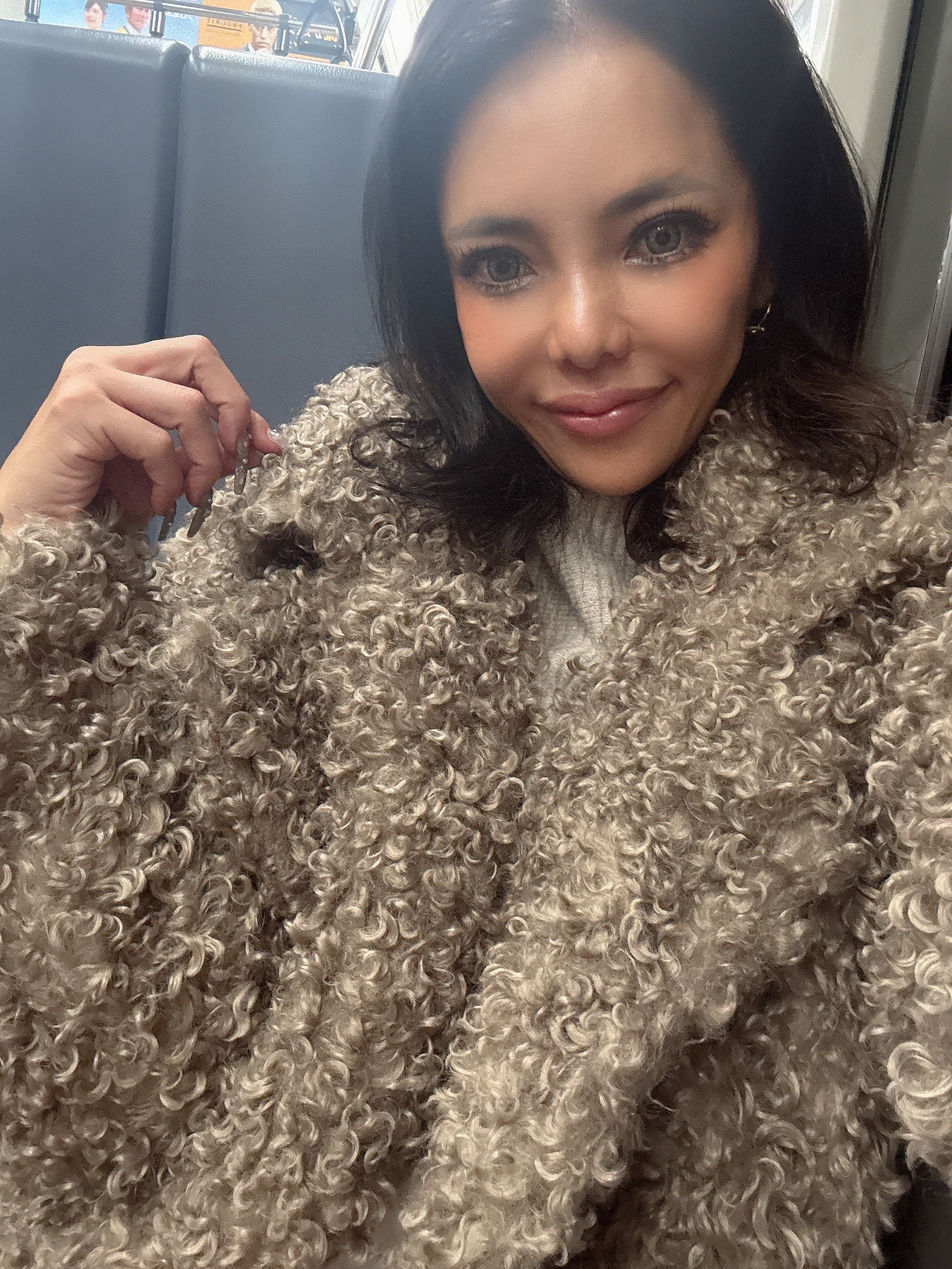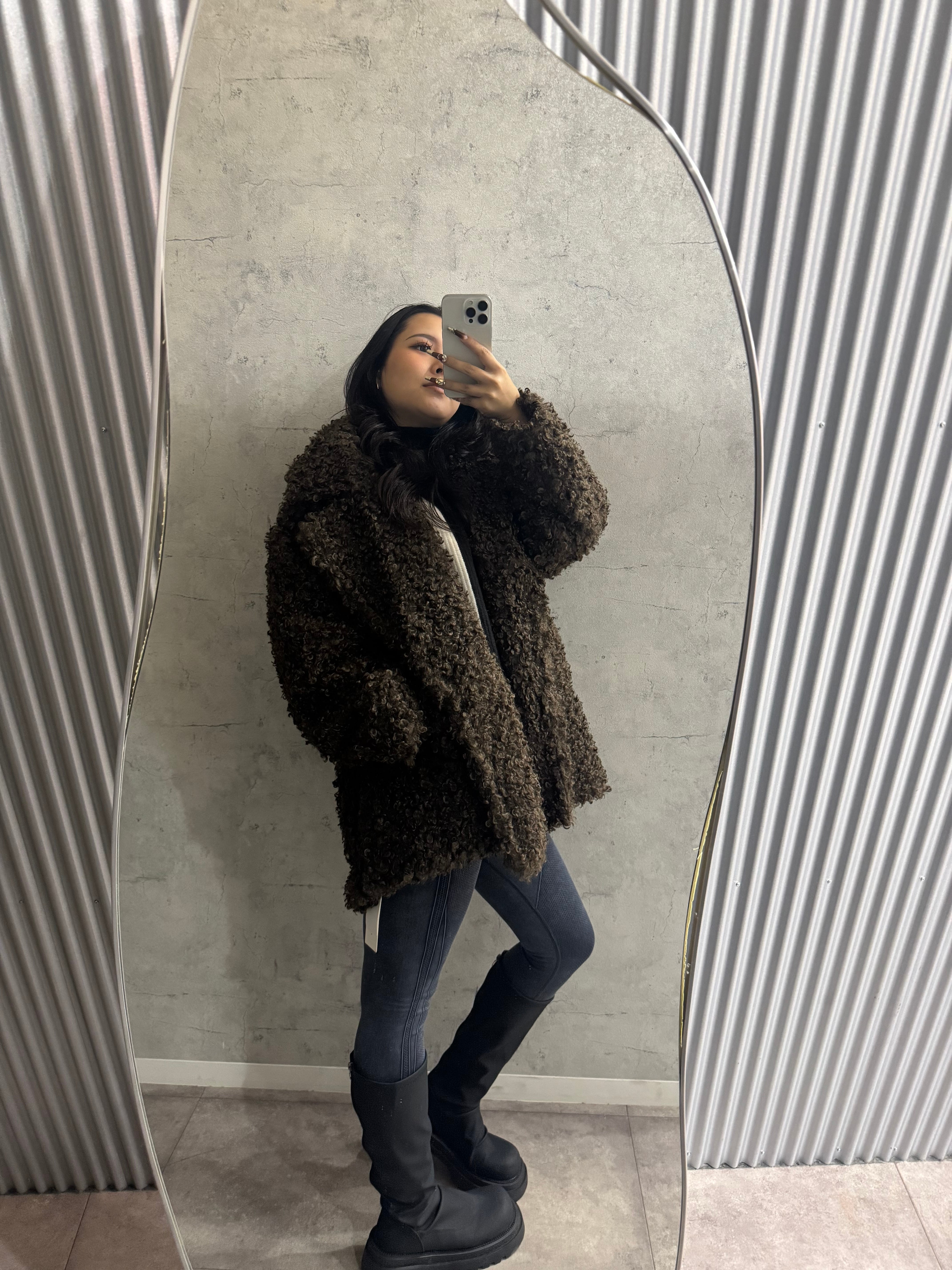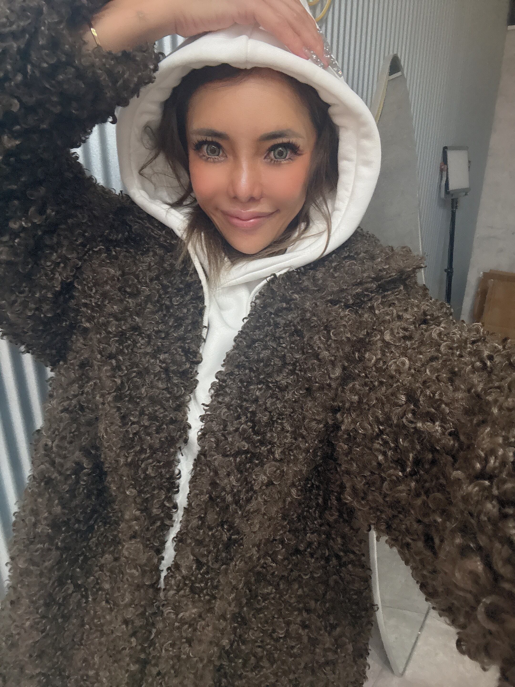 ふんわりとしたプードルファー素材が魅力のダブルコート