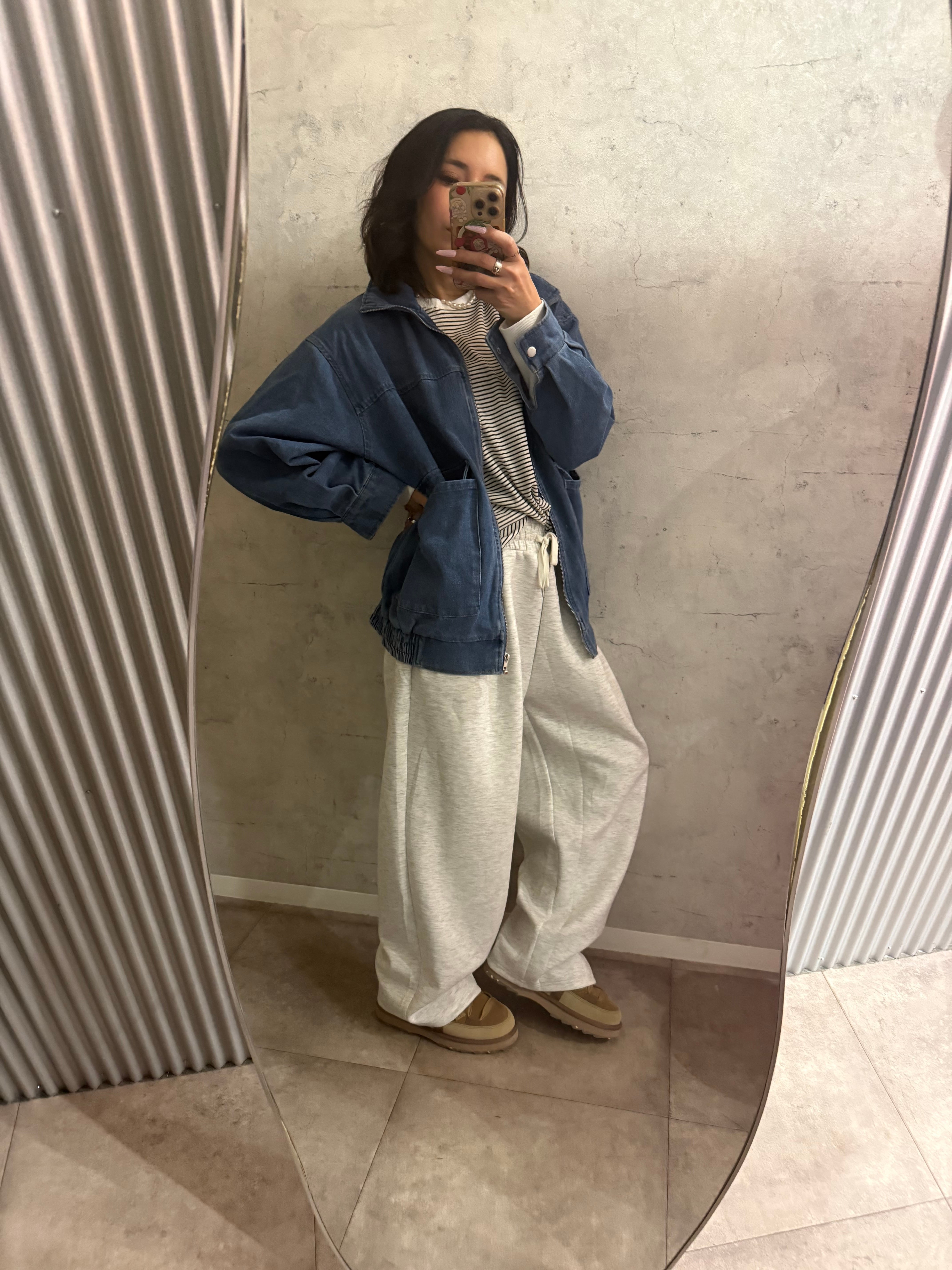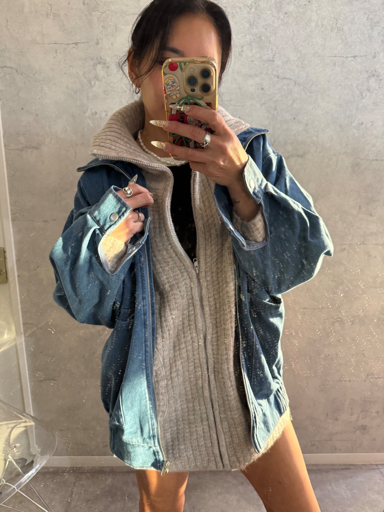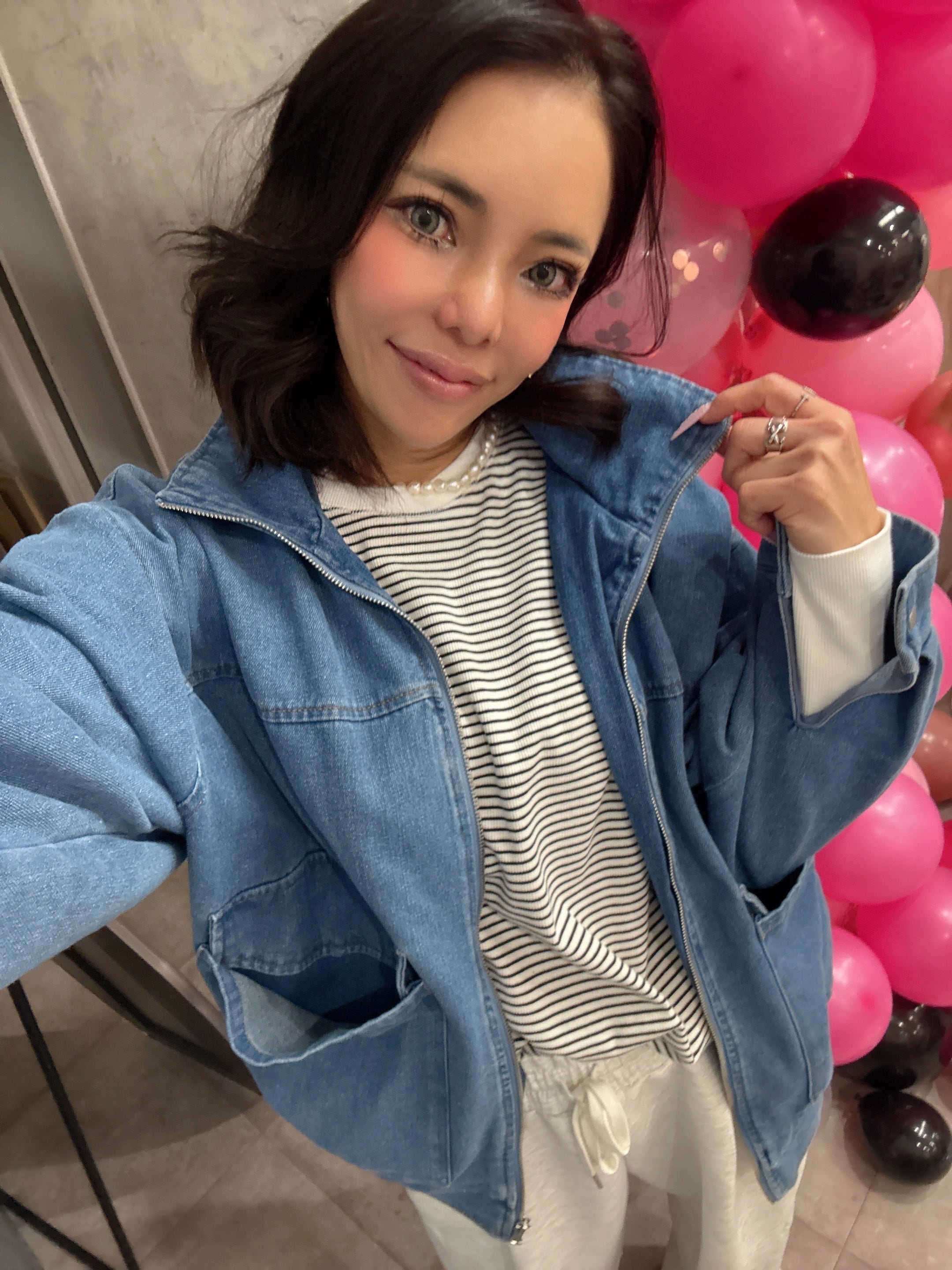 ● メンズライクなスタンドネックが目を惹くデニムジャケット