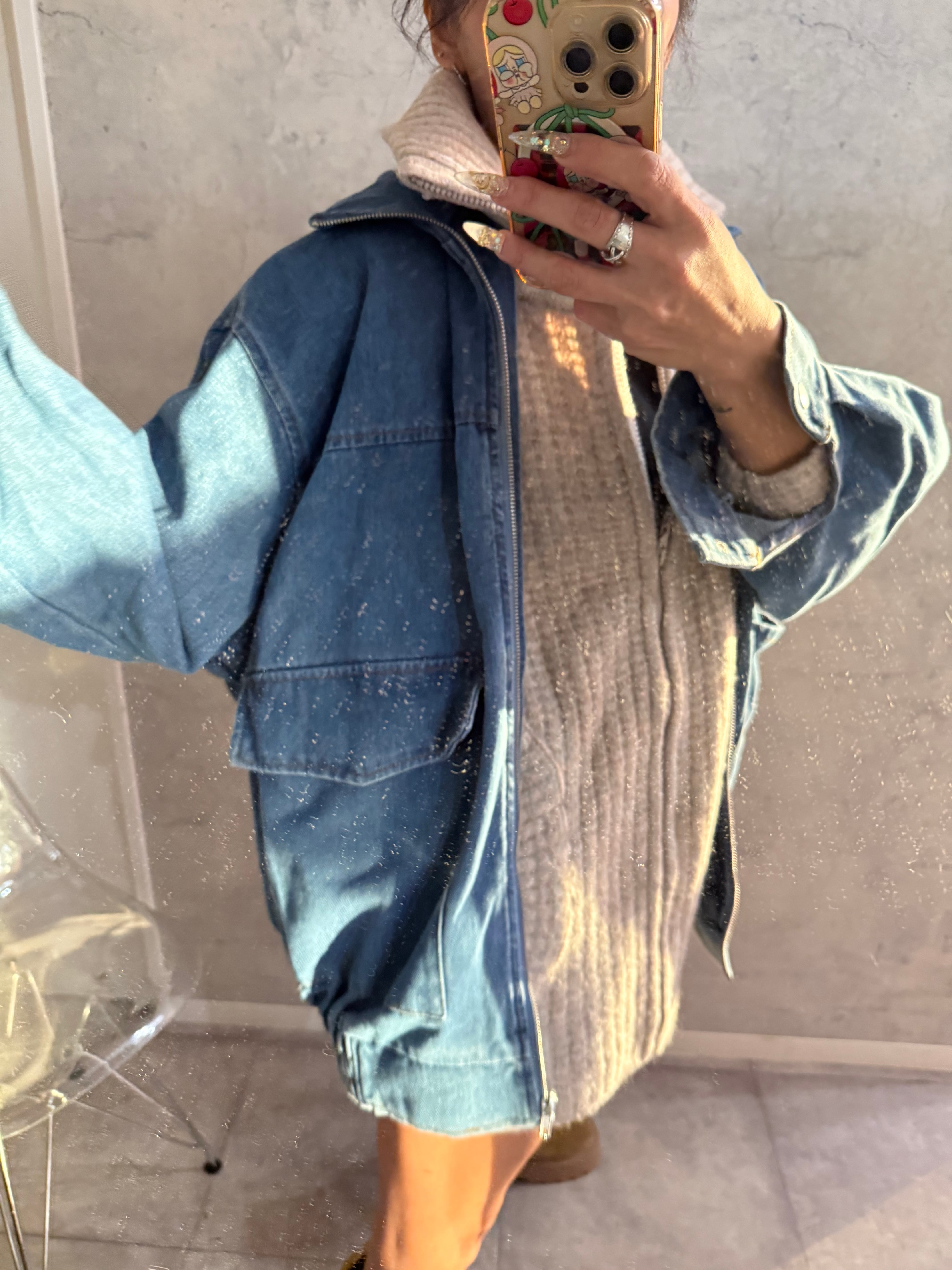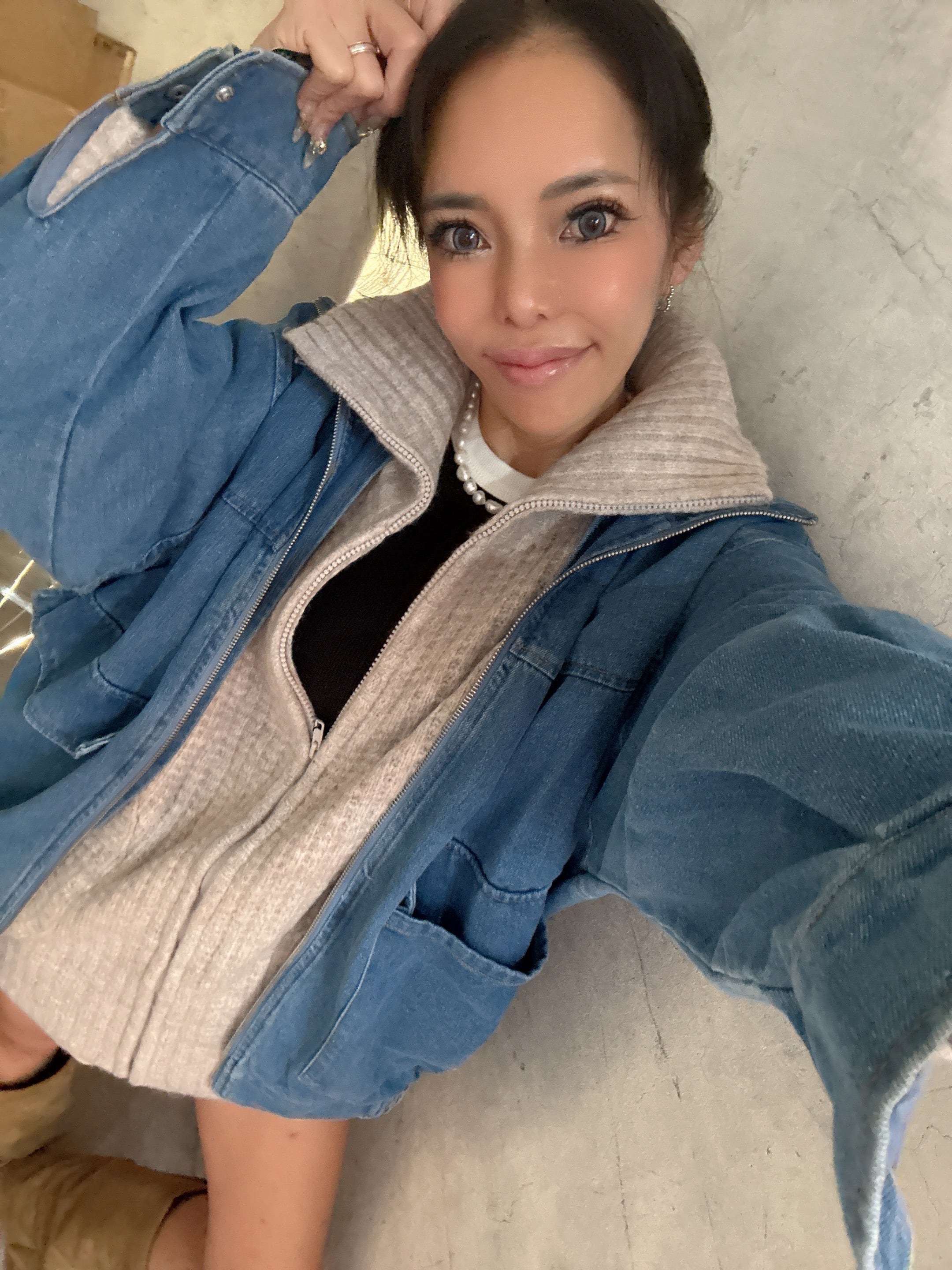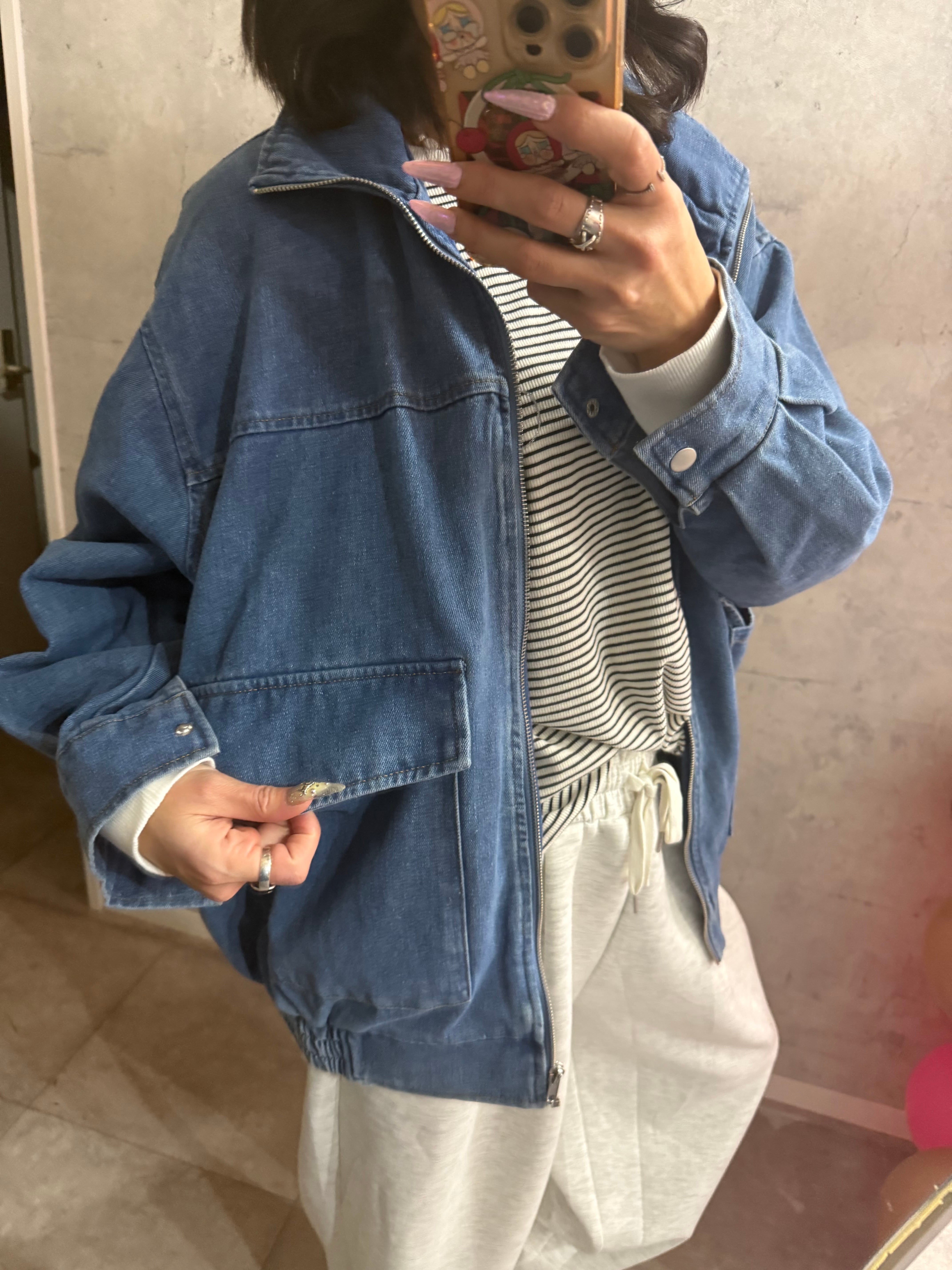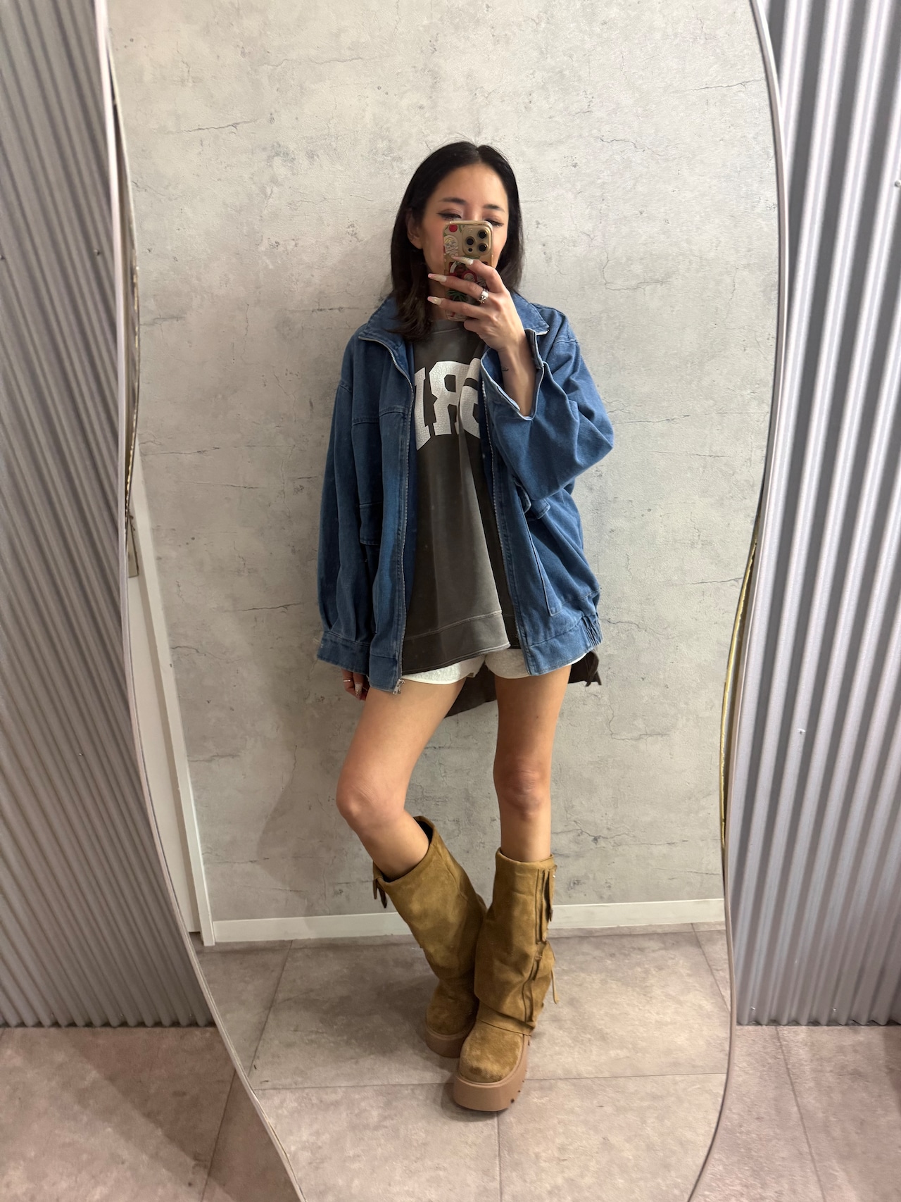 ● メンズライクなスタンドネックが目を惹くデニムジャケット