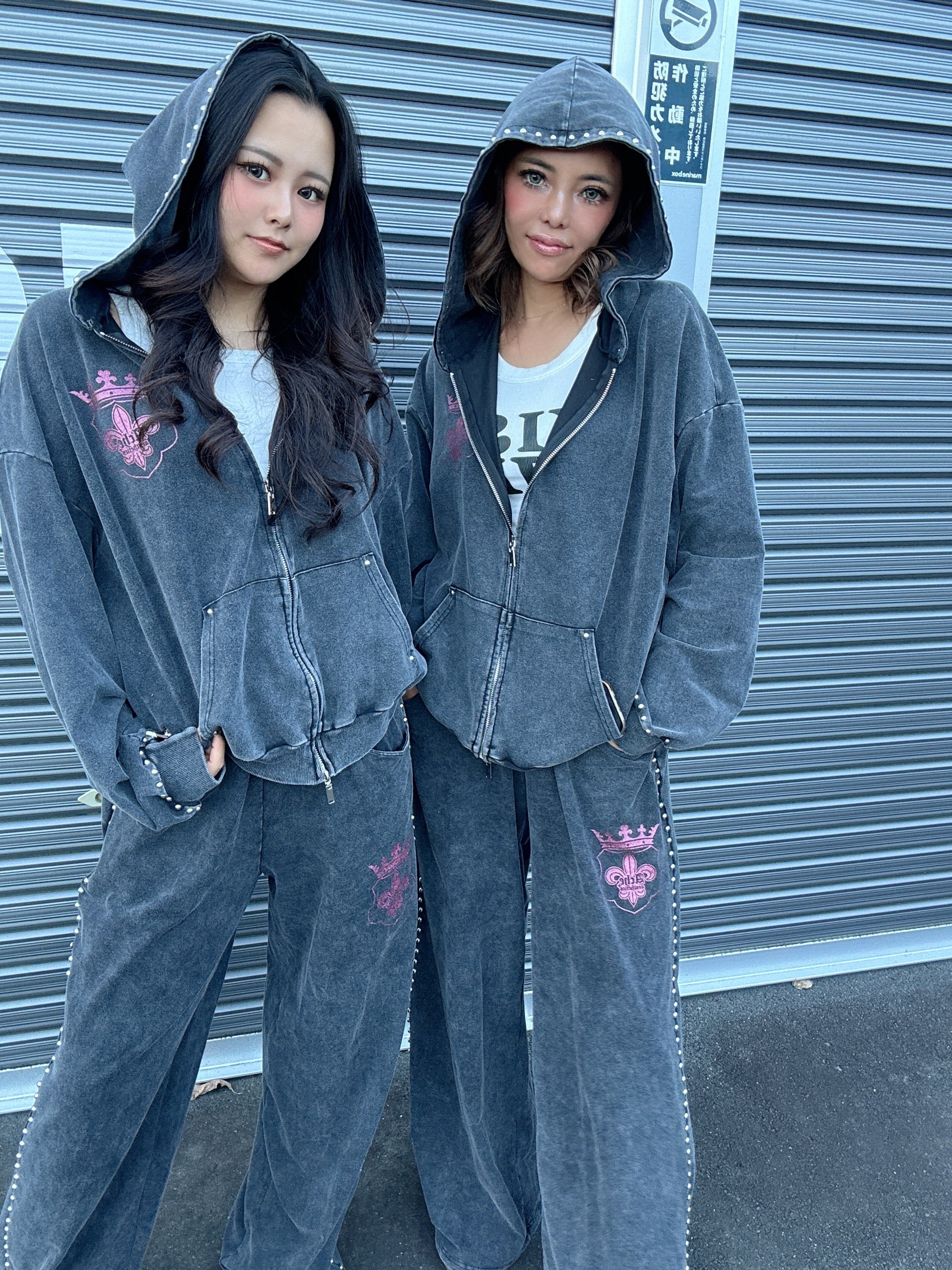 Ache オリジナルスタッズZIPパーカーセットアップ