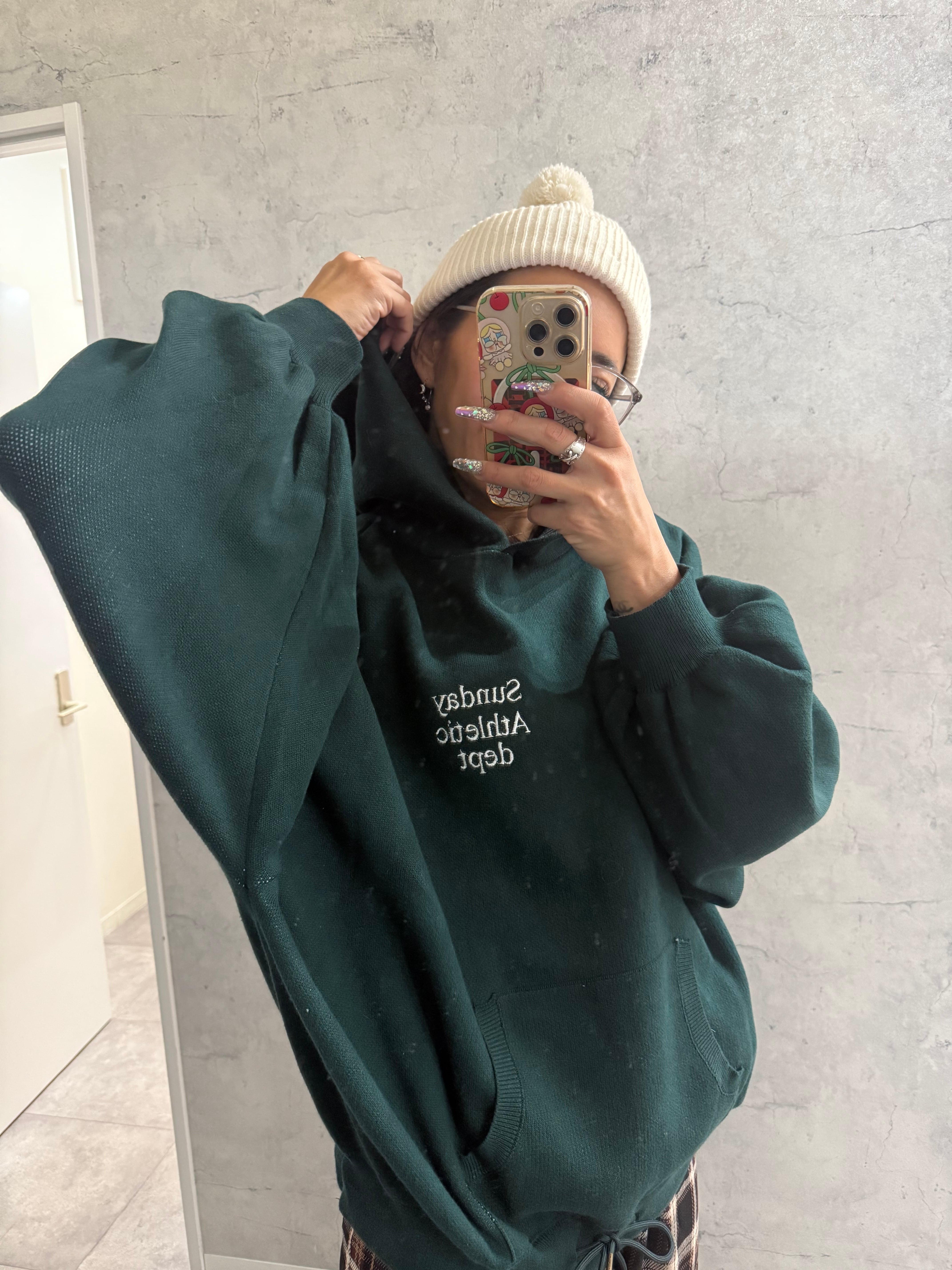 アメリカンヴィンテージのスポーツパーカーを彷彿とさせるルックスに、現代的なオーバーサイズバランスと都会的なディテールを掛け合わせたデザイン。フロントはシンプルにまとめることで、バックロゴのインパクトがより際立ちます。厚手のニットながら軽量で、肩の可動域を妨げないゆとりのある設計により、デイリーユースはもちろん、長時間の外出や旅行、軽いアクティビティシーンにも対応。秋冬のレイヤードスタイルの主役として活躍すること間違いなしの一着です。