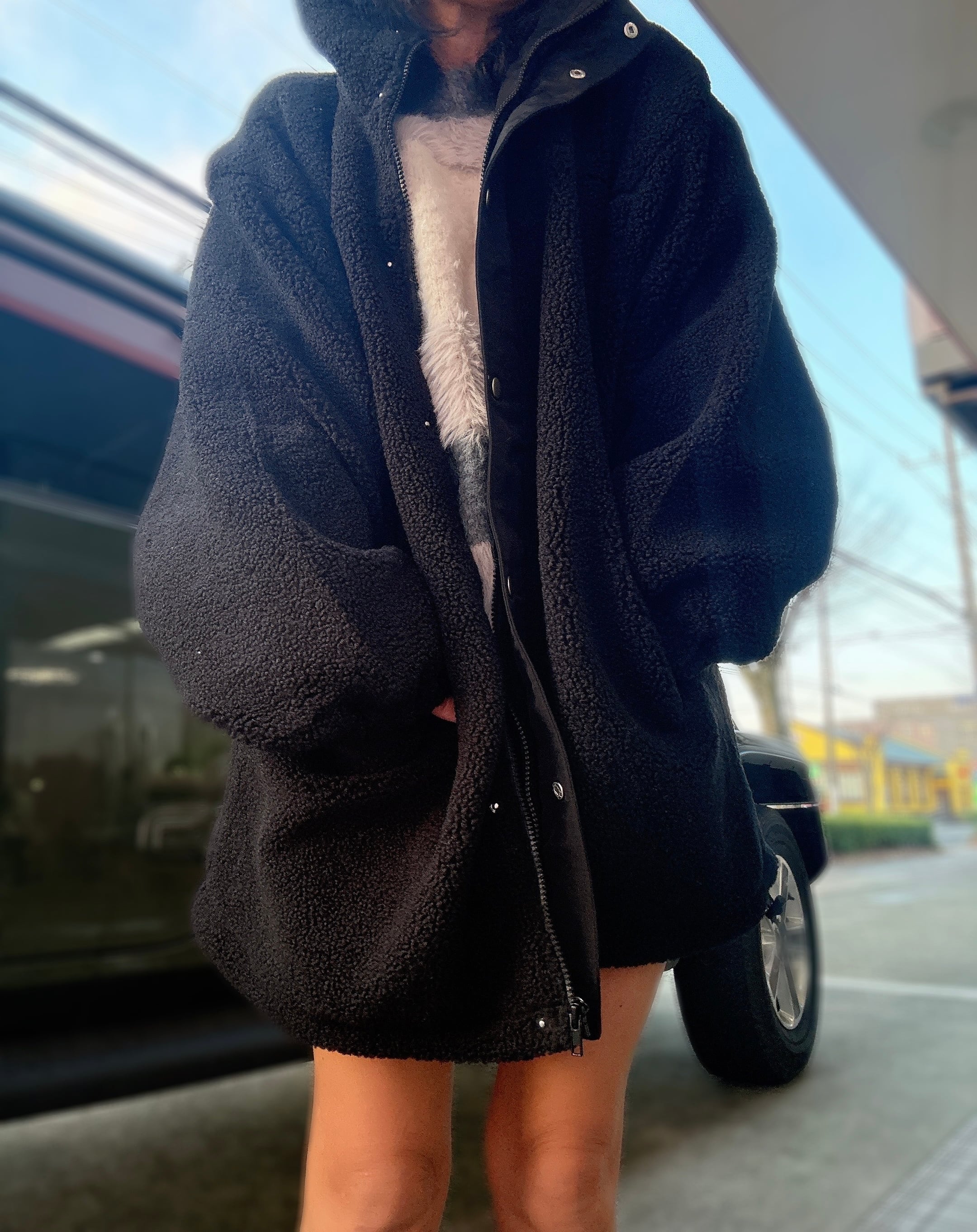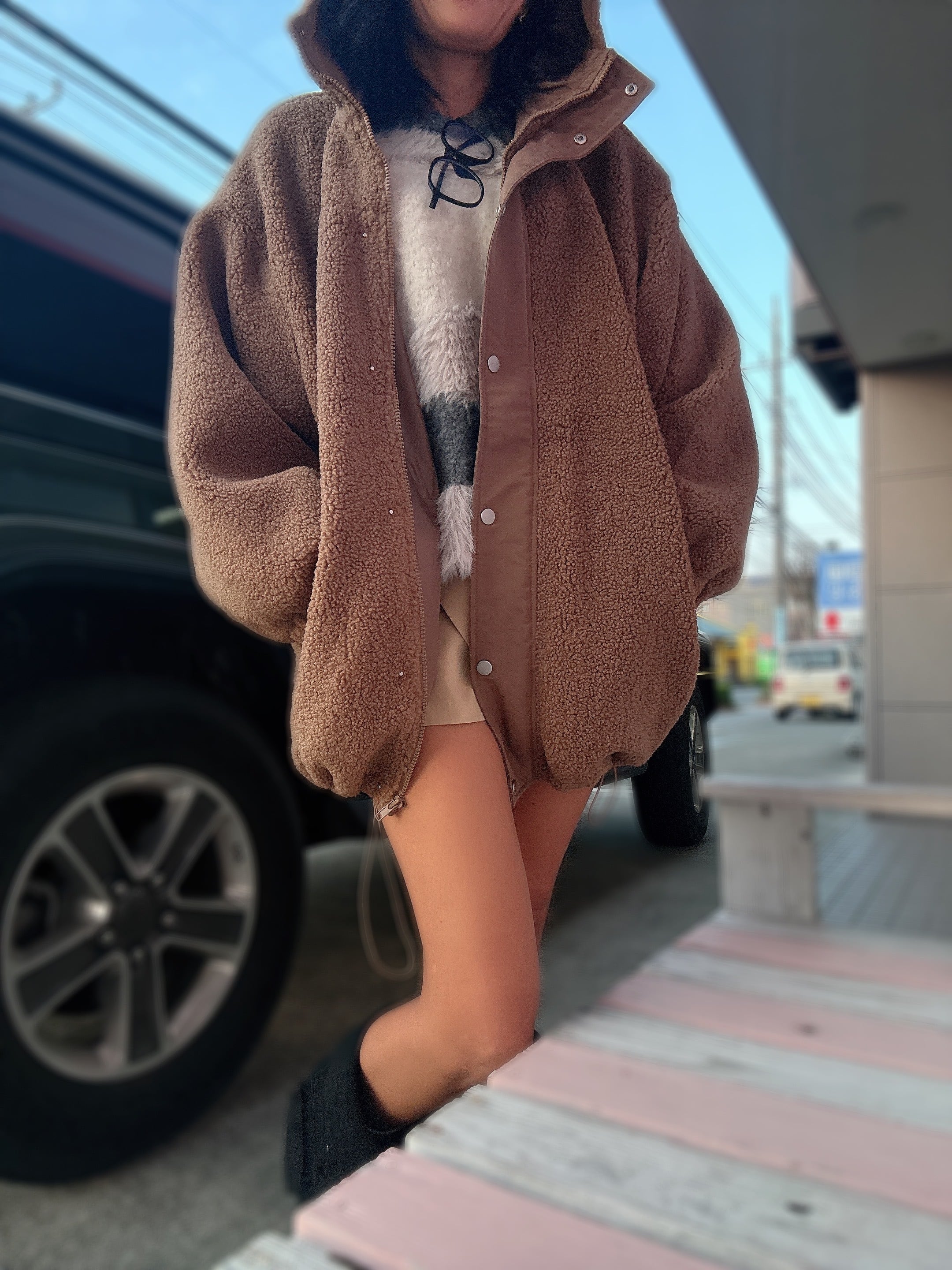 ふわもこ感がたまらない。軽くて暖かいビッグシルエットフード付きボアブルゾン アウター ボア