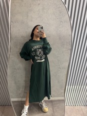 活躍するロングワンピース。空気紡績によって作られた糸が生み出す