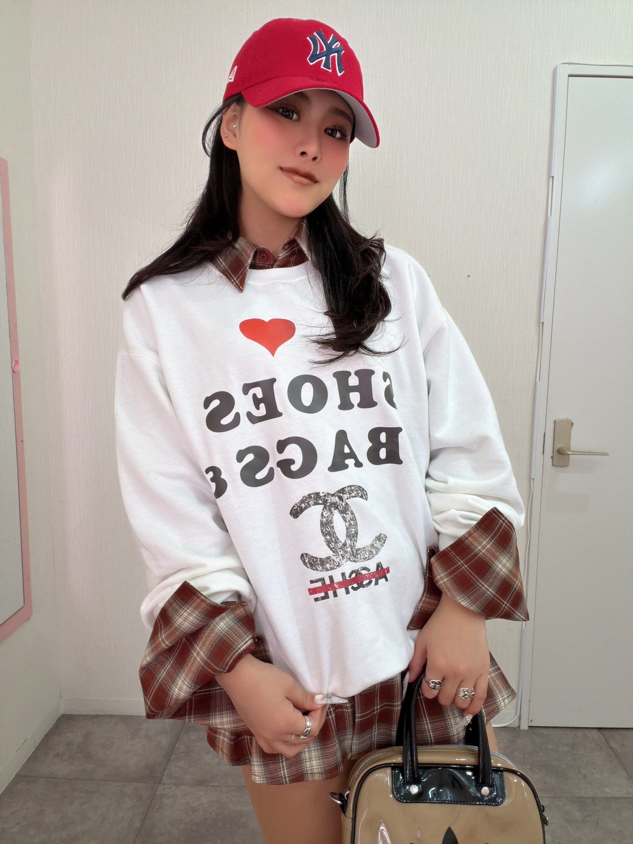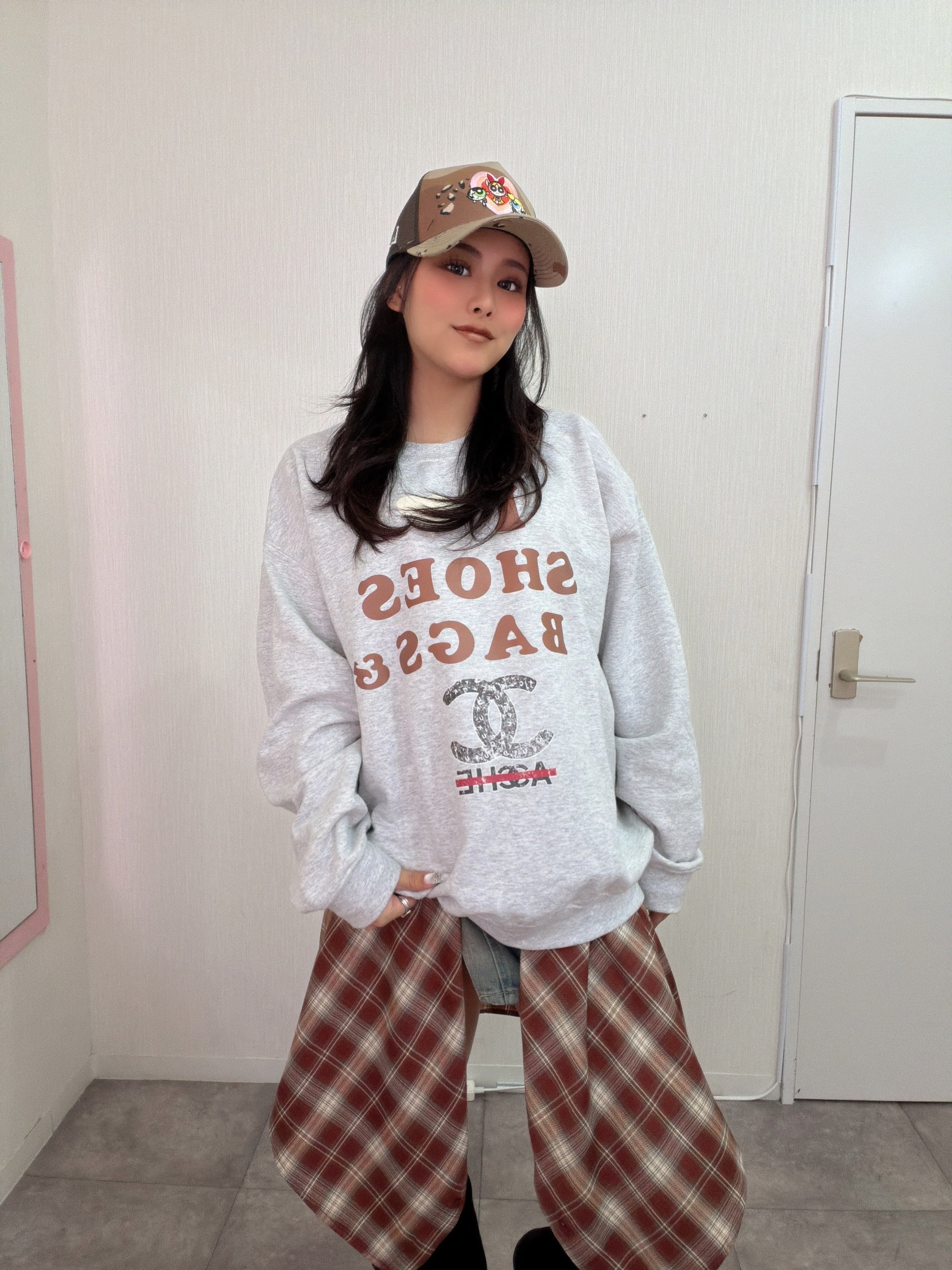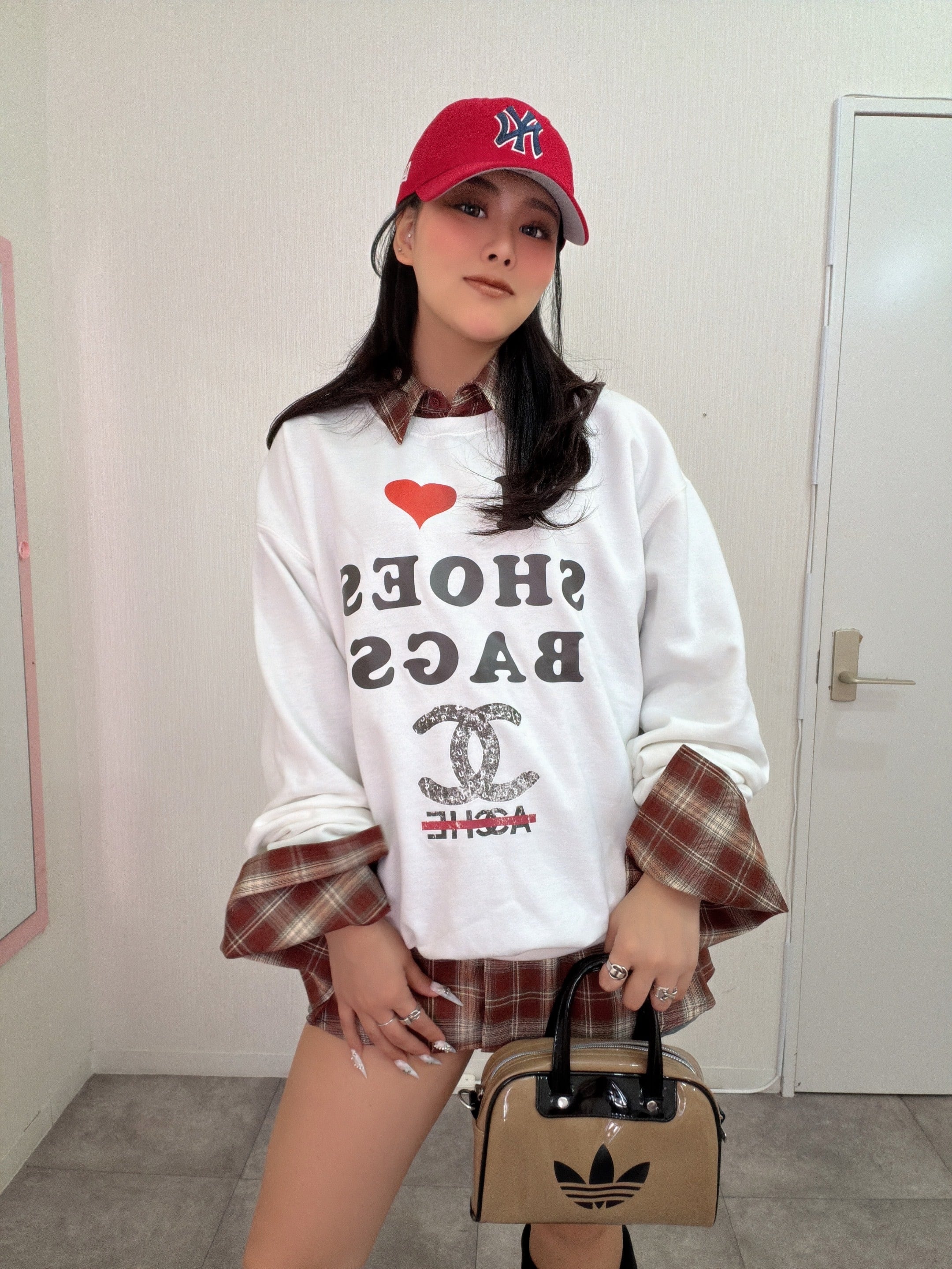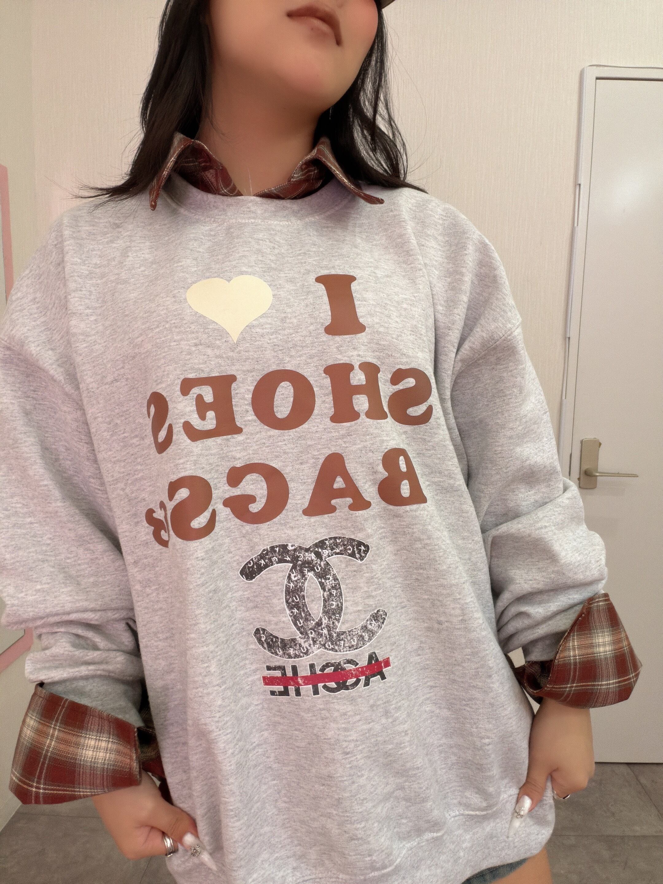 オリジナル ILOVE柄 クルースウェット×チェックシャツ