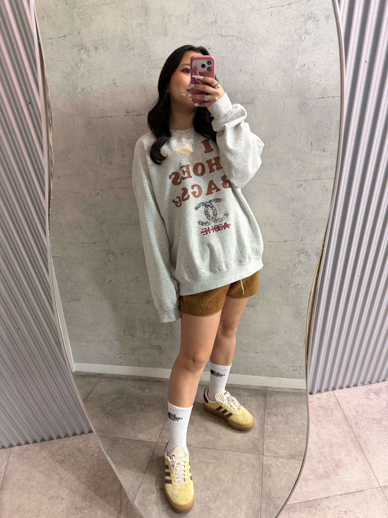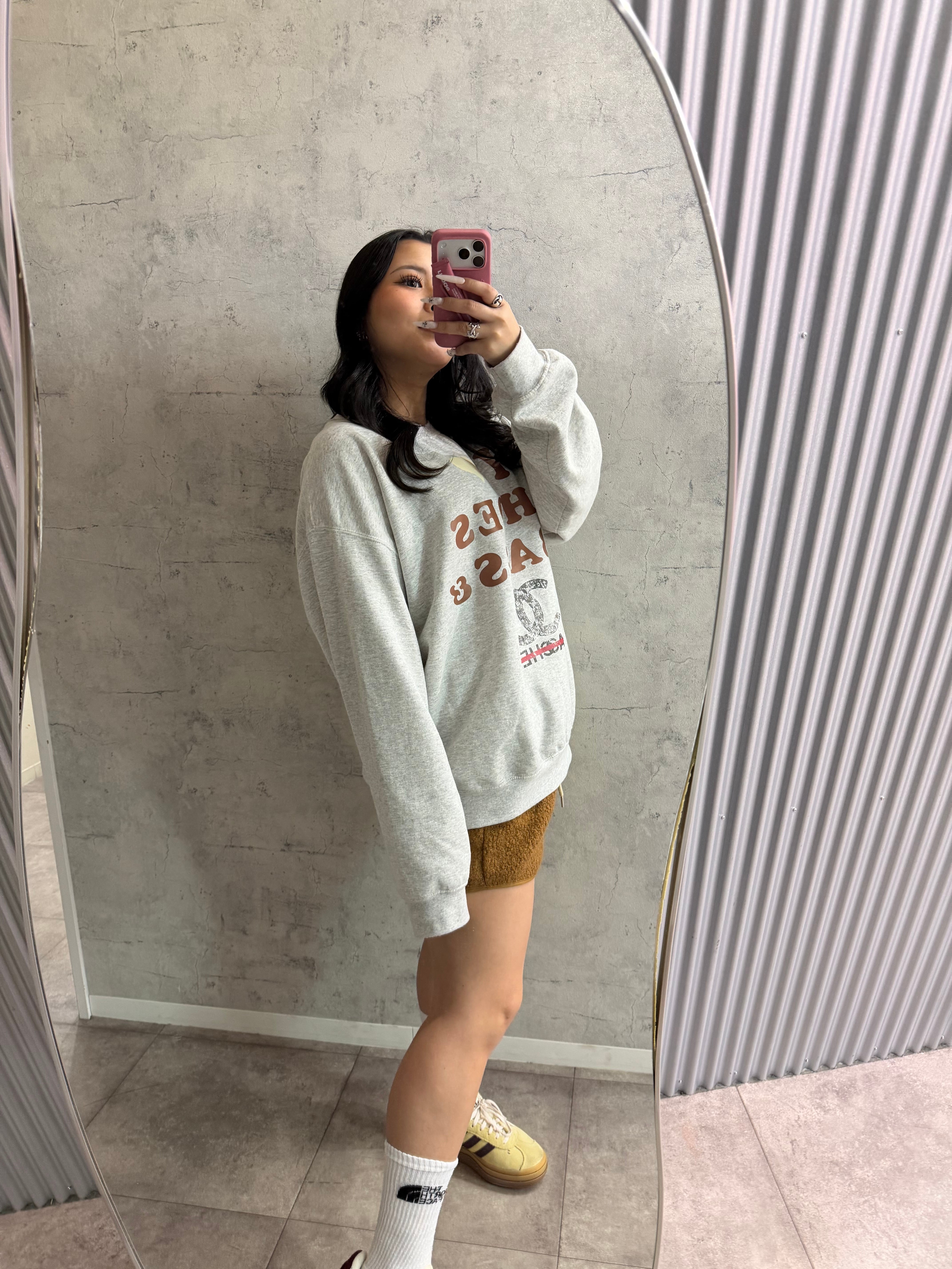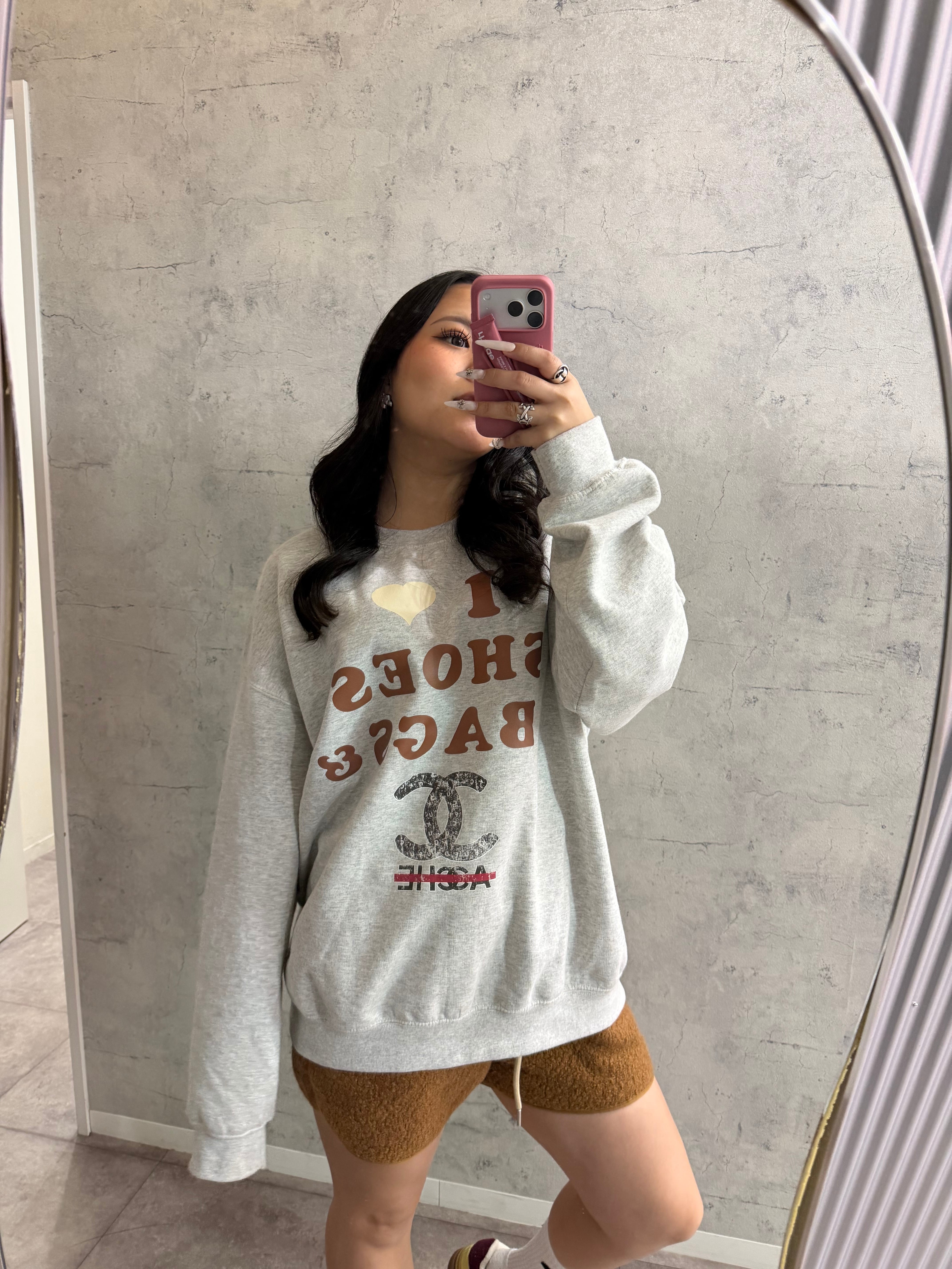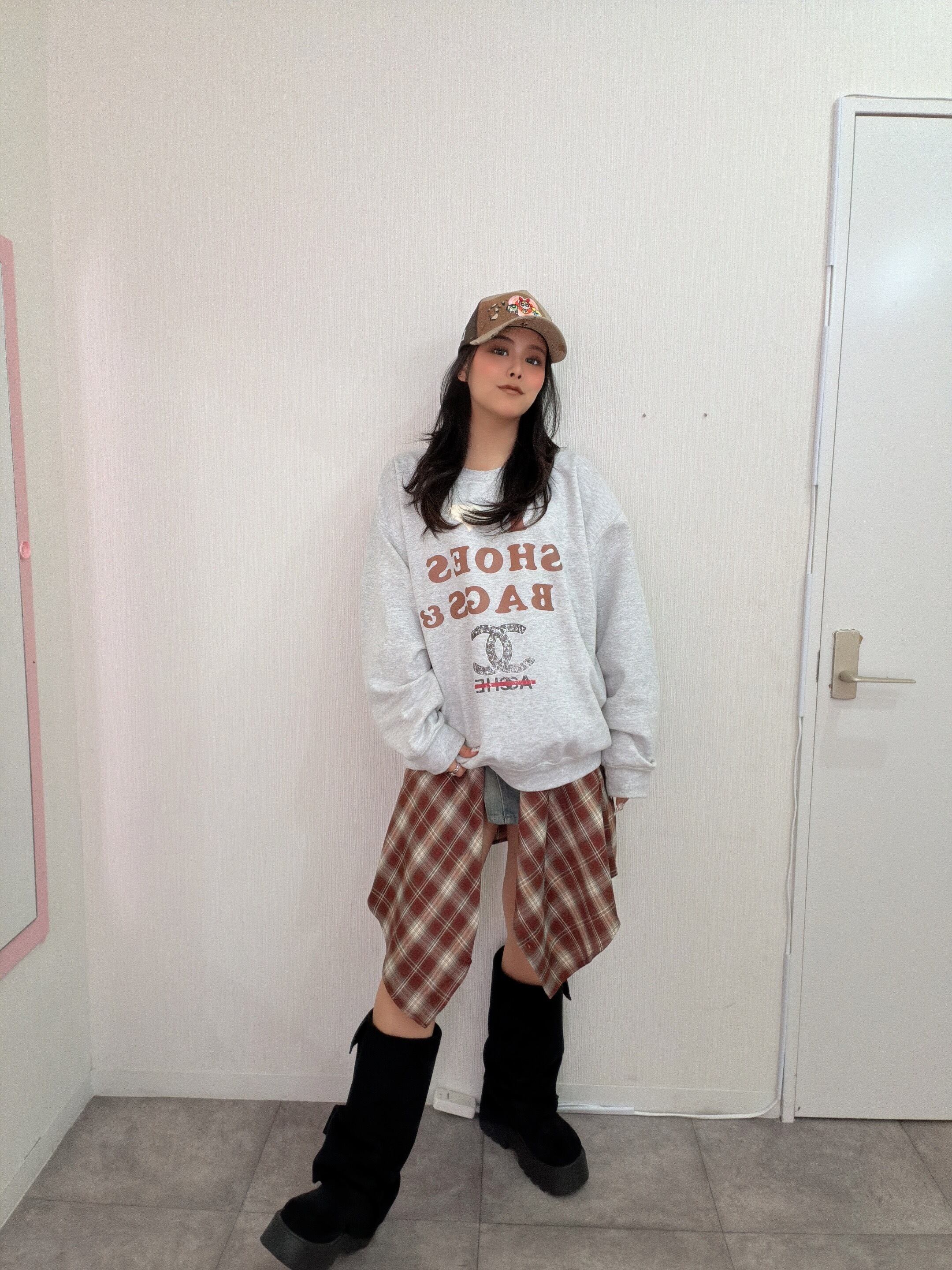 オリジナル ILOVE柄 クルースウェット×チェックシャツ