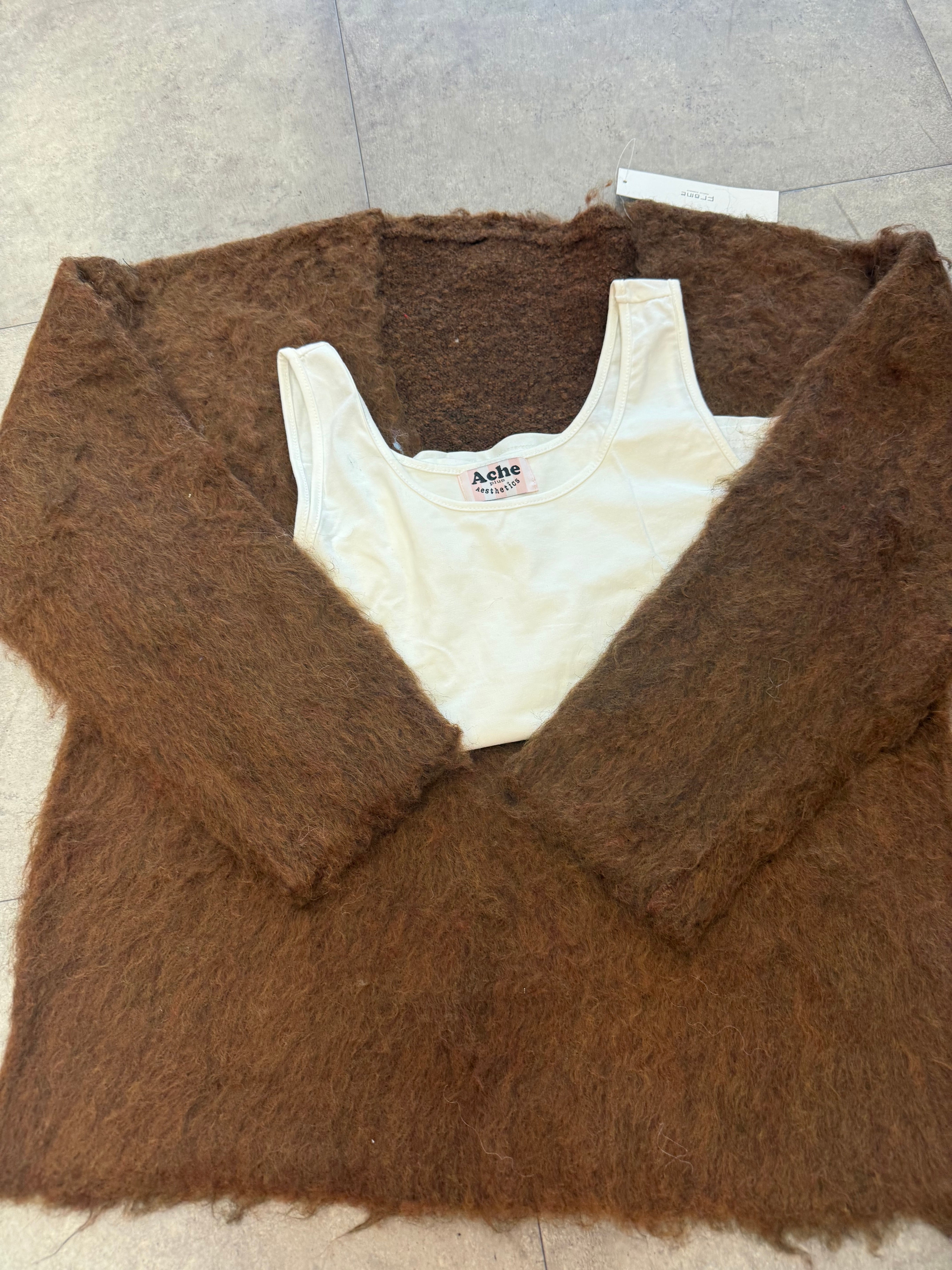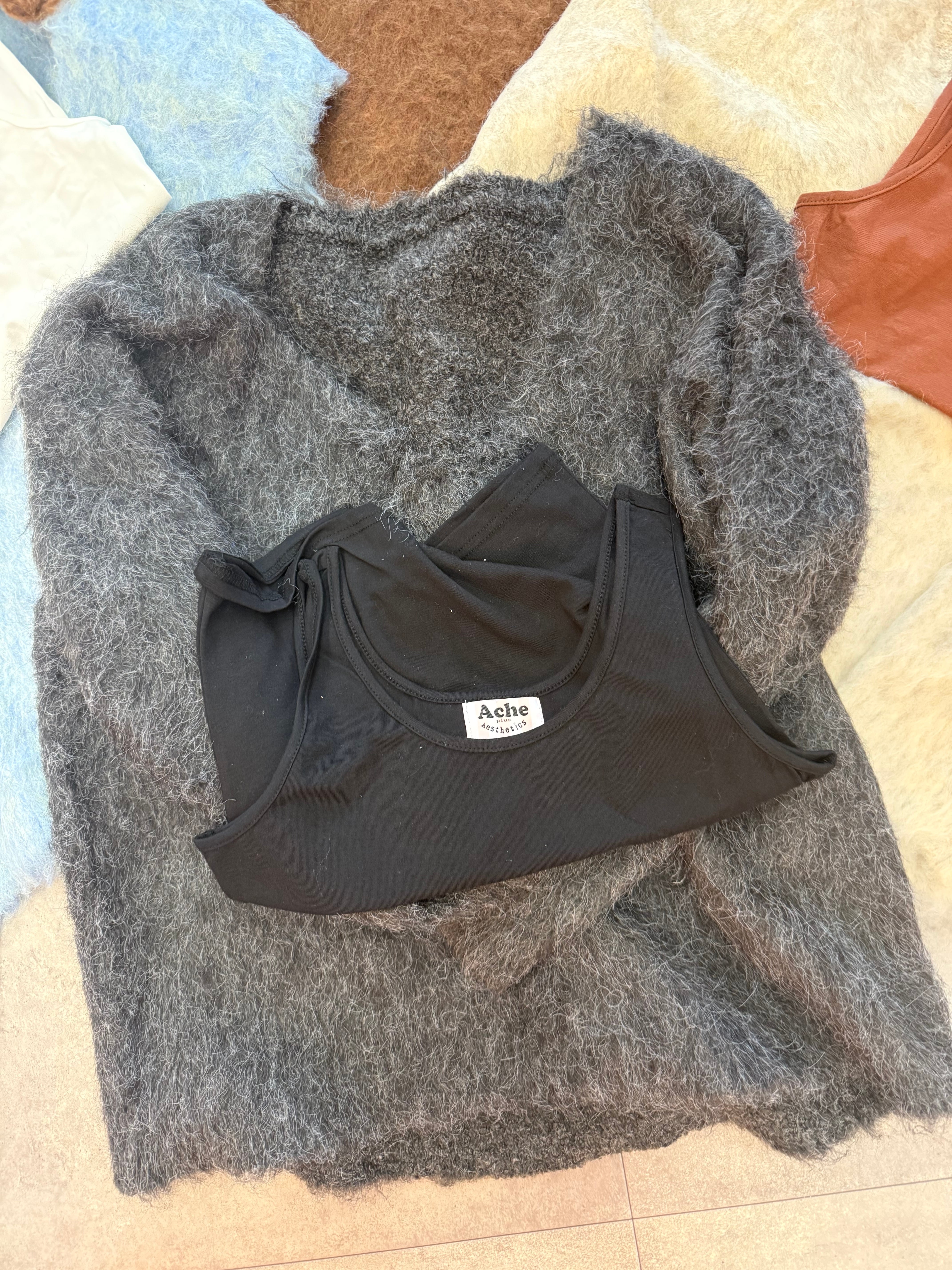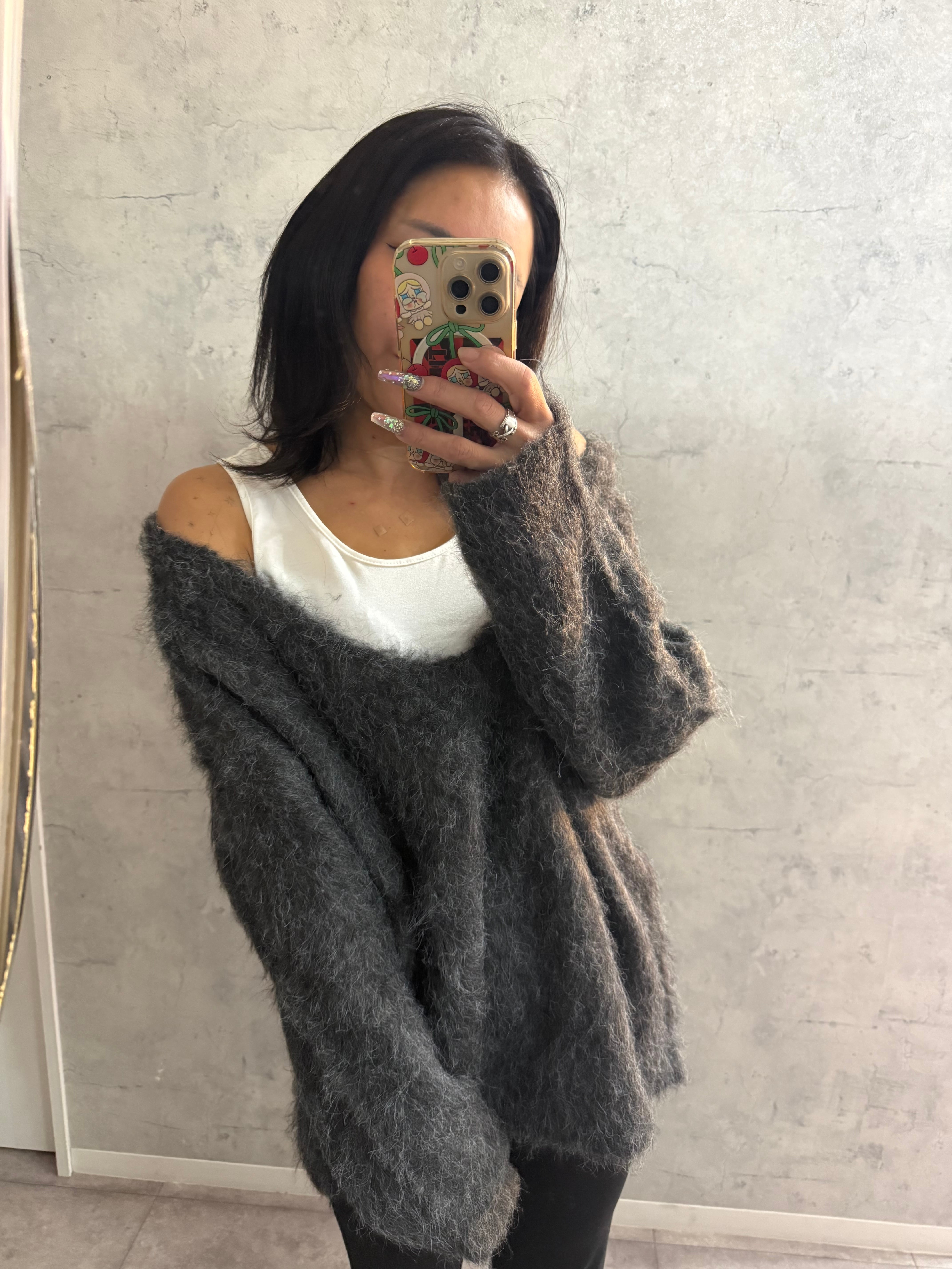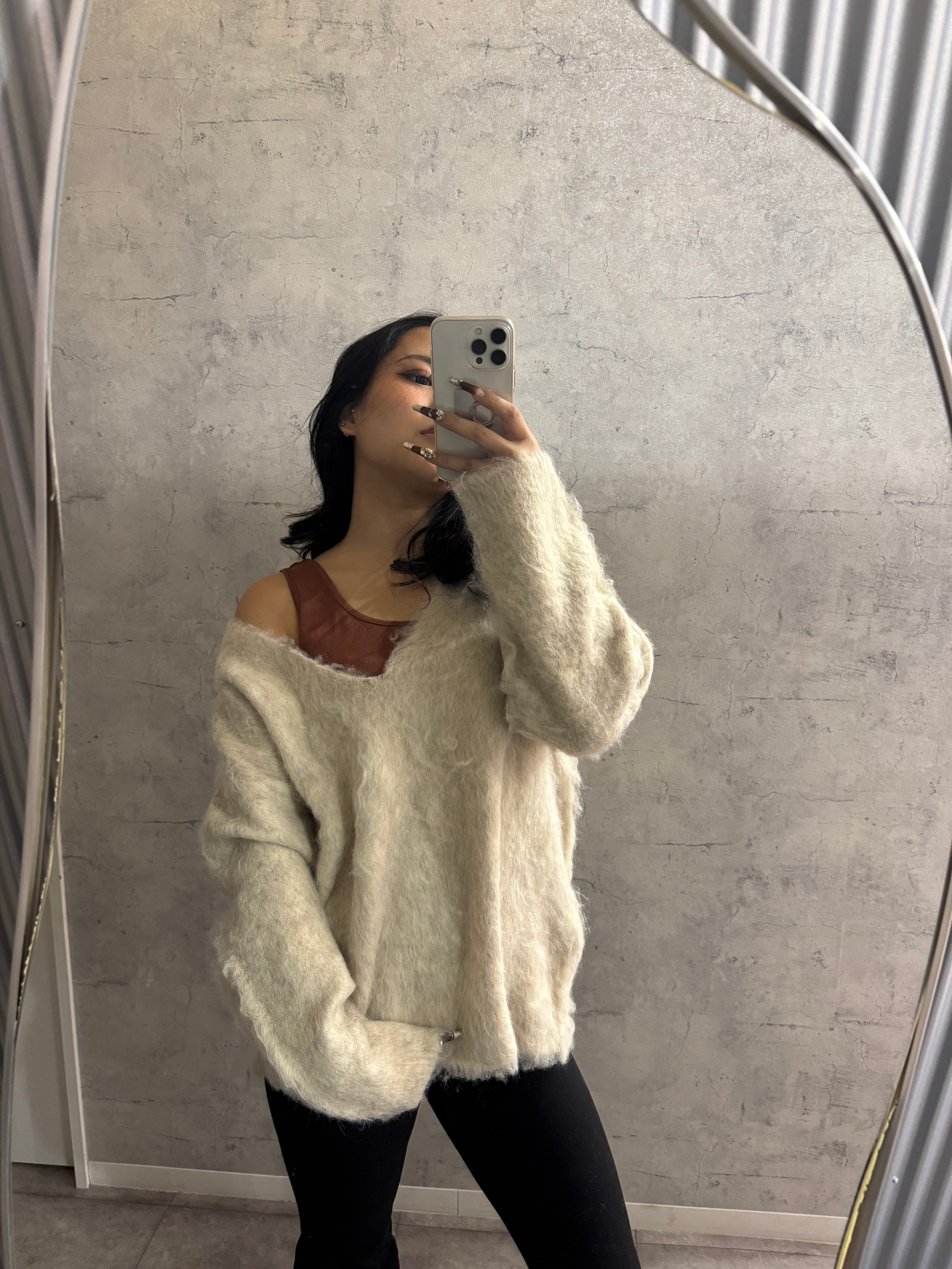 インナー付きブークレシャギーVネックニット