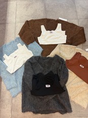 柔らかニット素材のシンプルVネックトップス