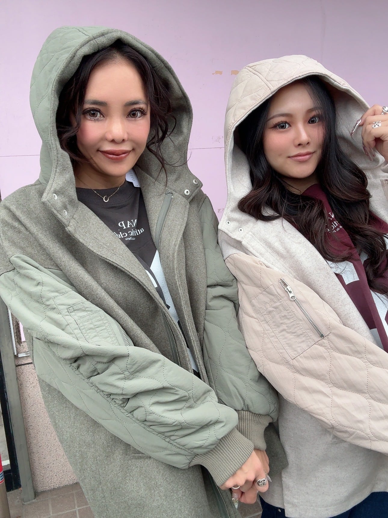 ゆとりのあるドロップショルダーとワイドスリーブがリラックス感を演出し、厚手のニットやスウェットの上からも無理なく重ねられるゆったりシルエット。袖口のリブが冷気を防ぎつつ、キルトとの切替ラインが程よいアクセントに。フードは首元まで立ち上がるデザインで、スナップボタンとファスナーのダブル仕様により風の侵入を防ぎます。両サイドのポケットに加え、袖口にはファスナーポケットを配置し、ミリタリーライクな要素をさりげなくプラス。裾はややラウンド気味で、ヒップラインを包み込み、ボトムスとのバランスも取りやすい丈感です。