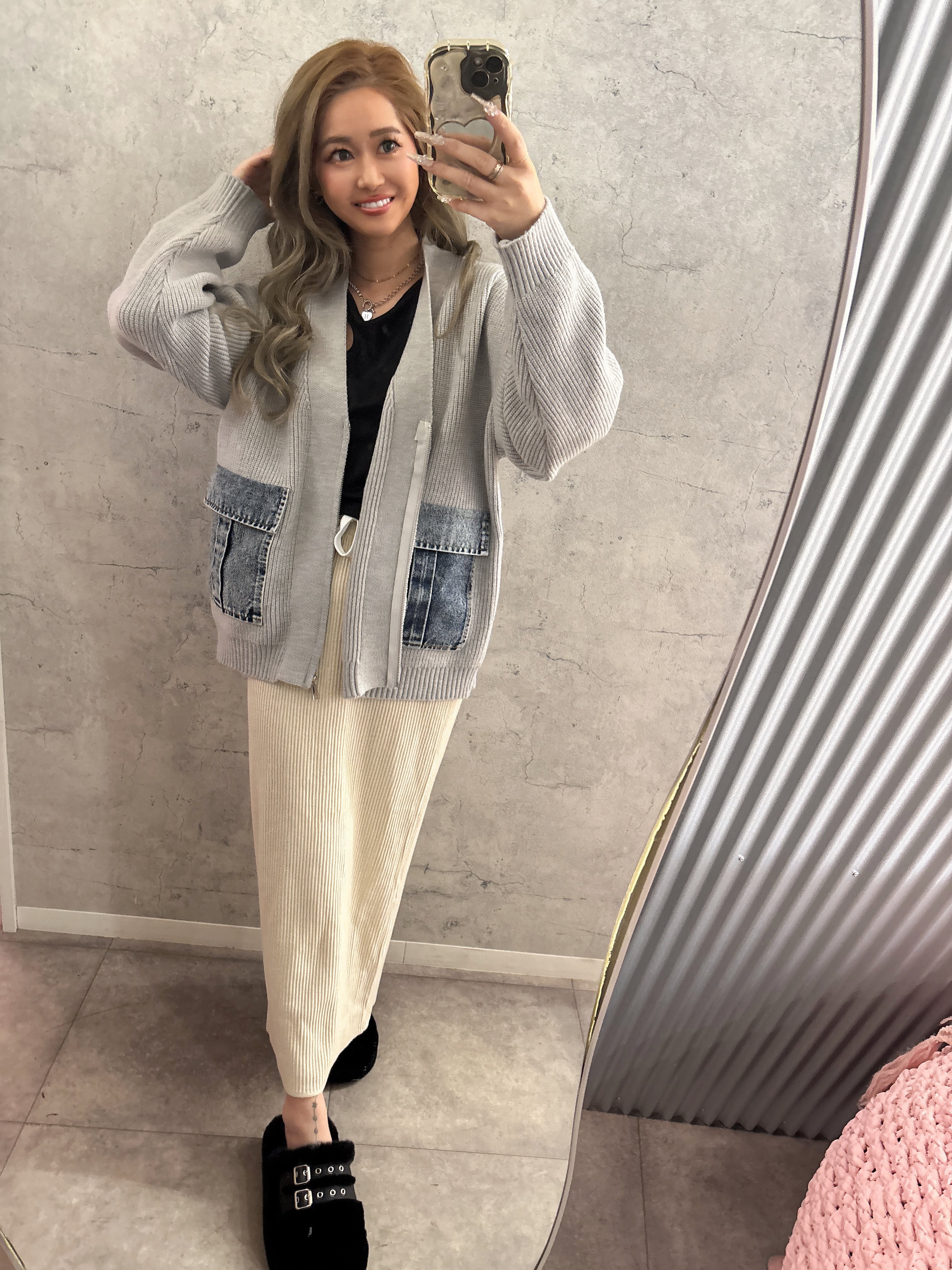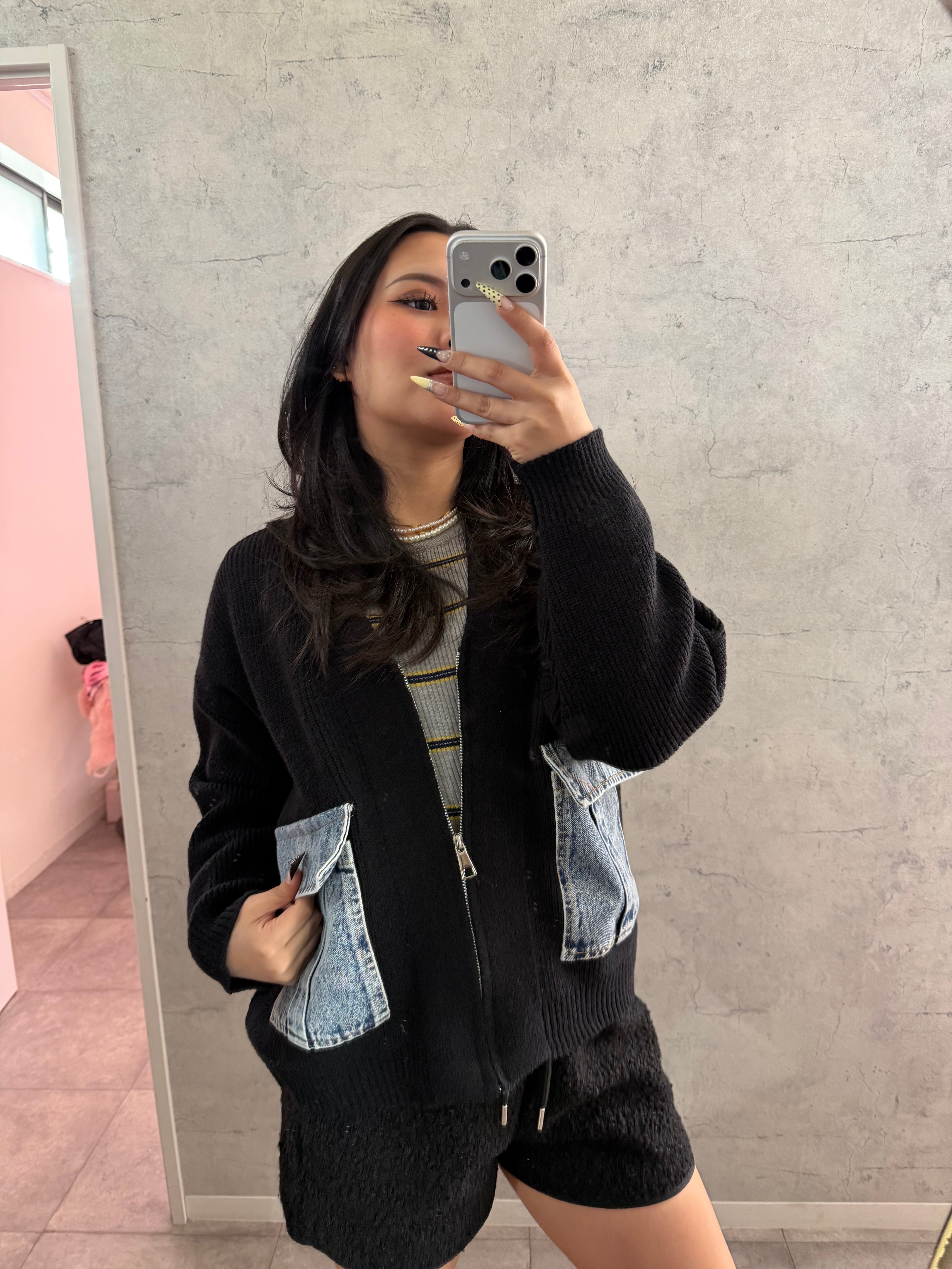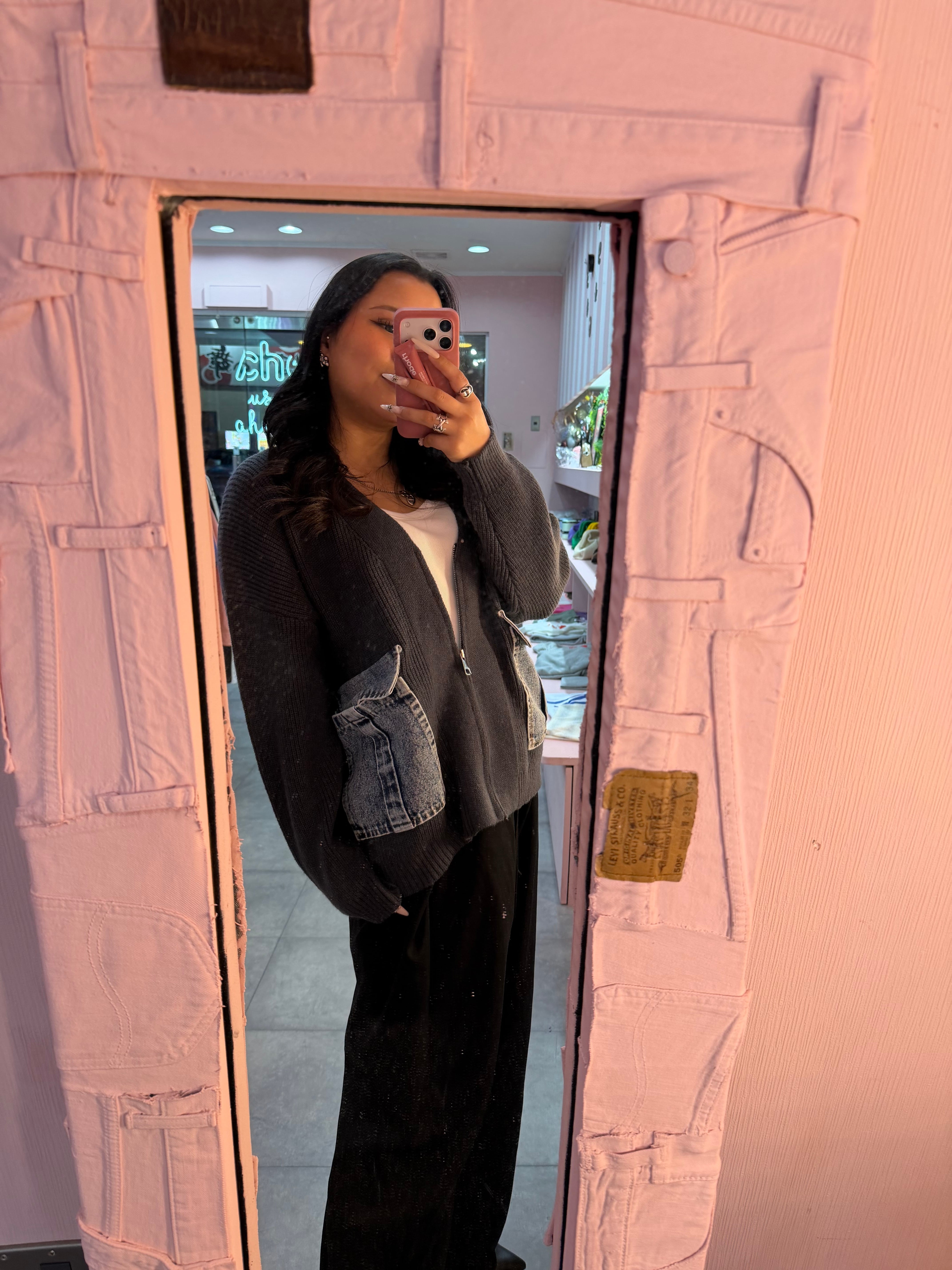 デニムポケットジップニットカーディガン