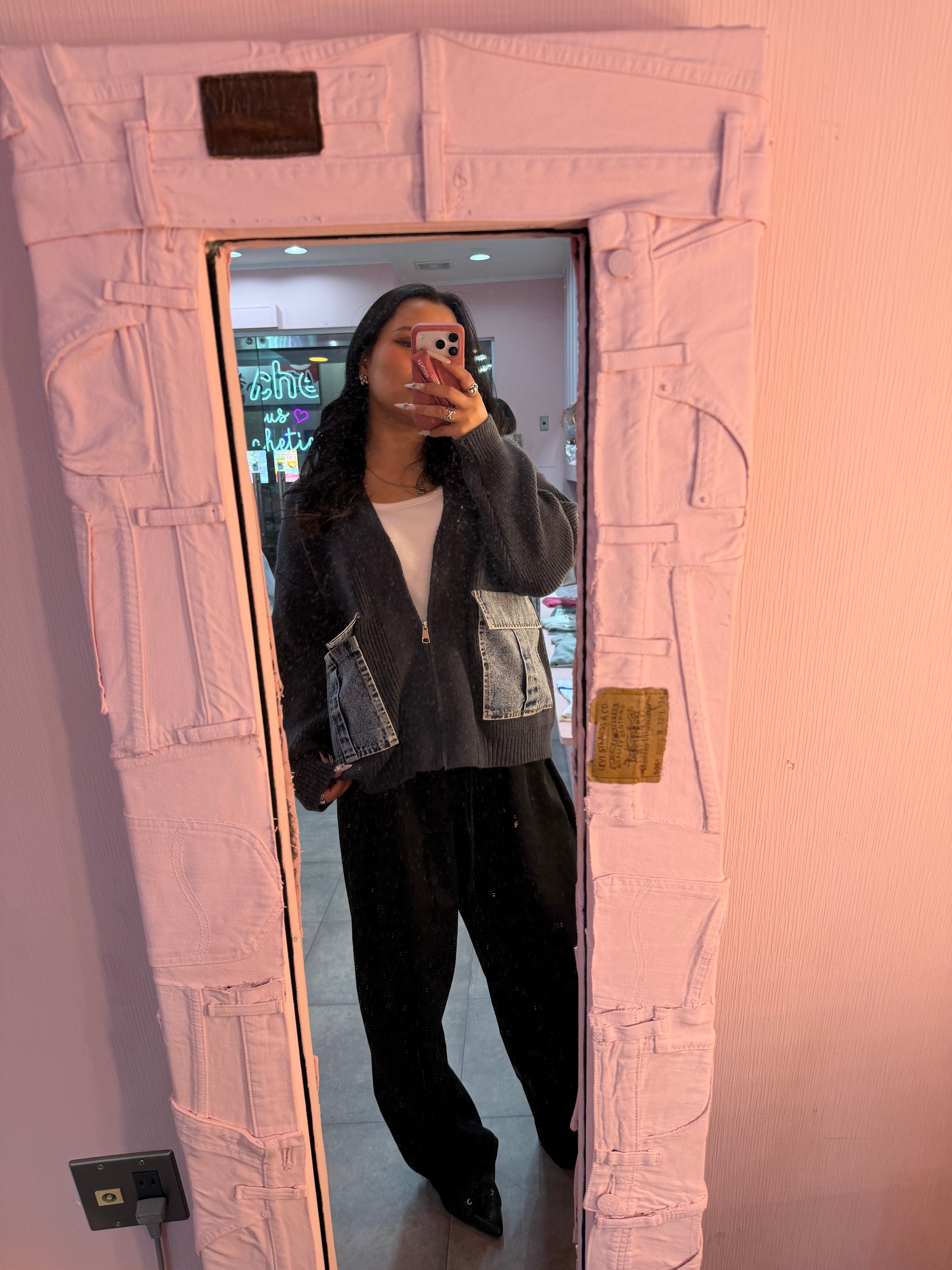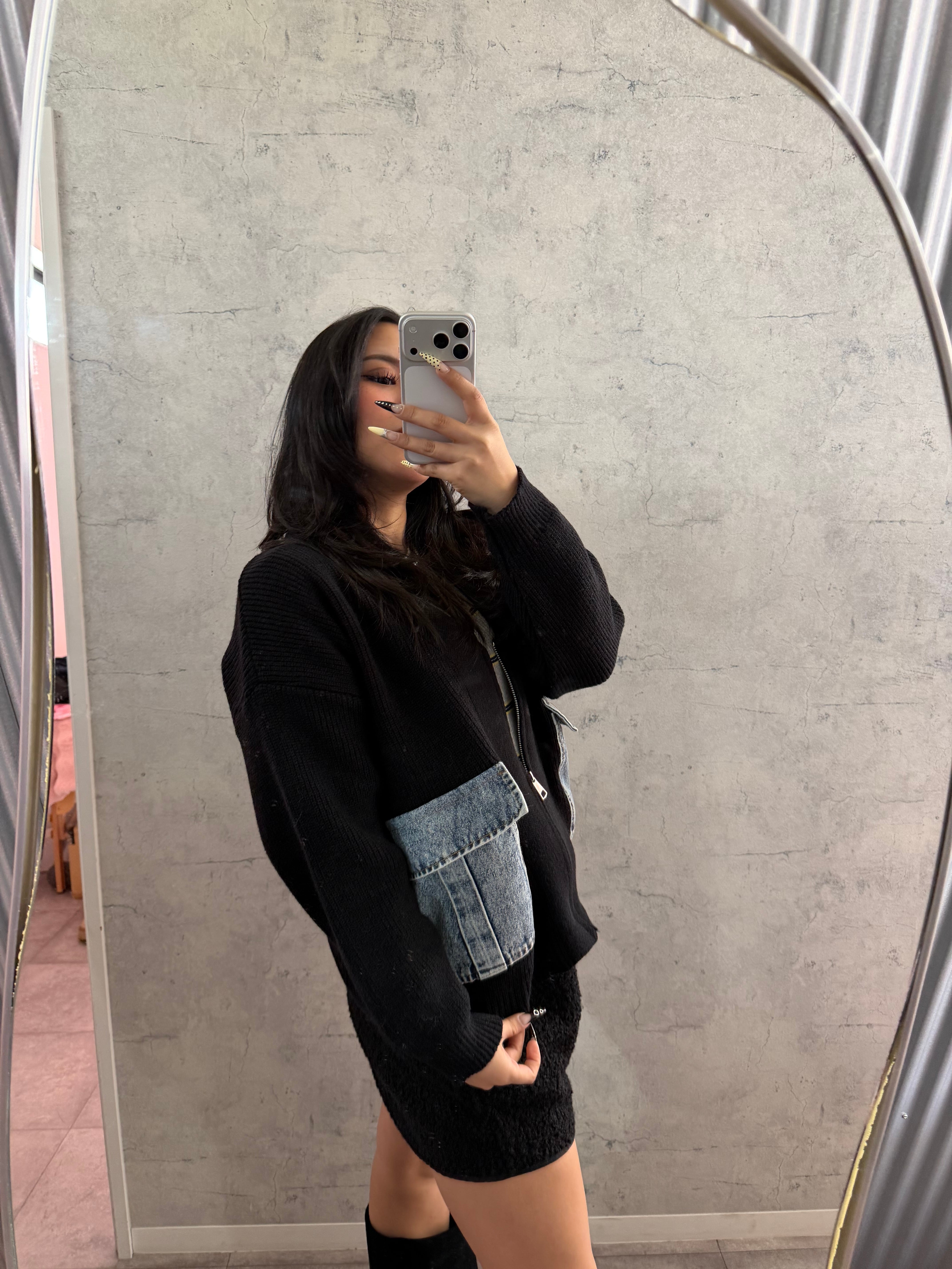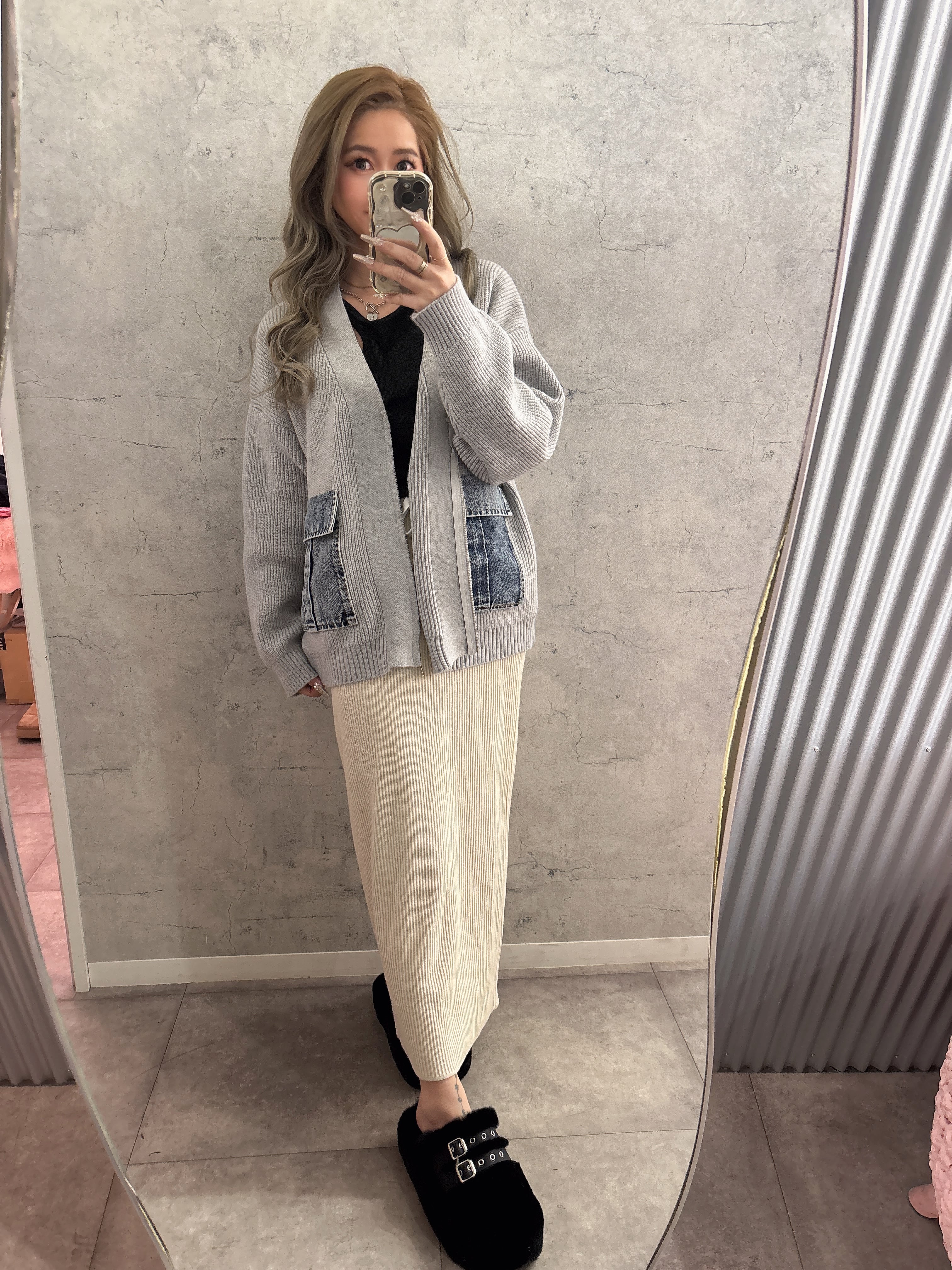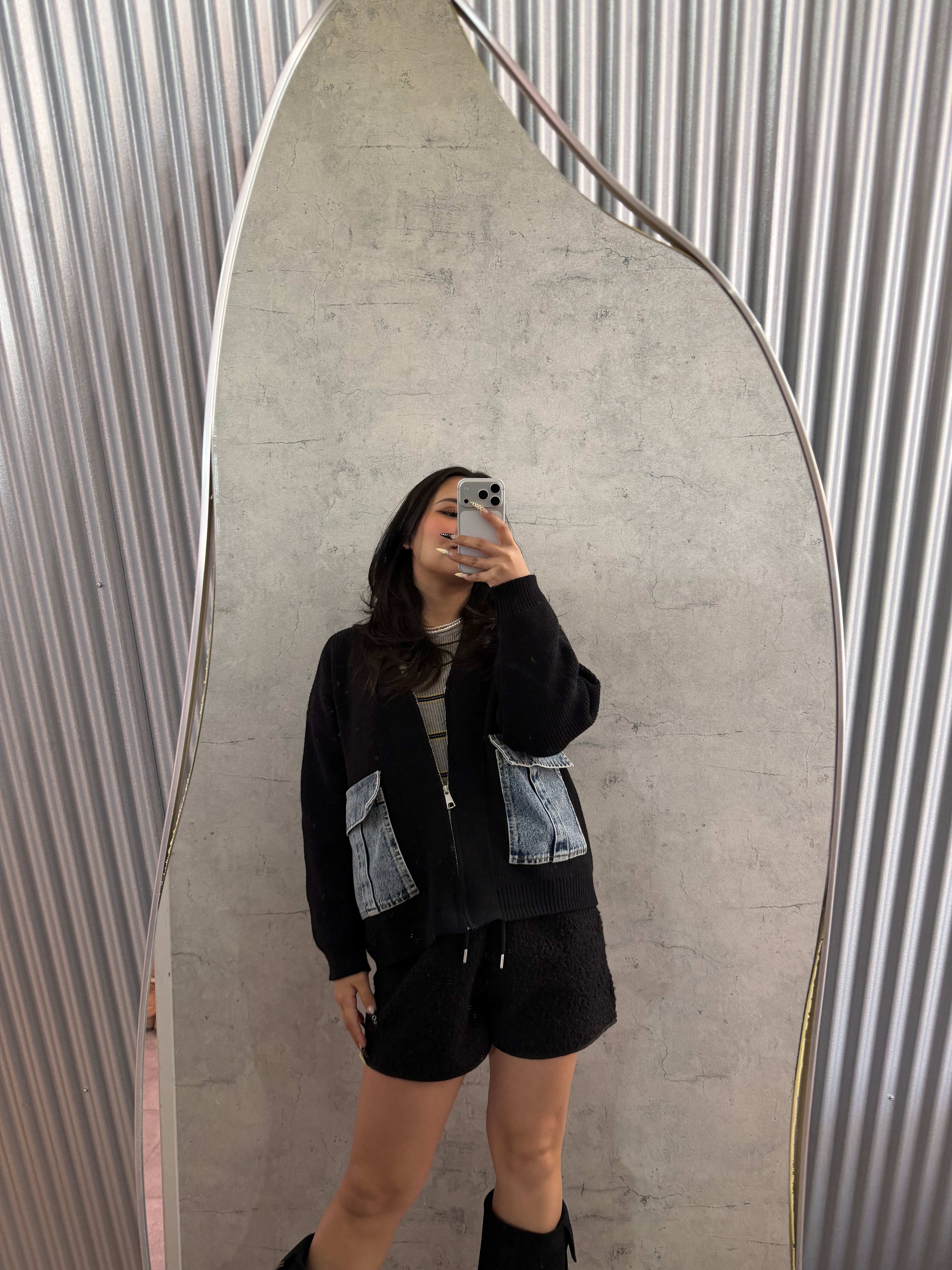 デニムポケットジップニットカーディガン