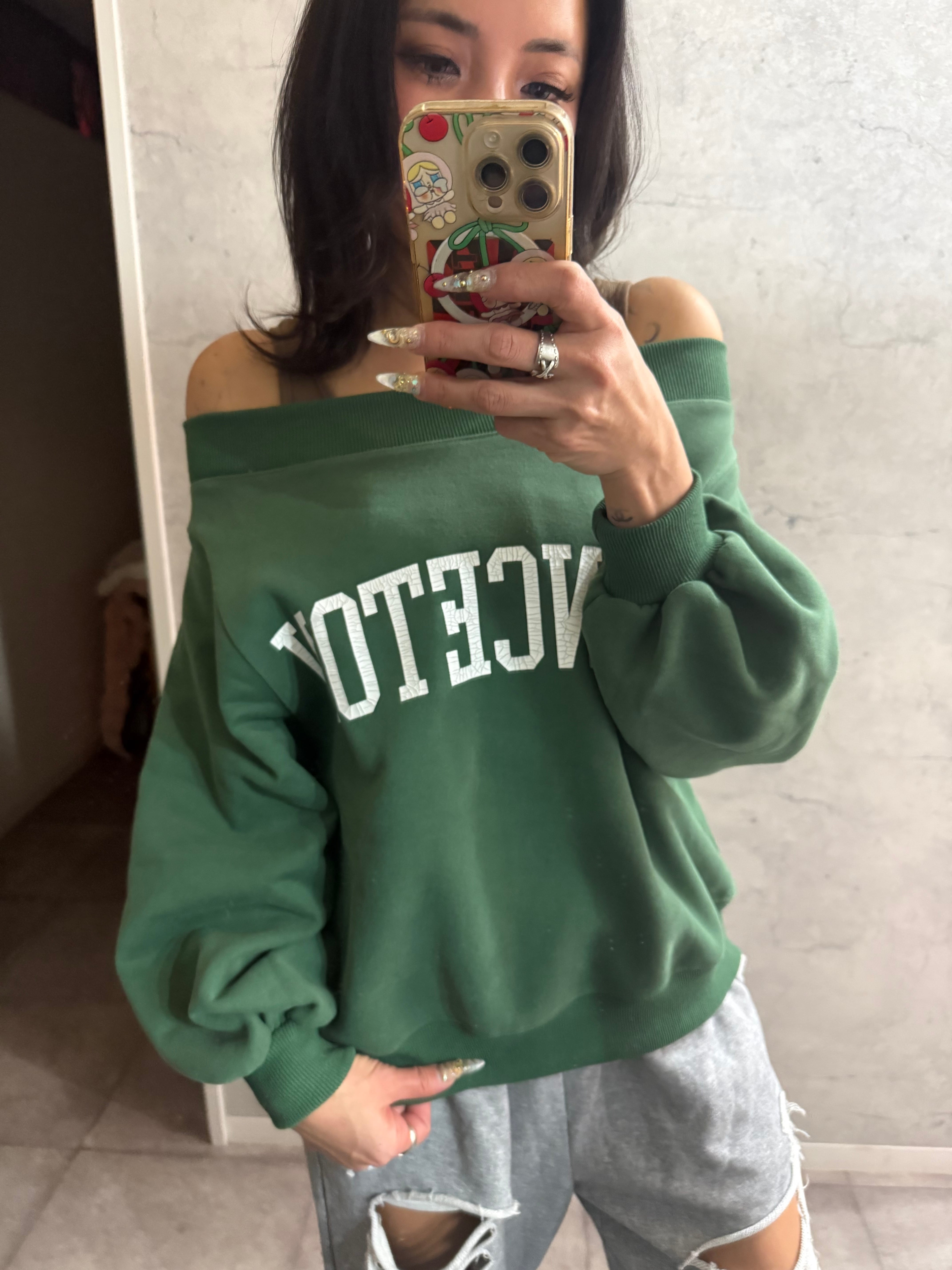 裏起毛ブラストオフショルカレッジロゴ スウェット