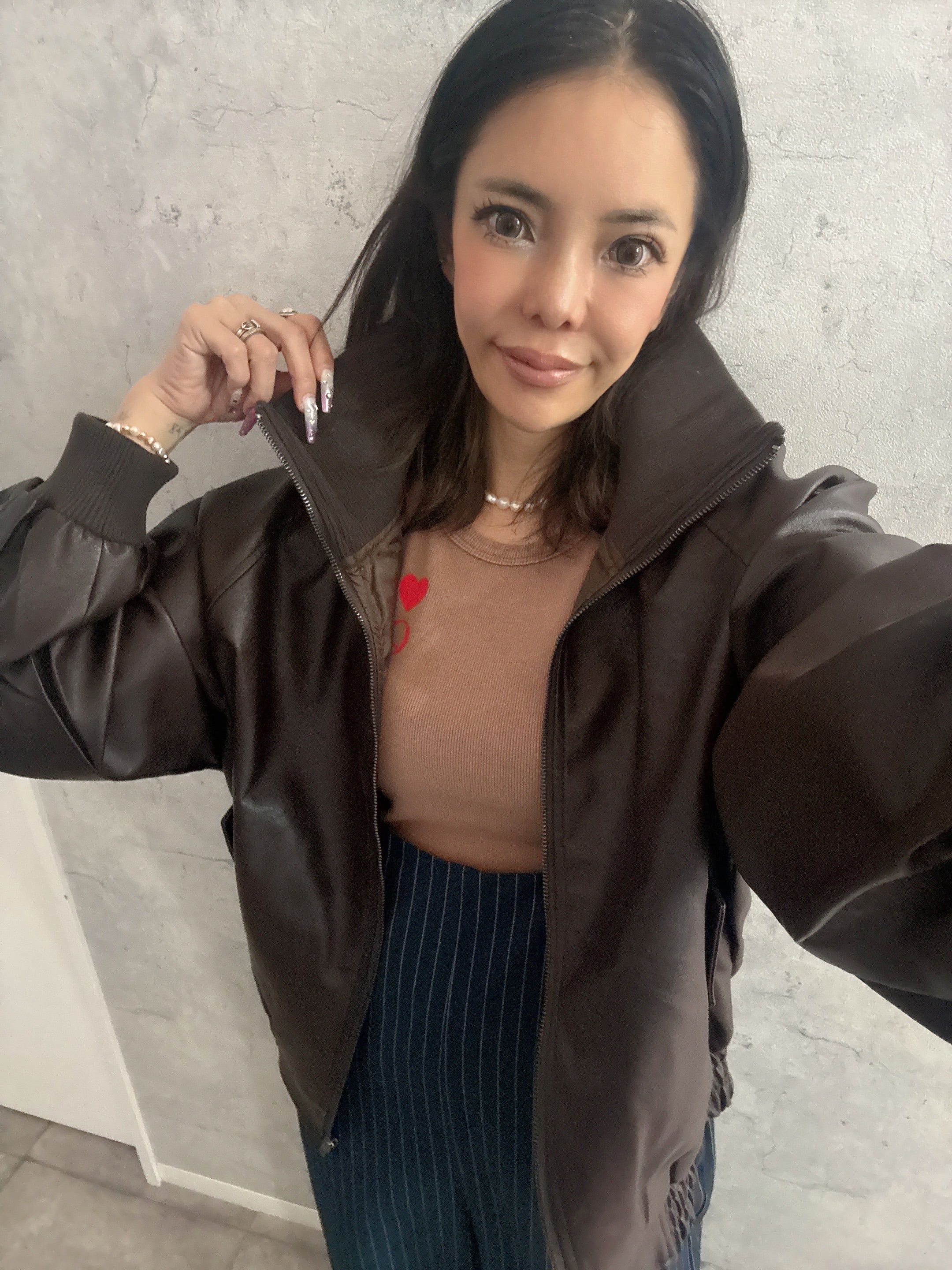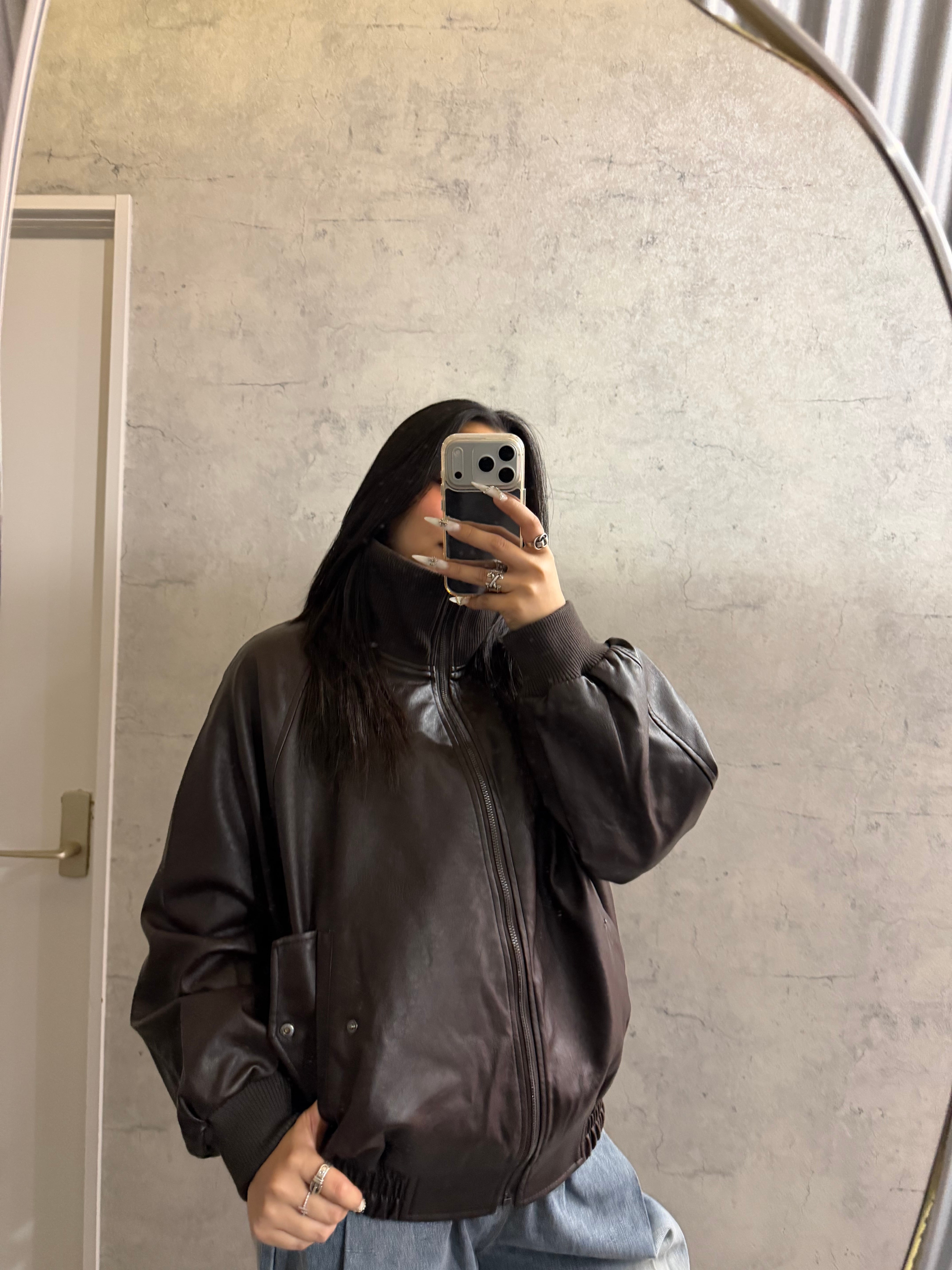 ●上質なフェイクレザーを使用したMA-1ブルゾン