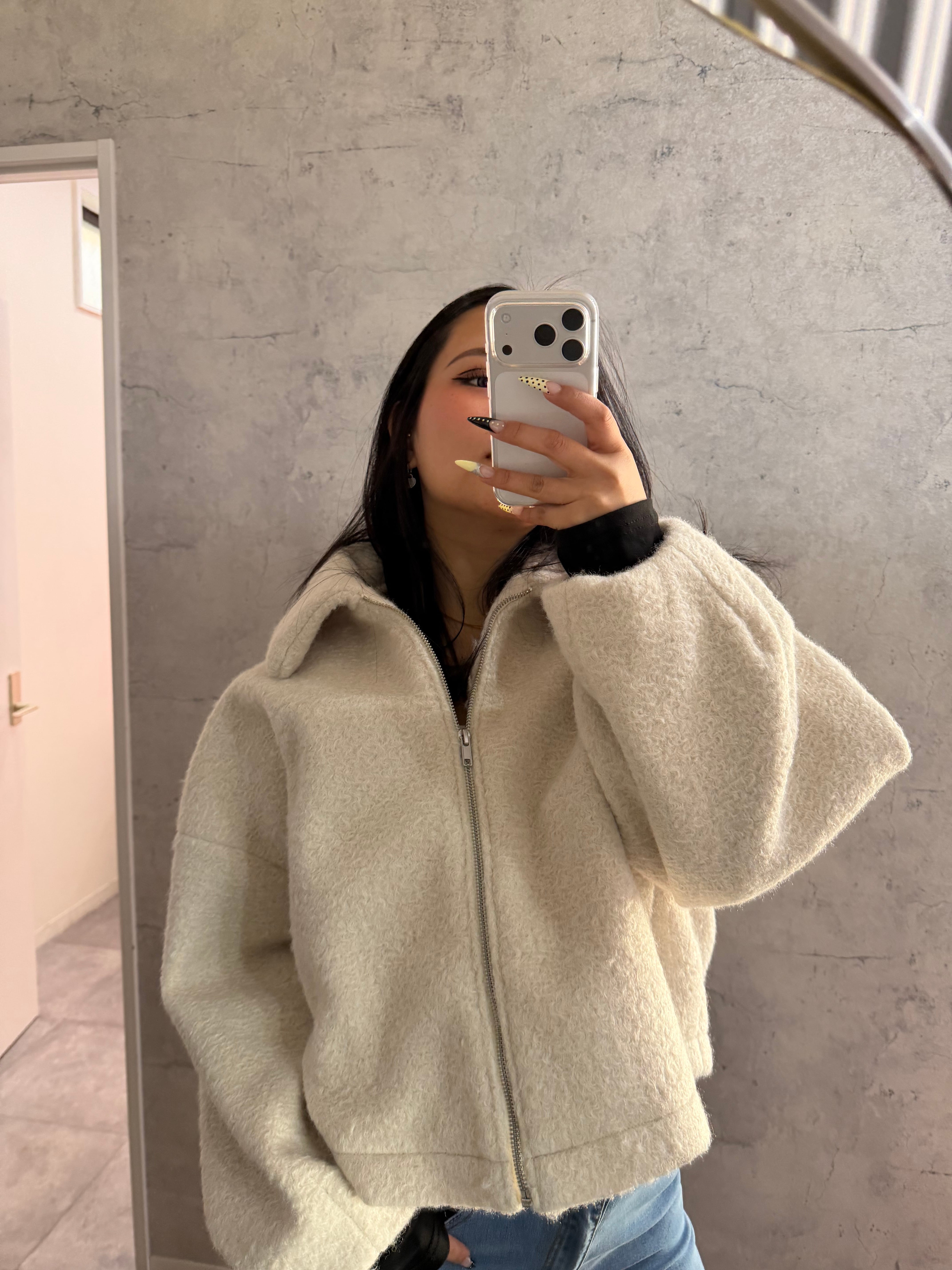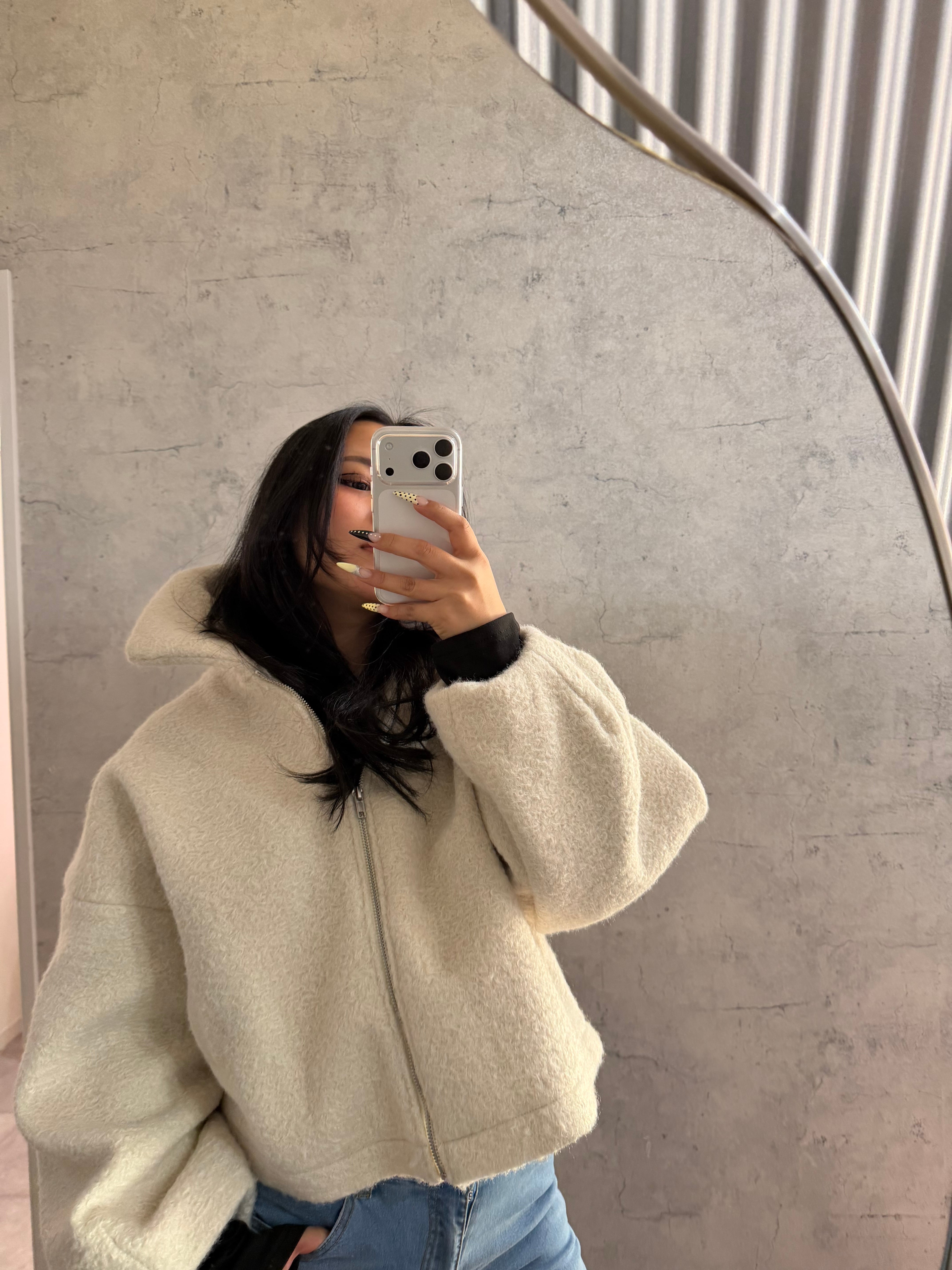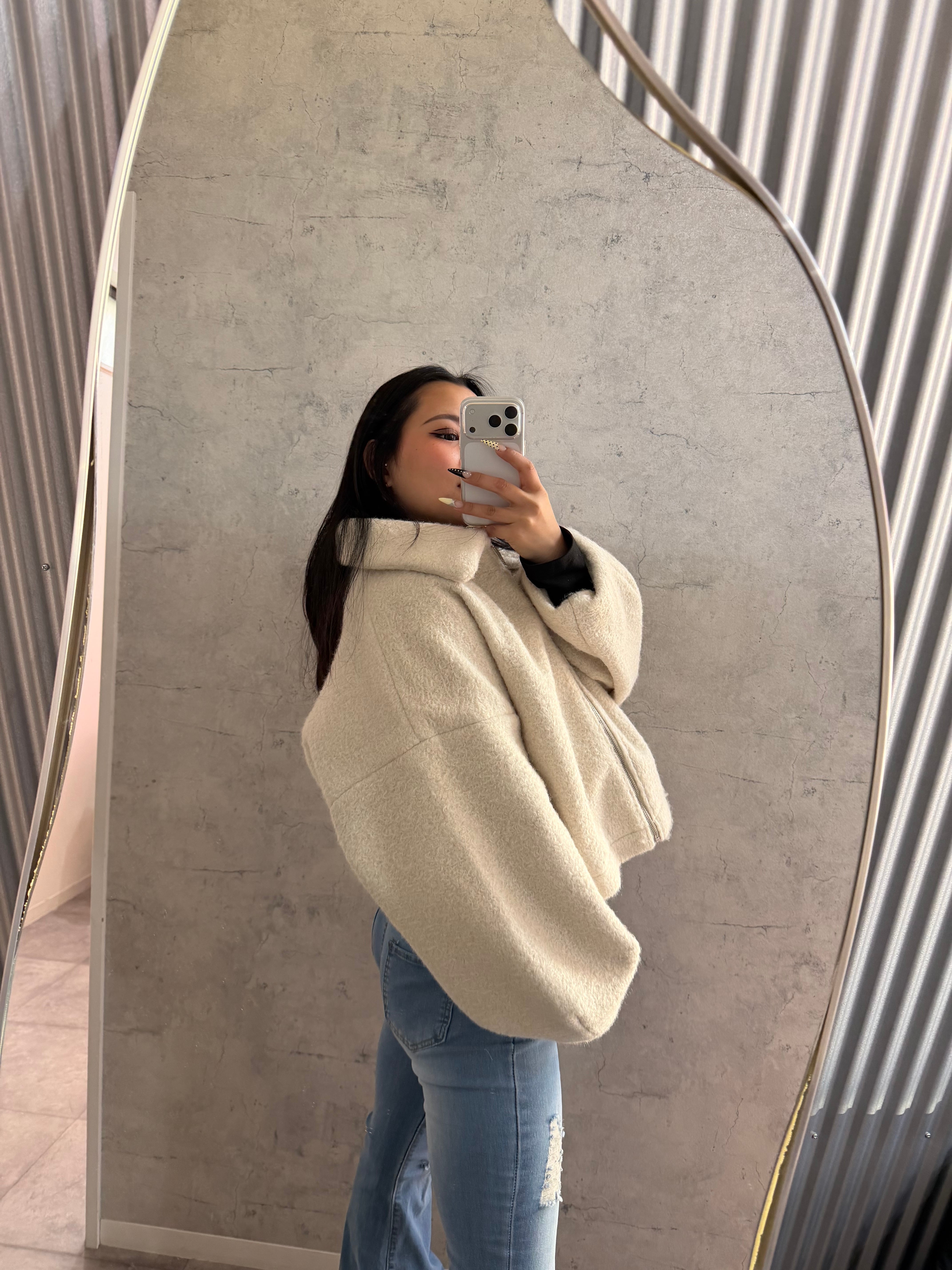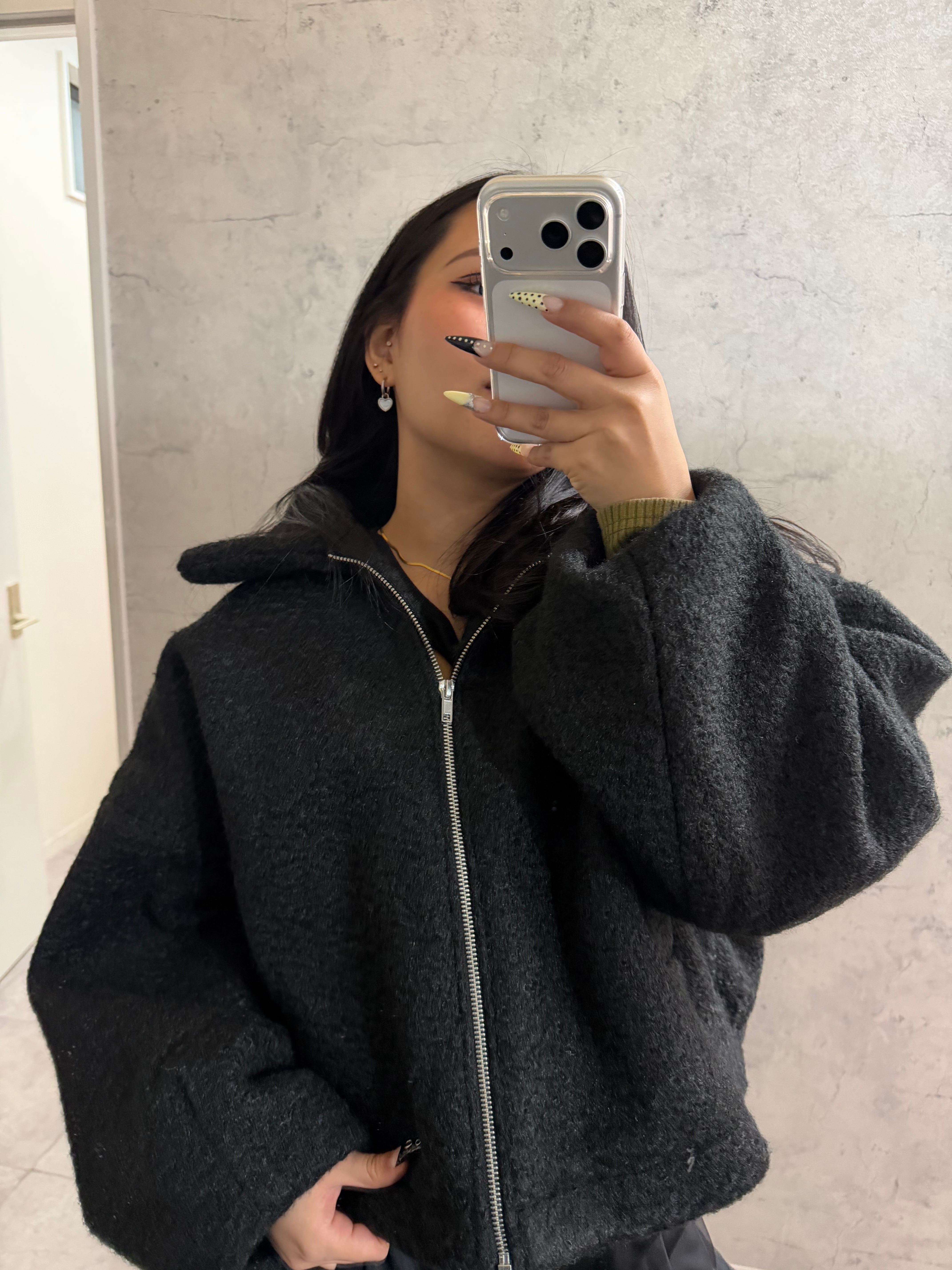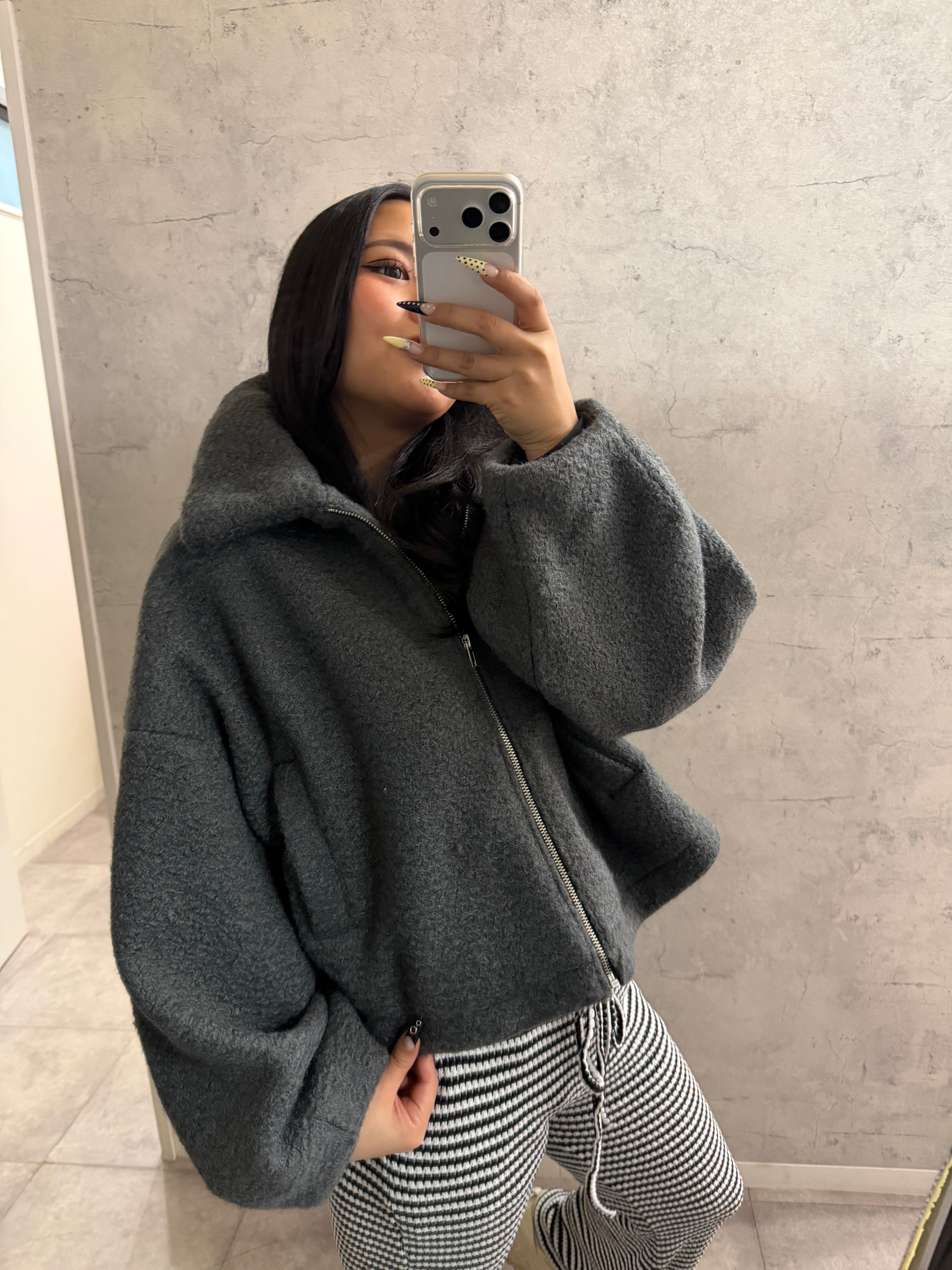 くるくるとした毛質が特徴のシープボア素材を使用したトレンドのショートジャケット。