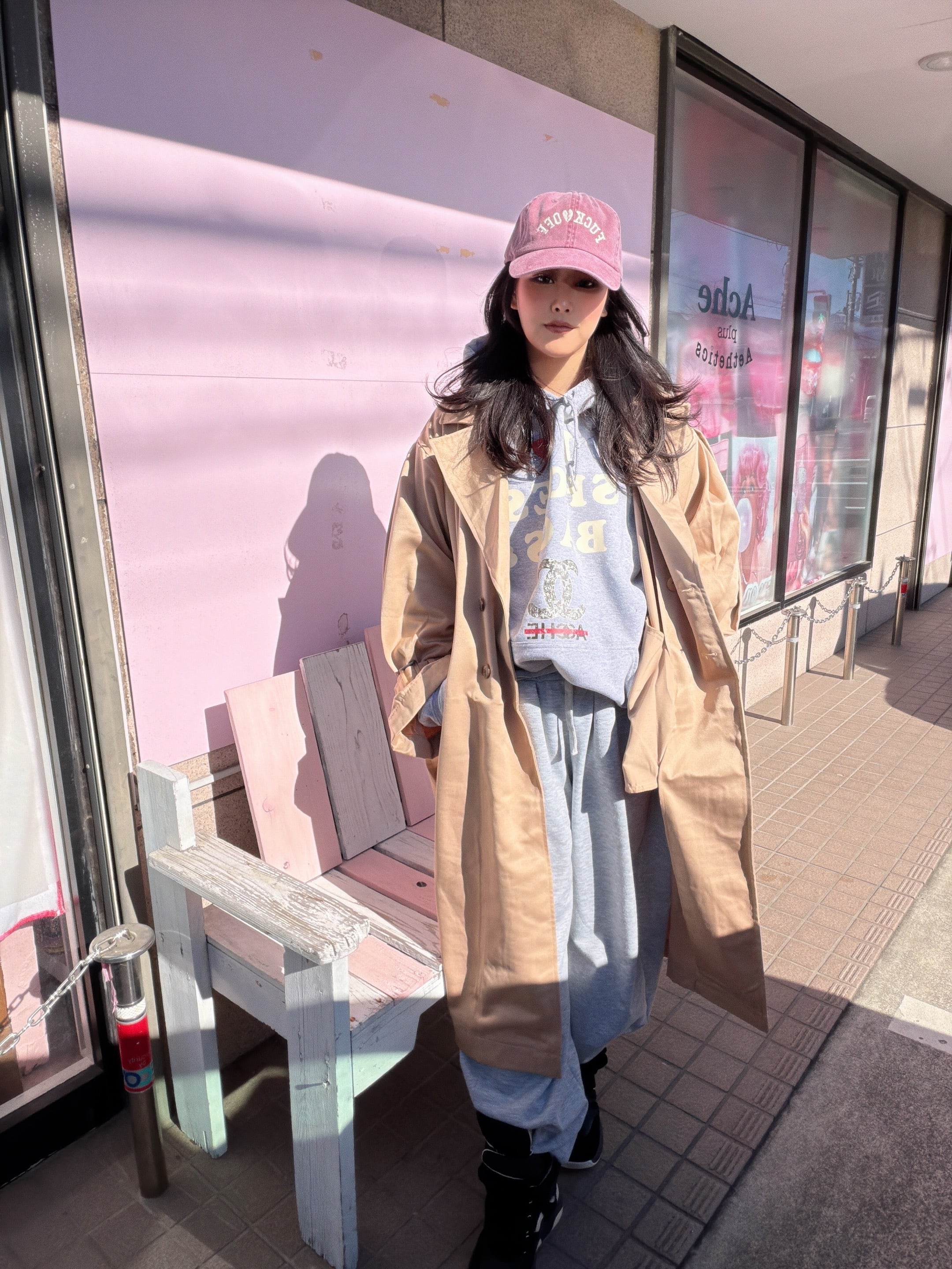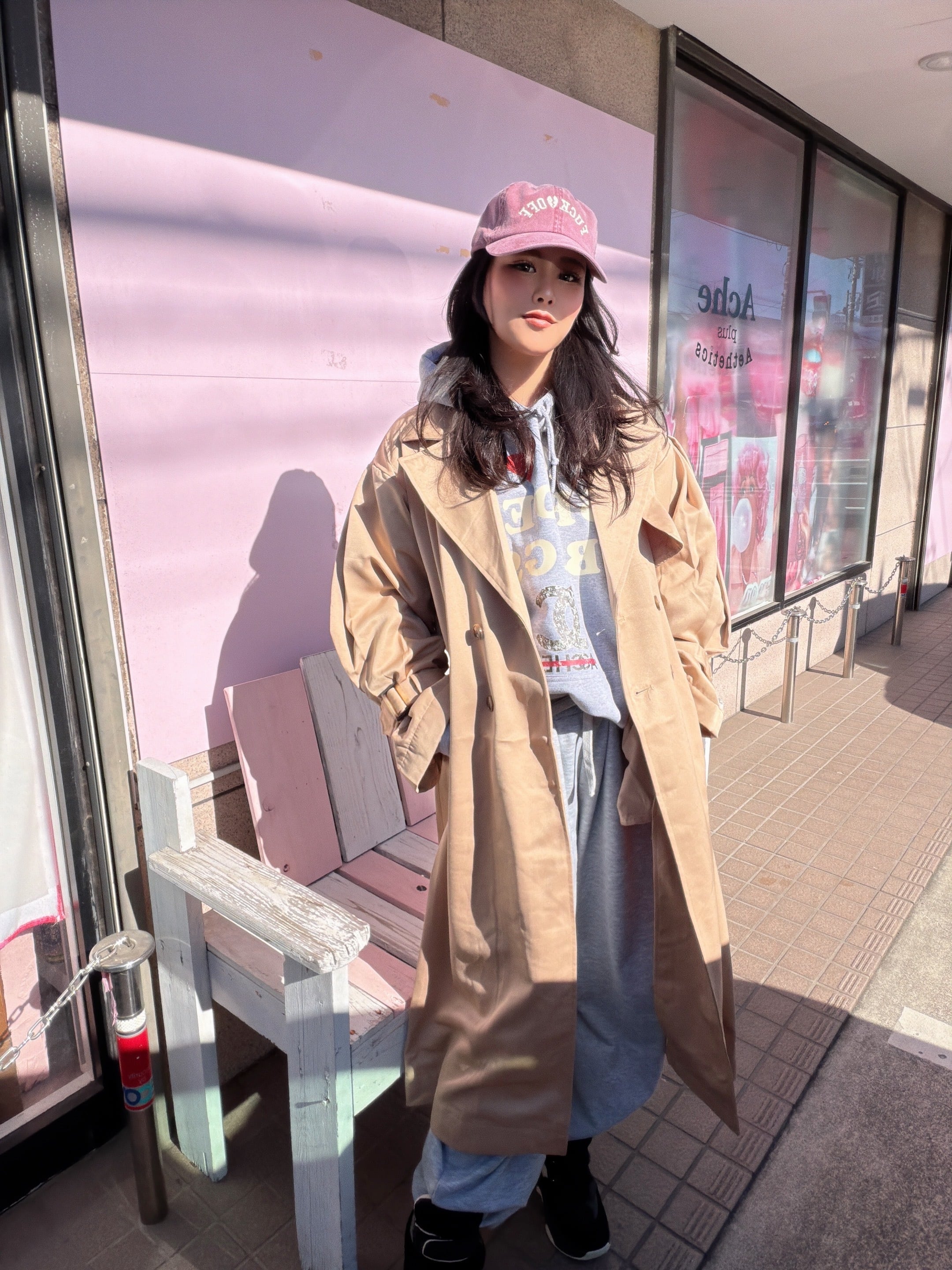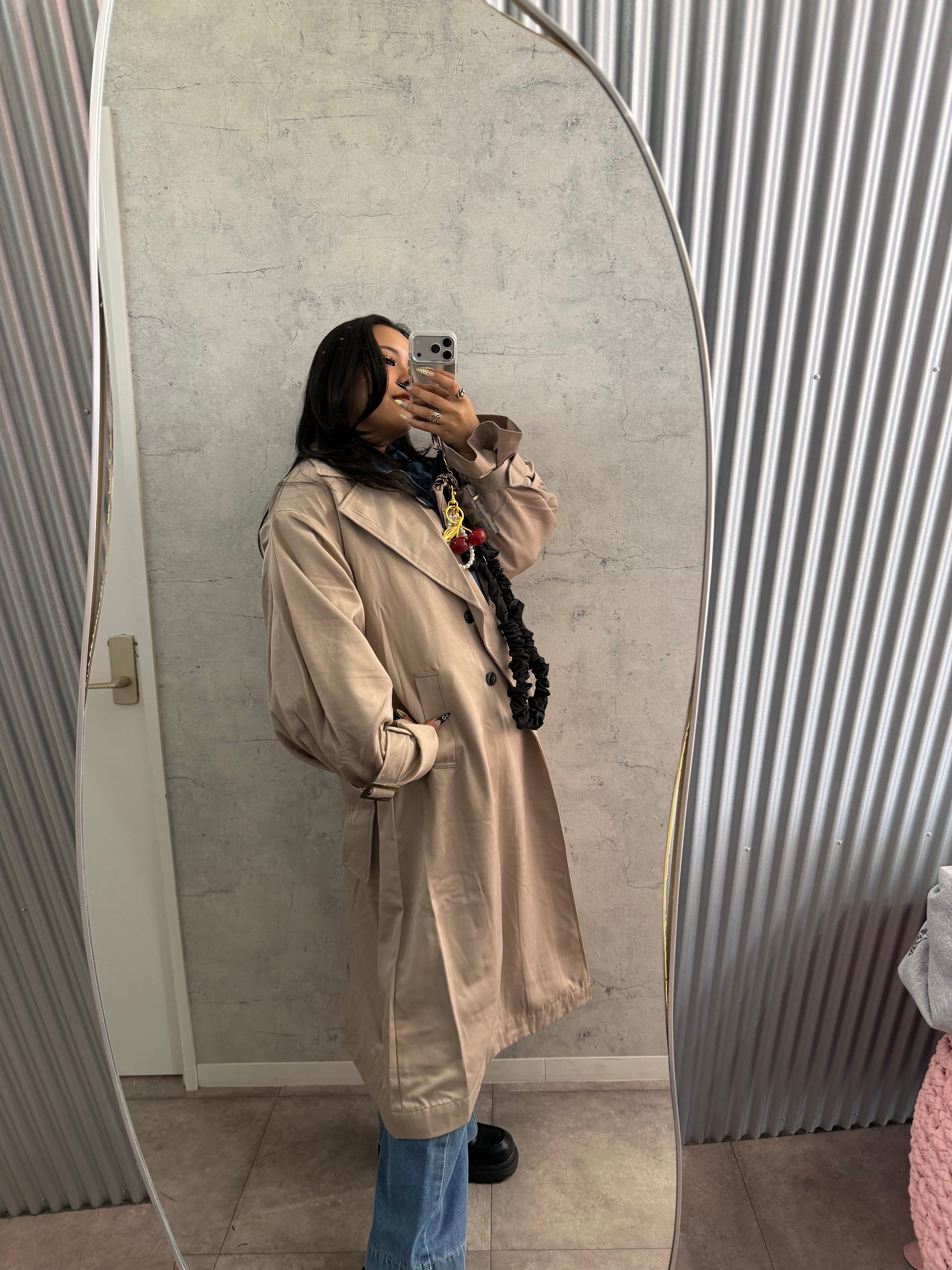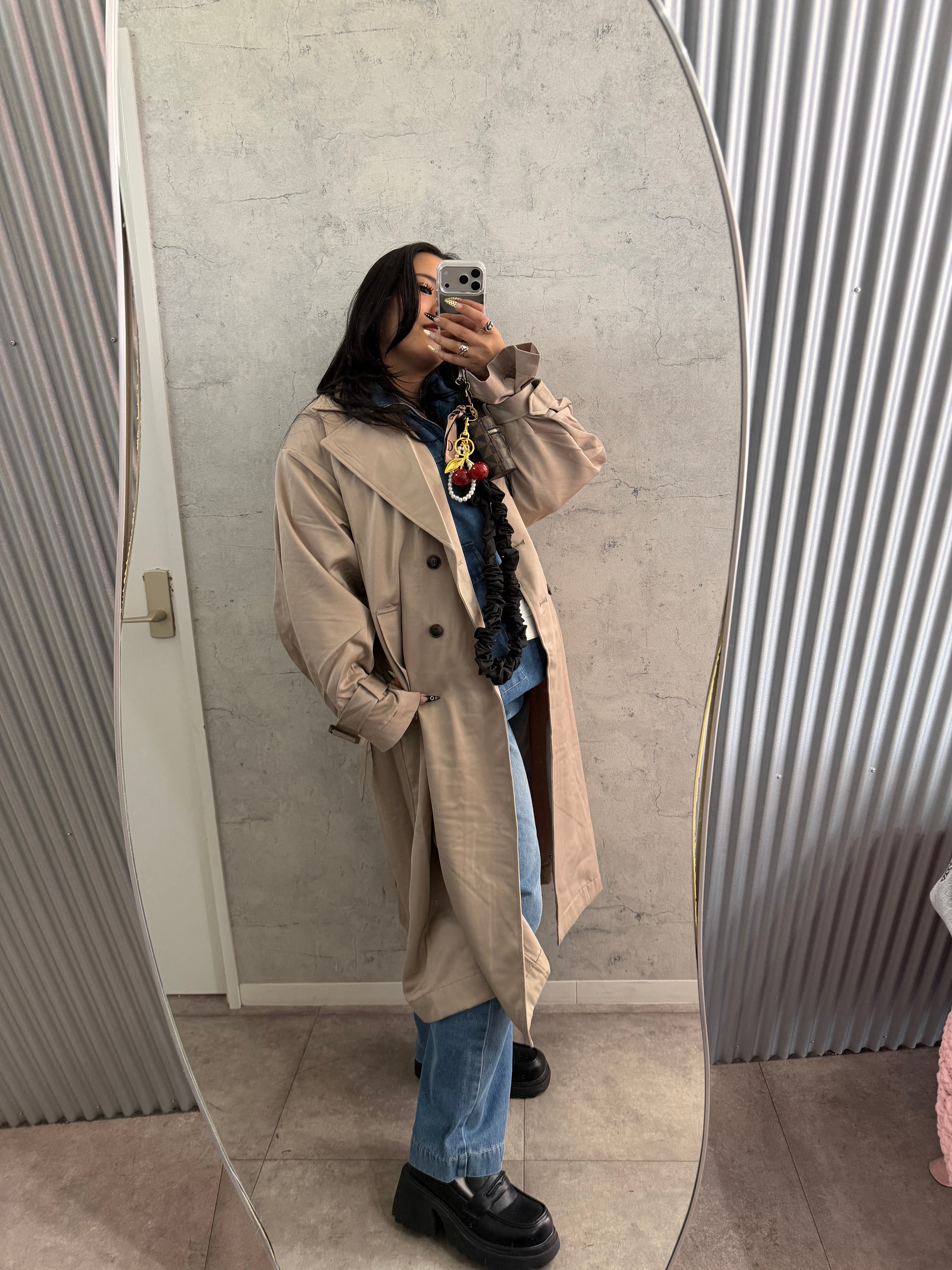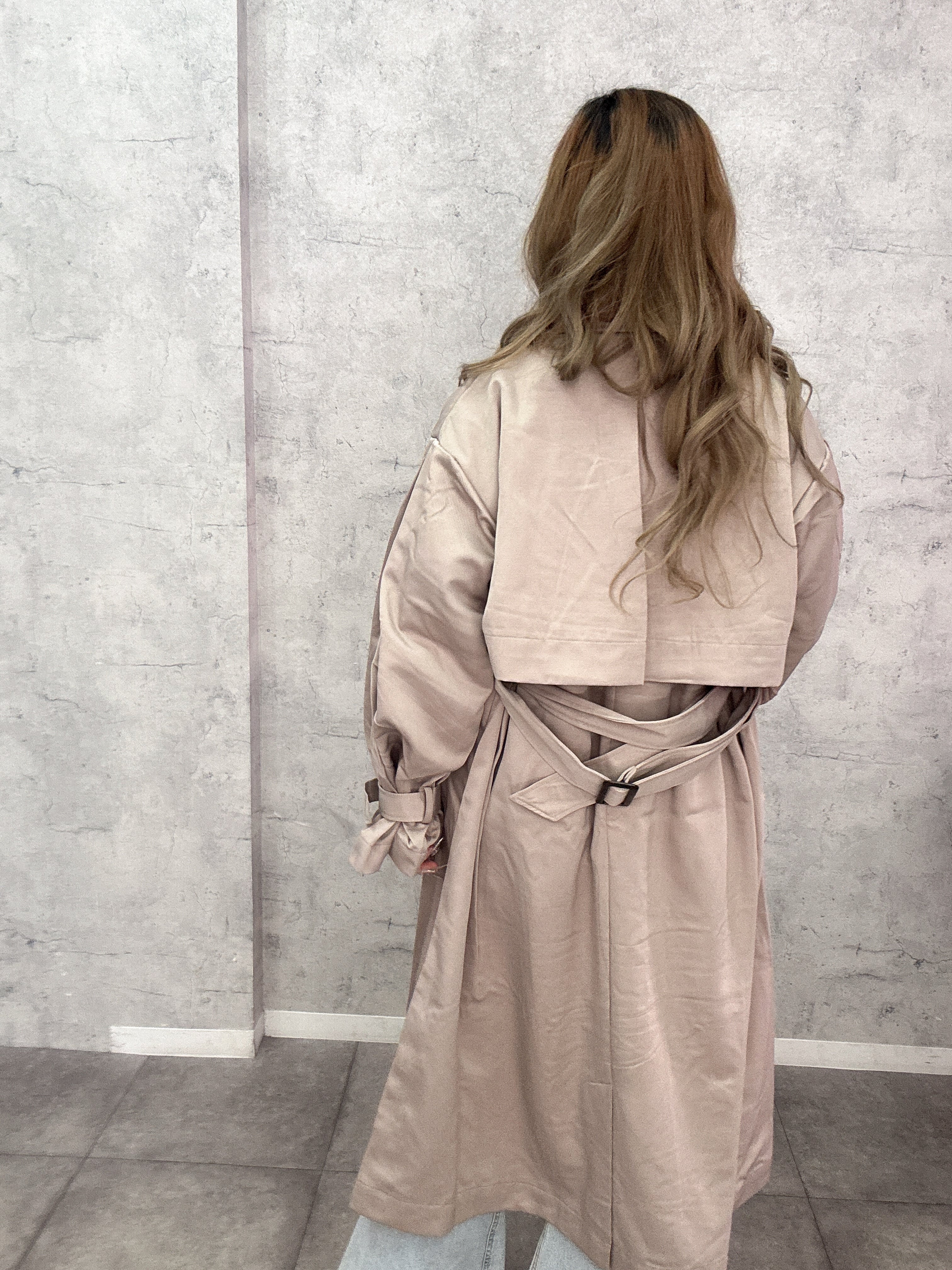 ルーズシルエットのボリュームスリーブトレンチコート。